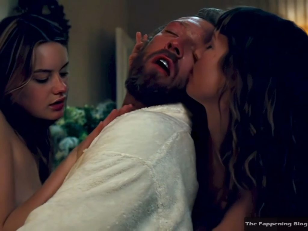 Joséphine de la Baume e Camille Rowe pulam para cima e para baixo em uma cama e depois fazem um ménage à trois com um cara. Saltitante!