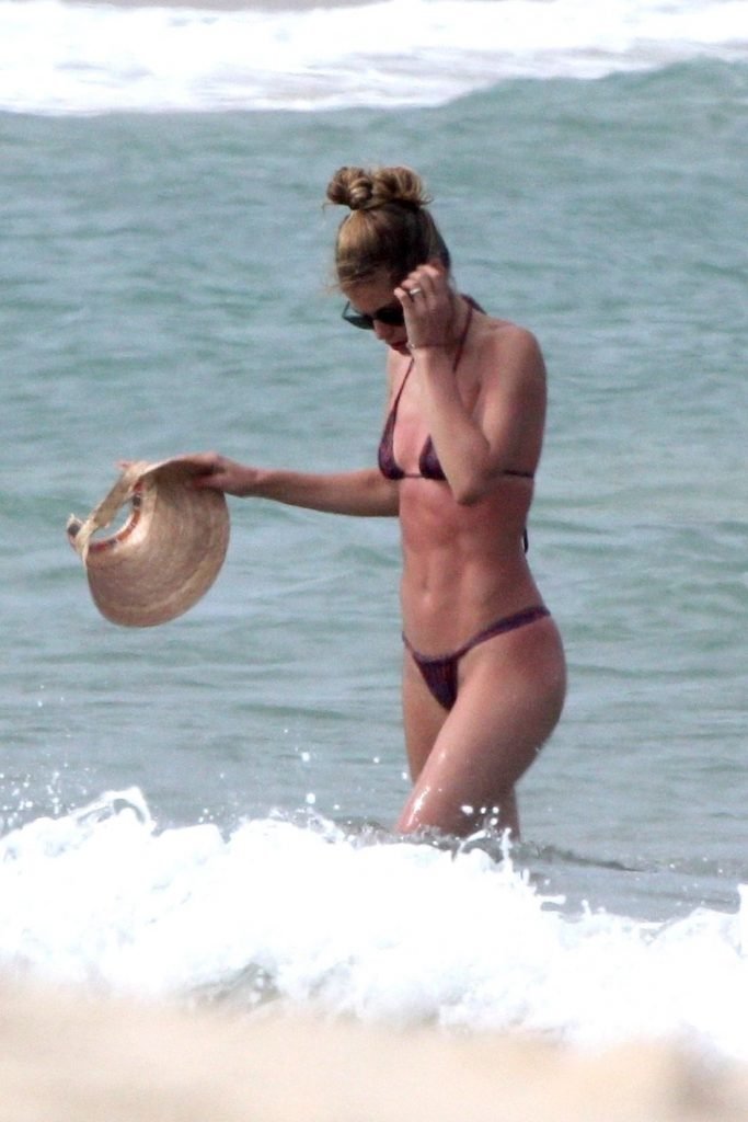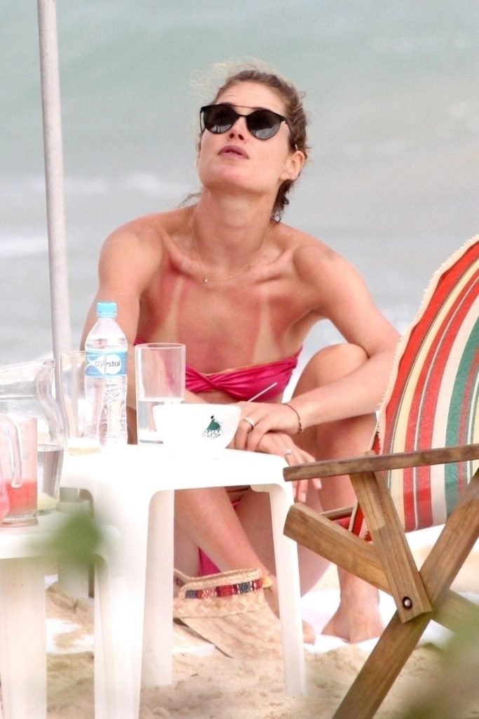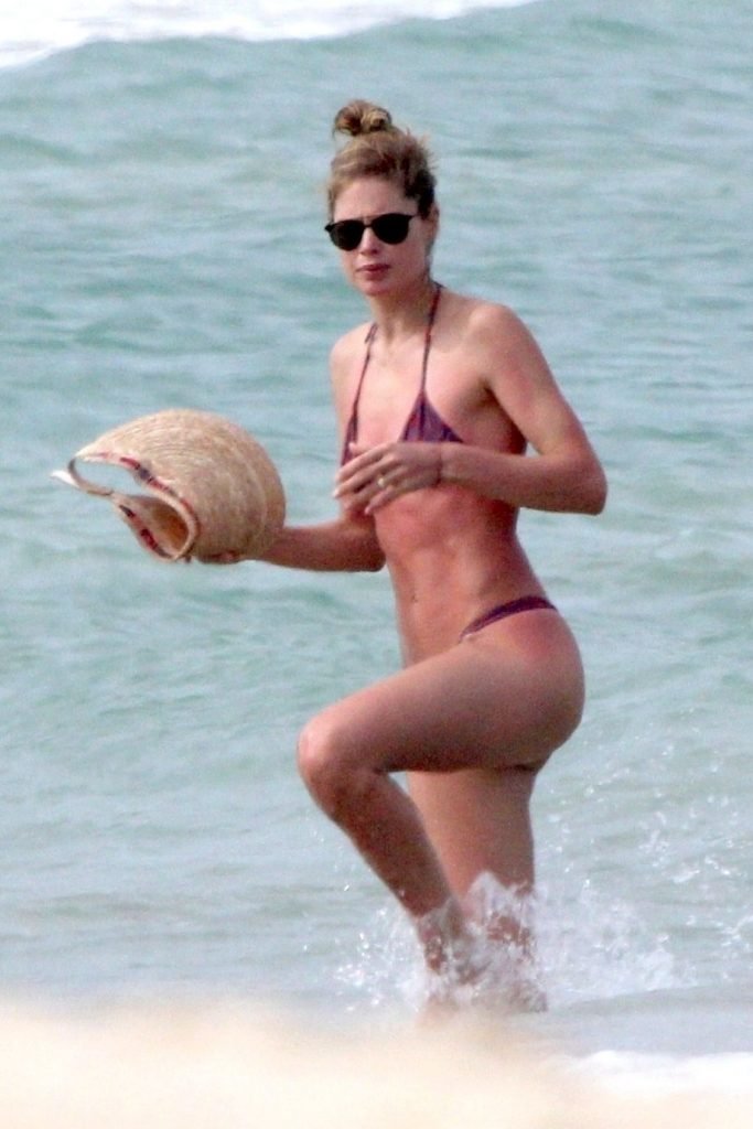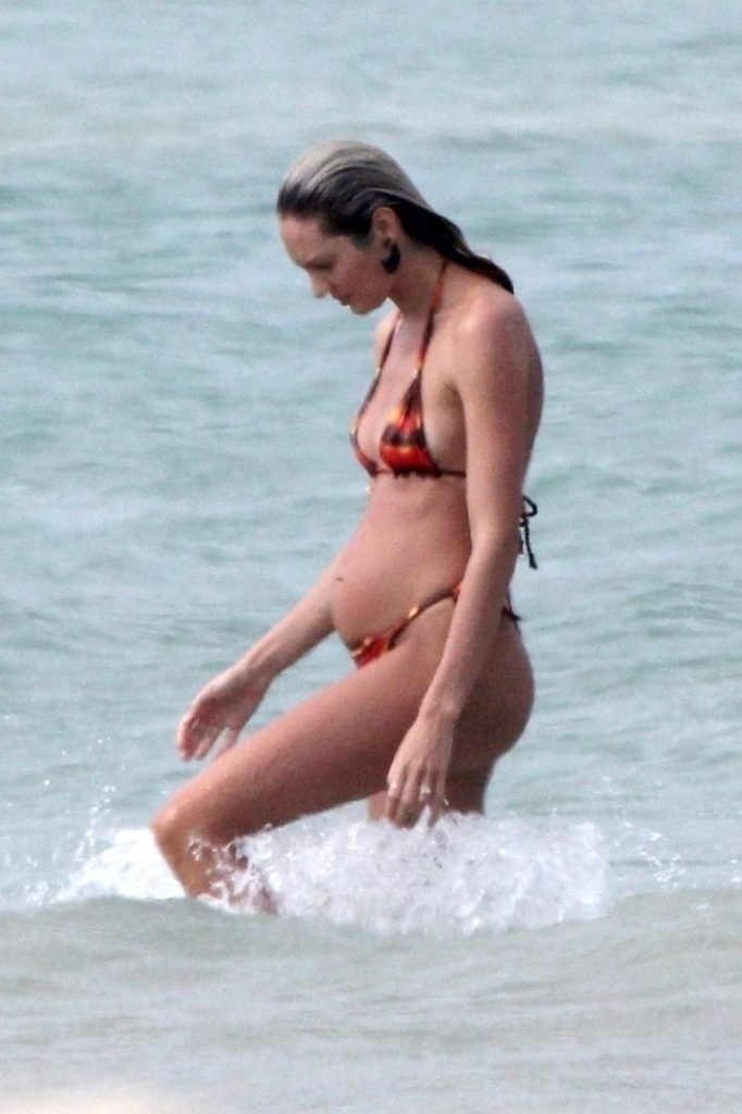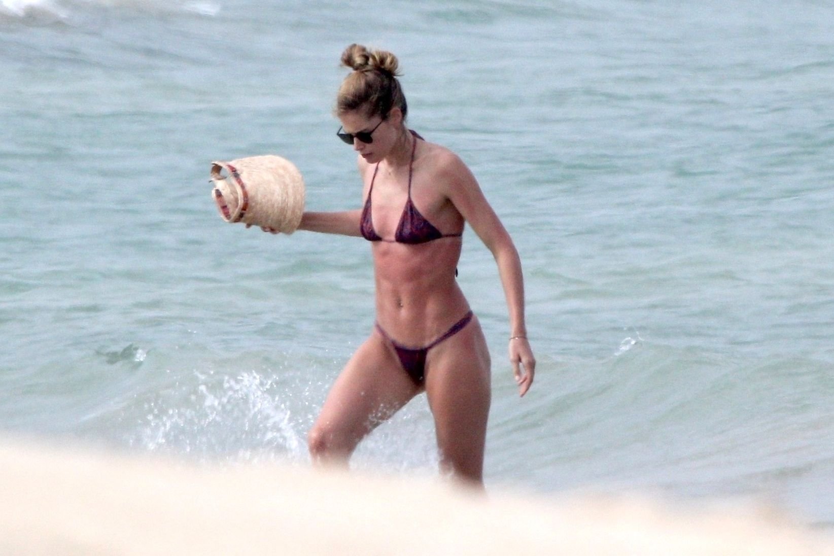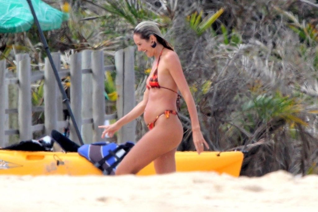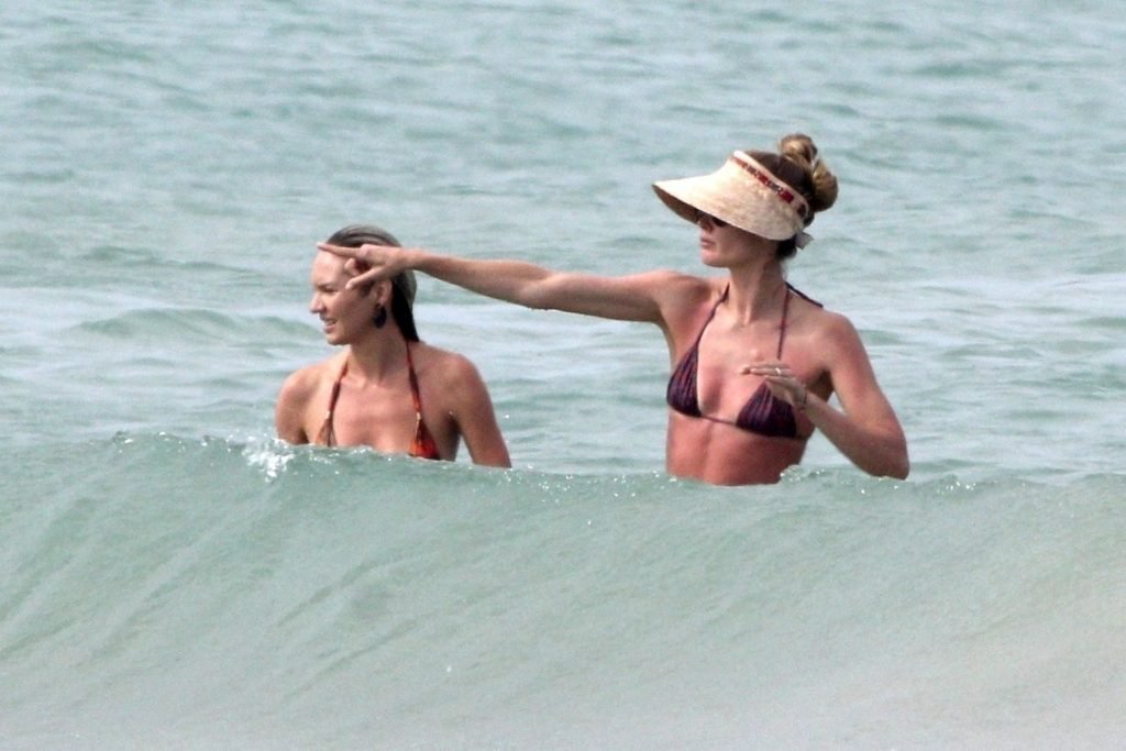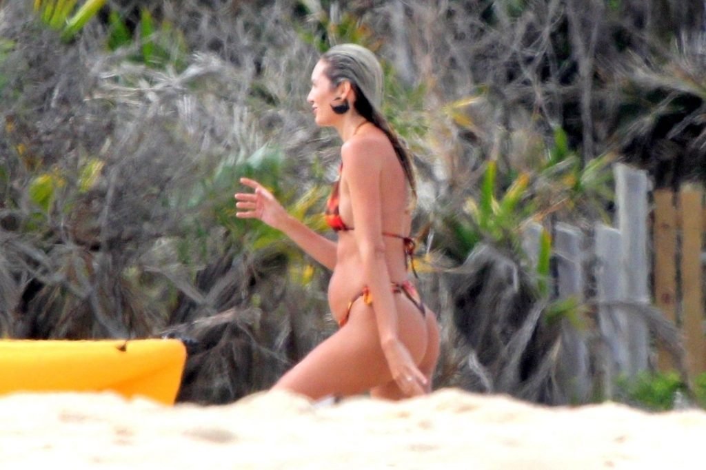 Grávida, Candice Swanepoel deixa sua barriga aproveitar mais um dia de praia com Doutzen Kroes e sua família na praia da Bahia, 01/10/2018.