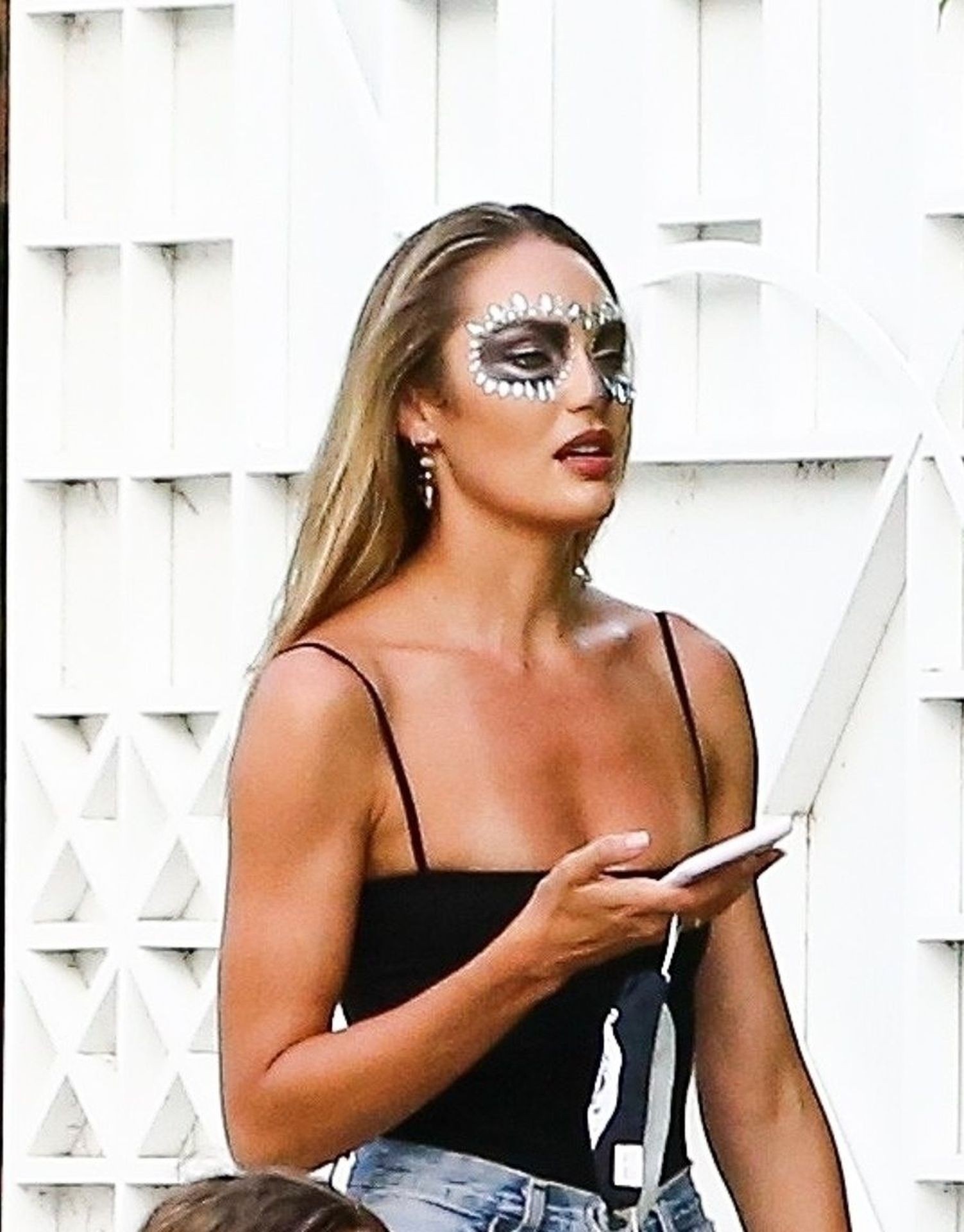 Supermodelo Candice Swanepoel entra no espírito do Halloween enquanto caminha pela comunidade com seus filhos fantasiados, fazendo “doces ou travessuras” e participando de uma festa de Halloween organizada pelos vizinhos, 31/10/2020.