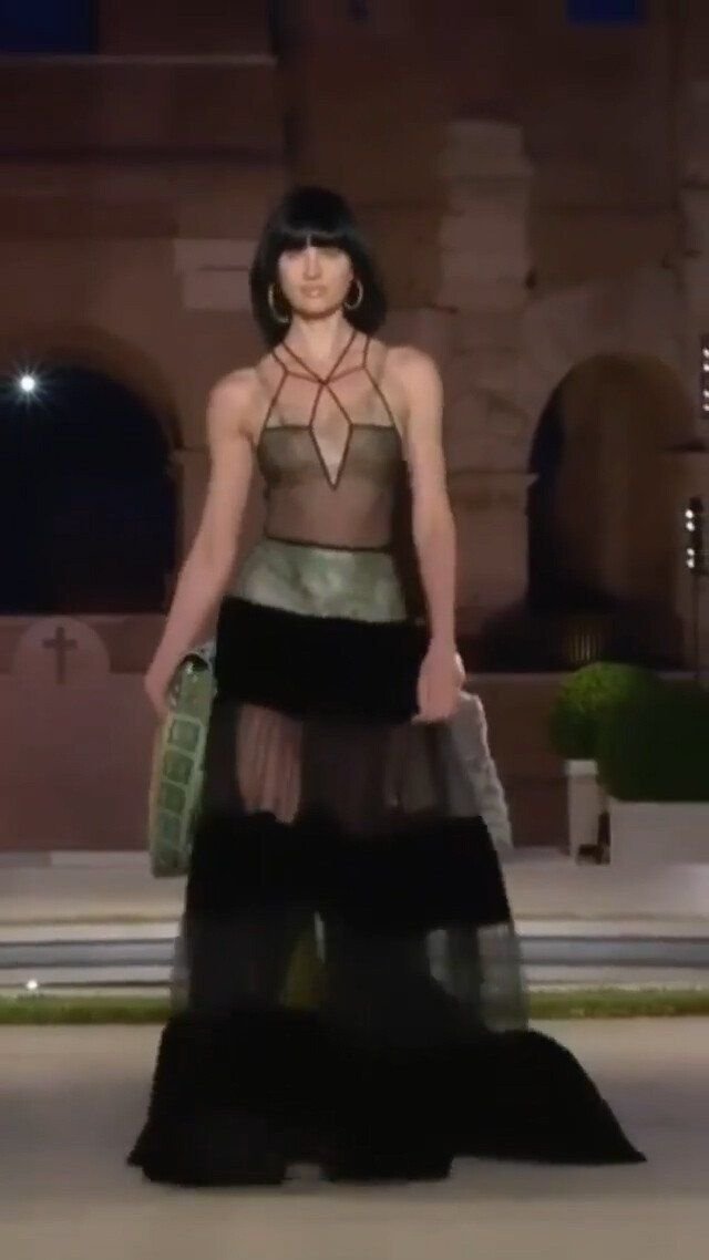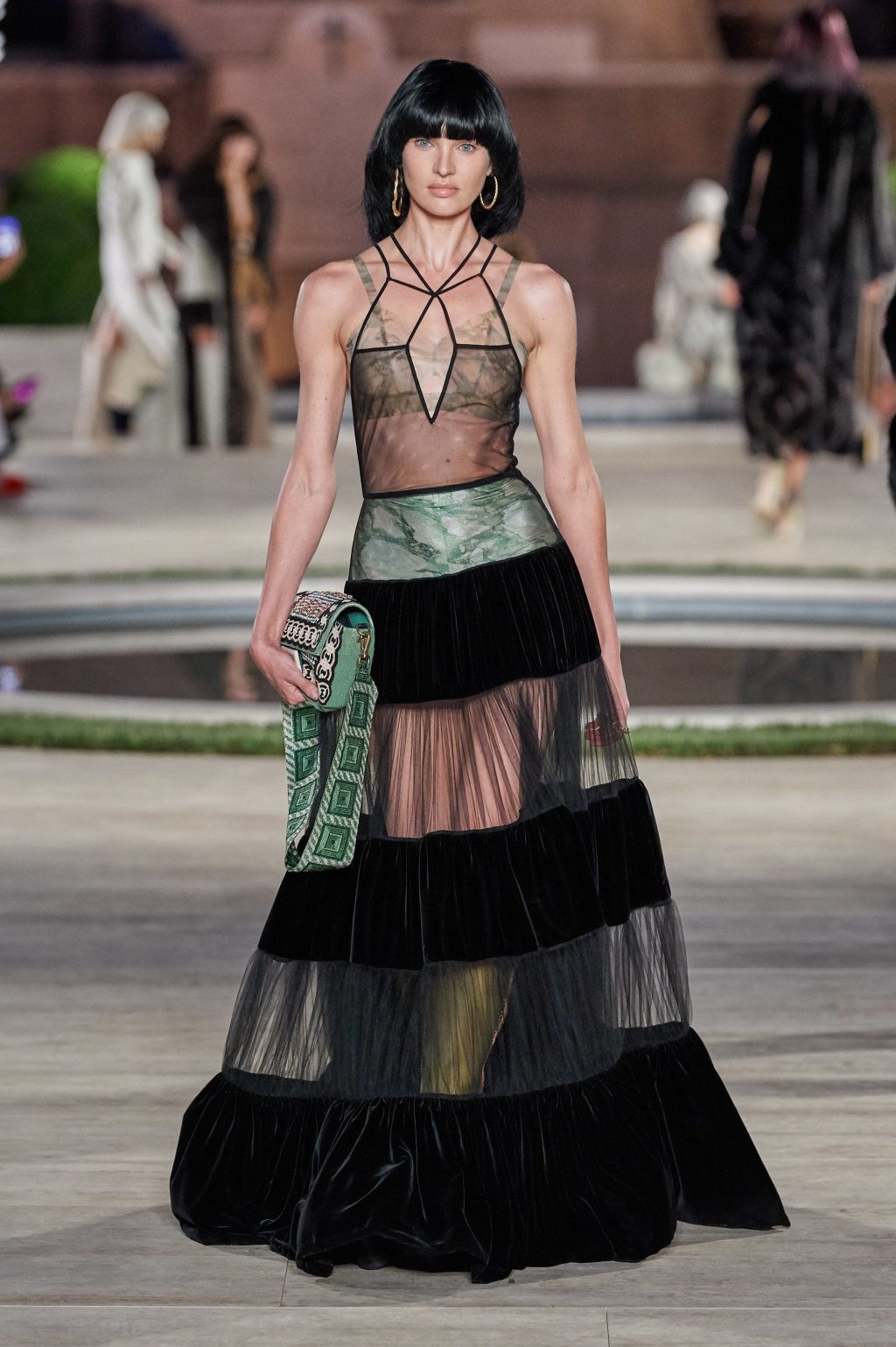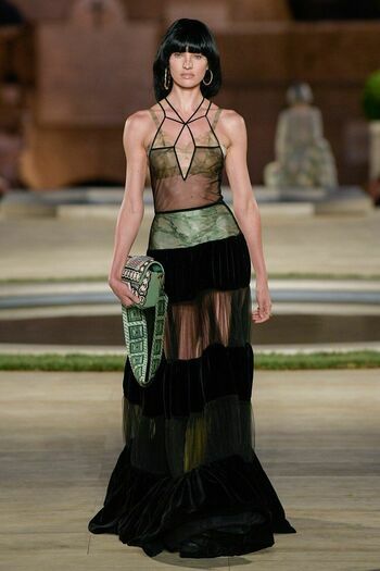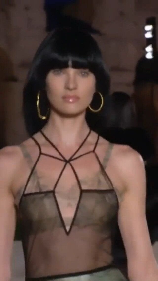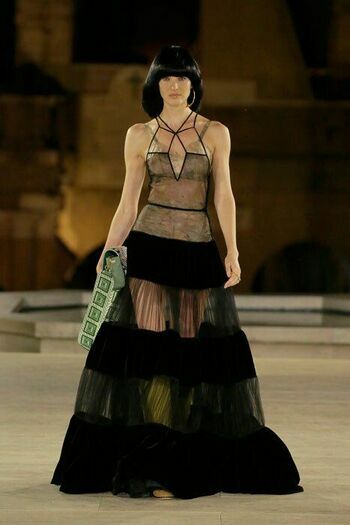 Model Candice Swanepoel desfila na passarela com um vestido transparente no Fendi Couture Fashion Show em Roma, 07/04/2019.
