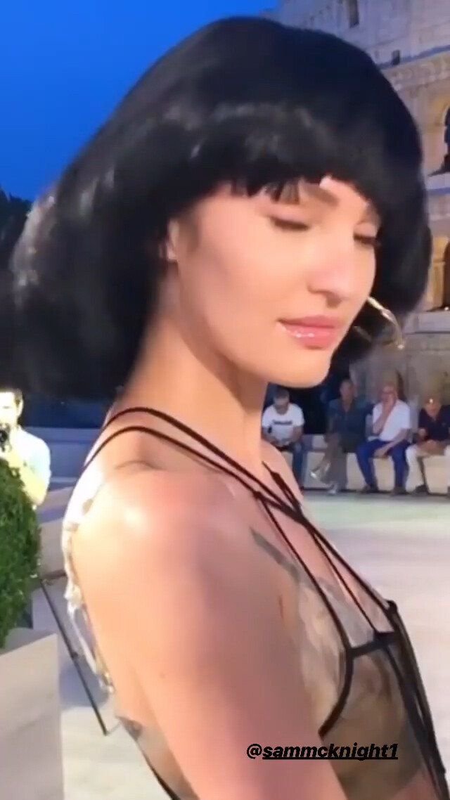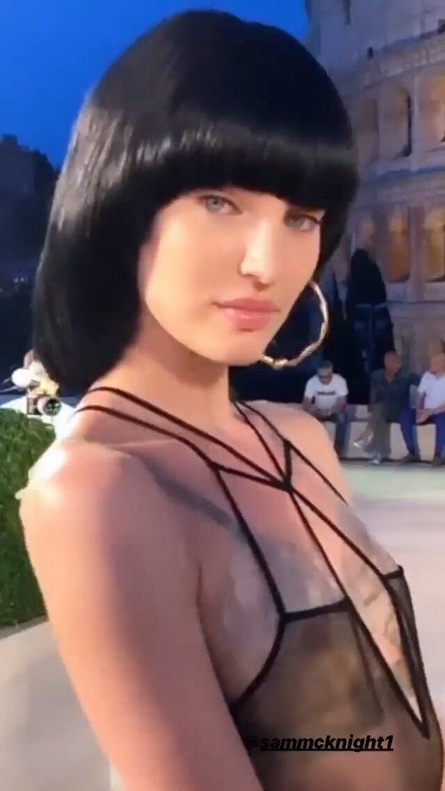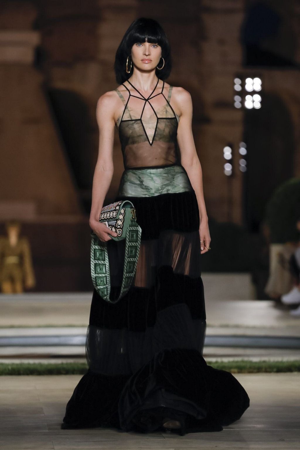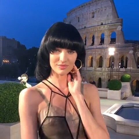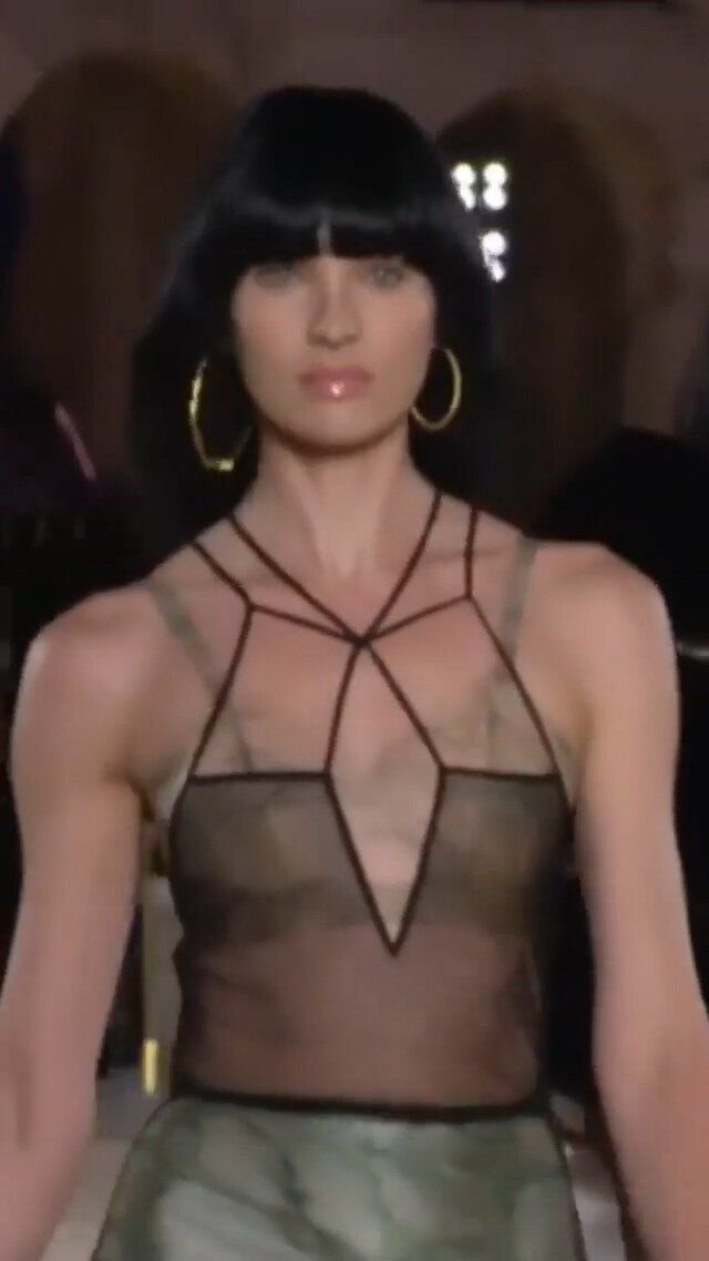 Model Candice Swanepoel desfila na passarela com um vestido transparente no Fendi Couture Fashion Show em Roma, 07/04/2019.