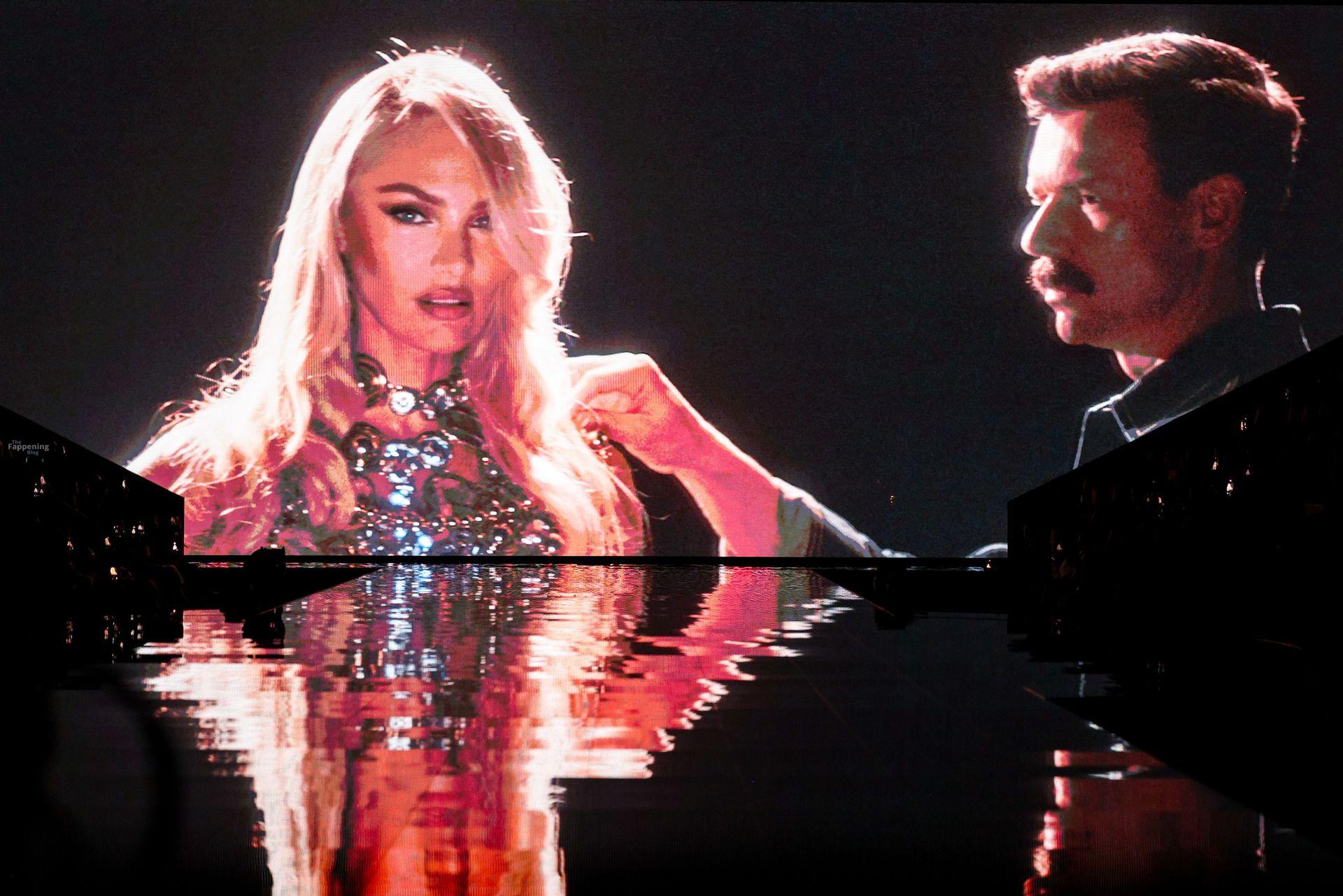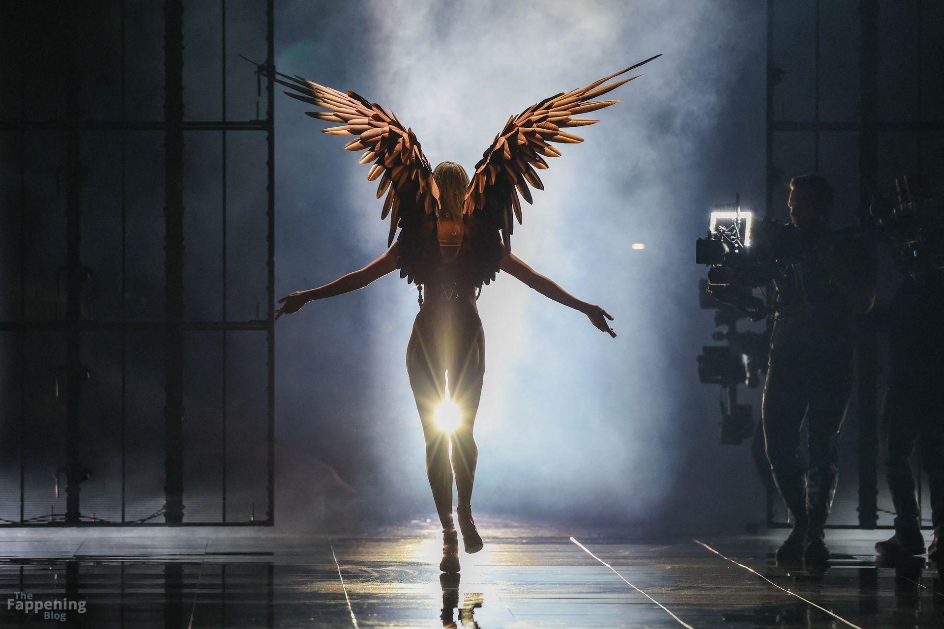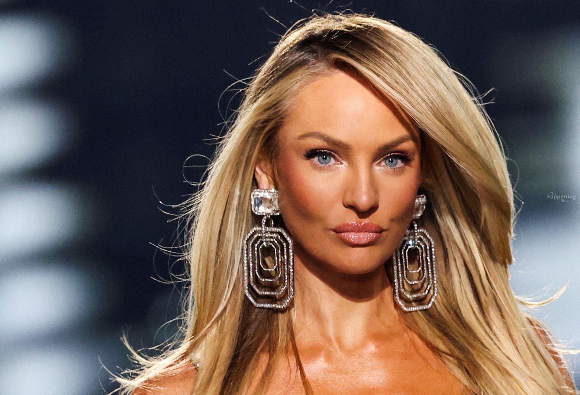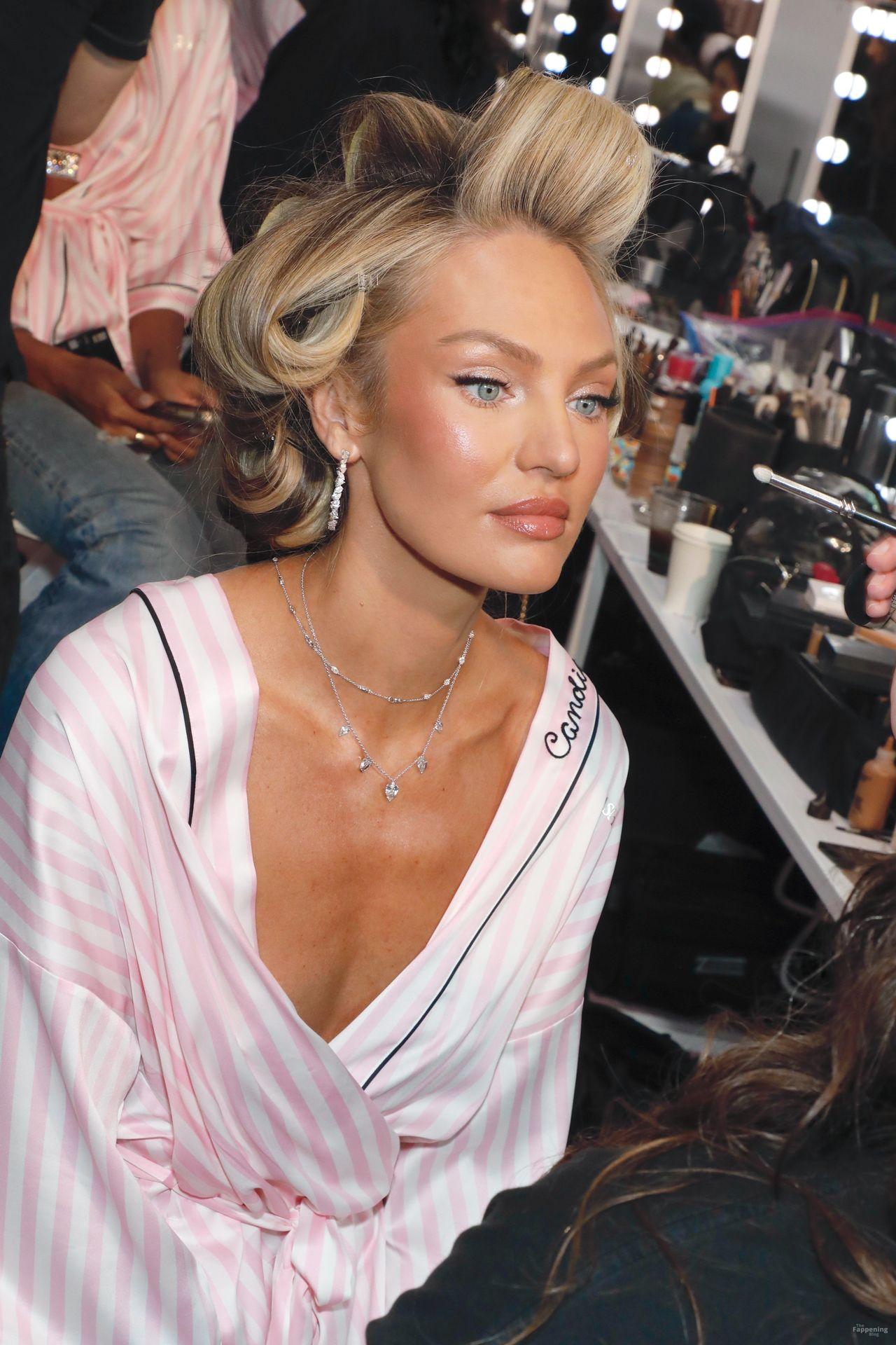 Candice Swanepoel iluminou o Victoria’s Secret Fashion Show no Brooklyn, Nova York, arrasando com lingerie de renda que mostrava seu bumbum e pernas sexy.