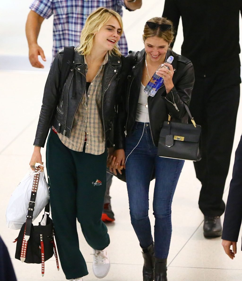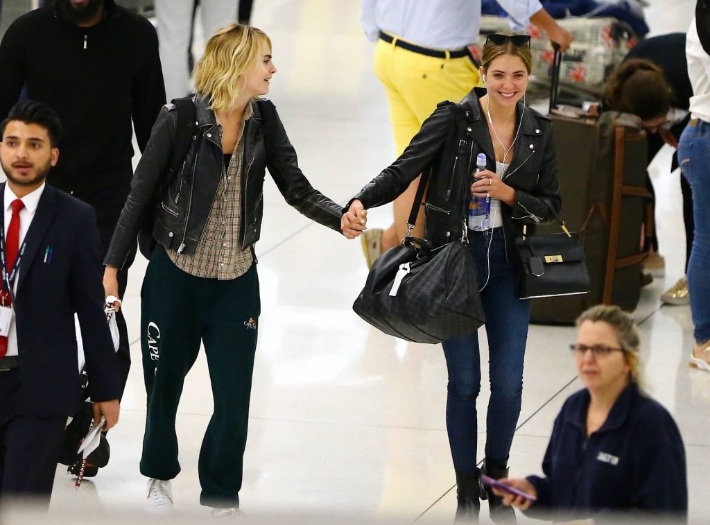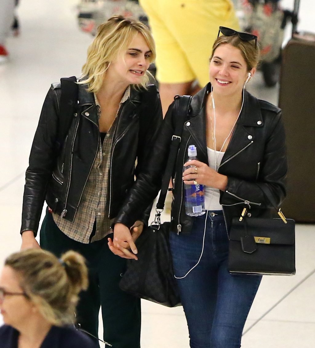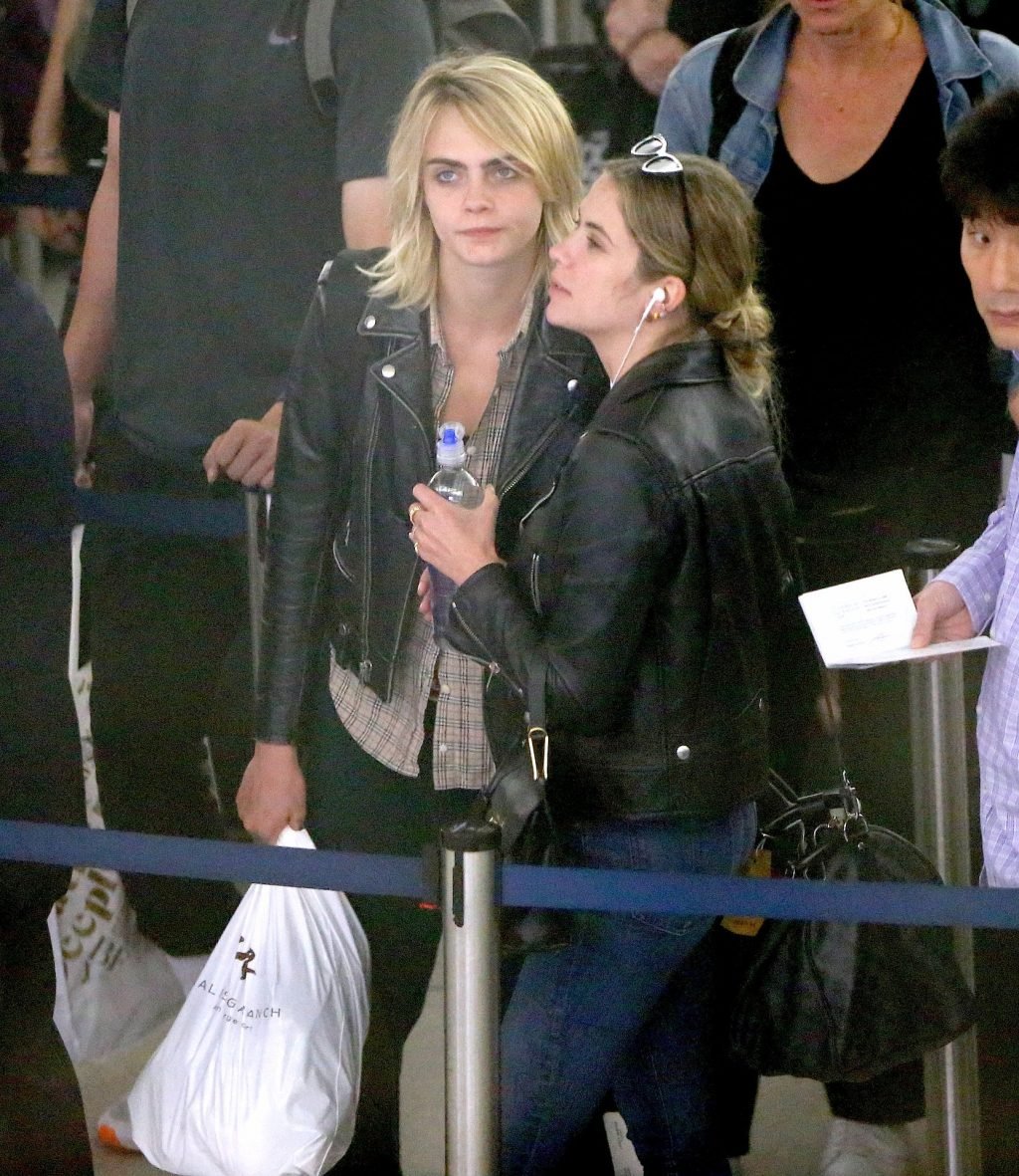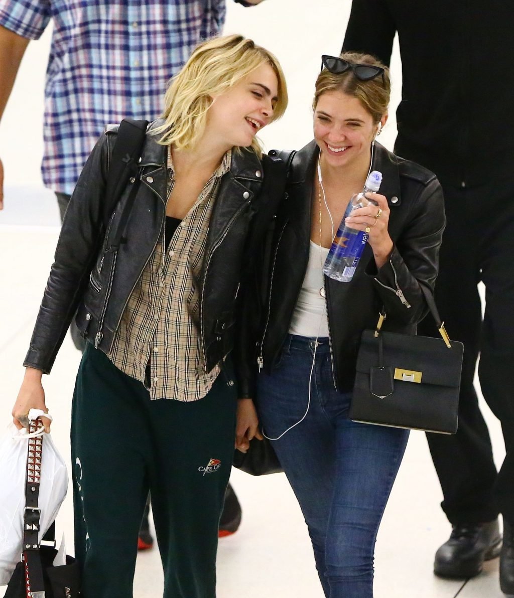 Confira novas fotos de paparazzi do famoso casal lésbico. Cara Delevingne e Ashley Benson foram vistas no aeroporto JFK em Nova York se beijando e se abraçando na fila de segurança, 18/06/2019.