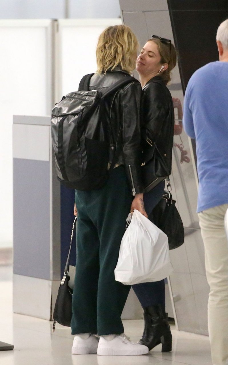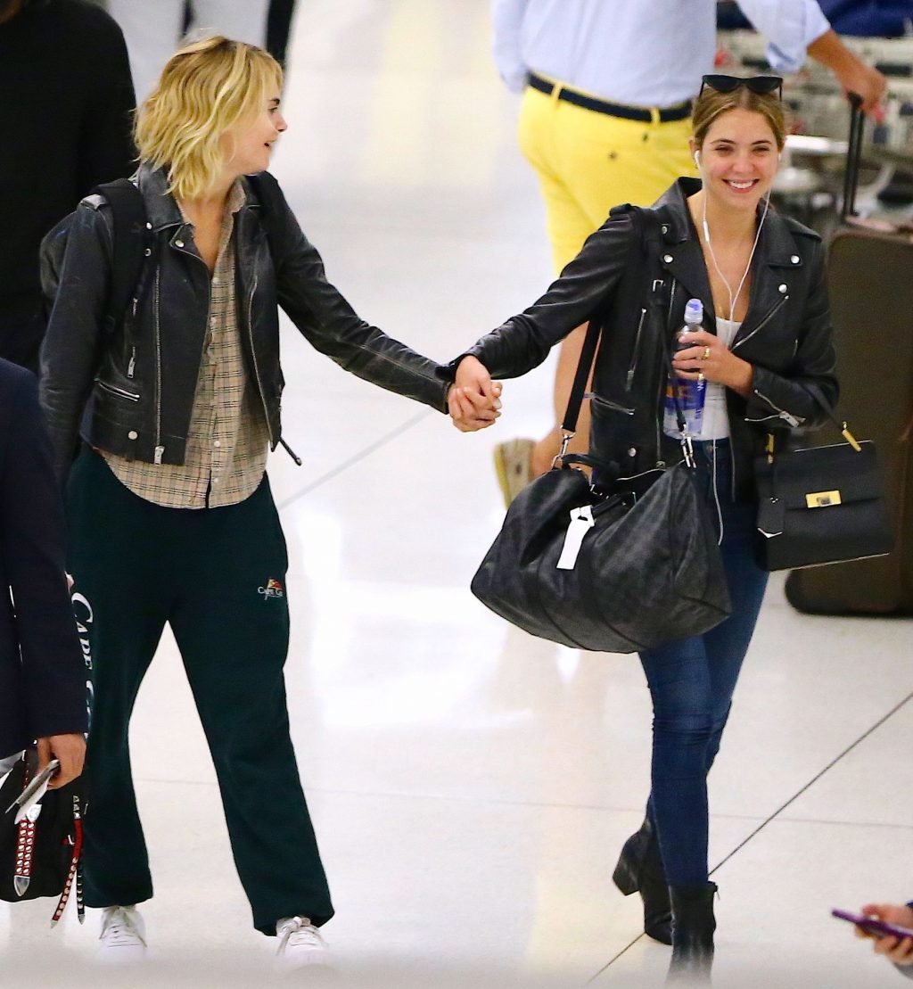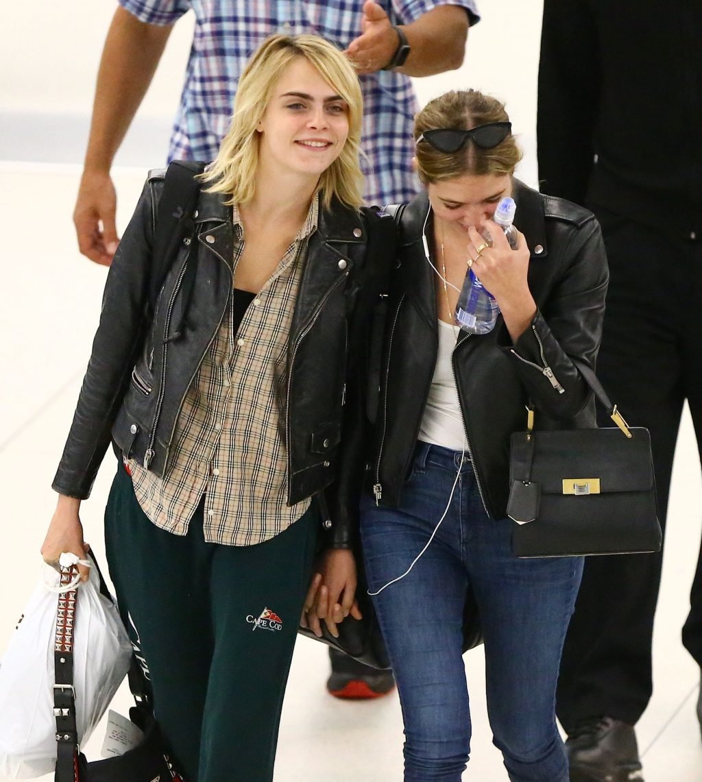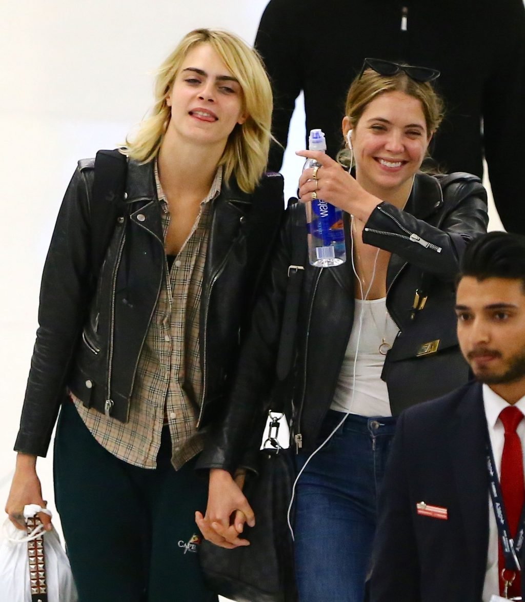 Confira novas fotos de paparazzi do famoso casal lésbico. Cara Delevingne e Ashley Benson foram vistas no aeroporto JFK em Nova York se beijando e se abraçando na fila de segurança, 18/06/2019.