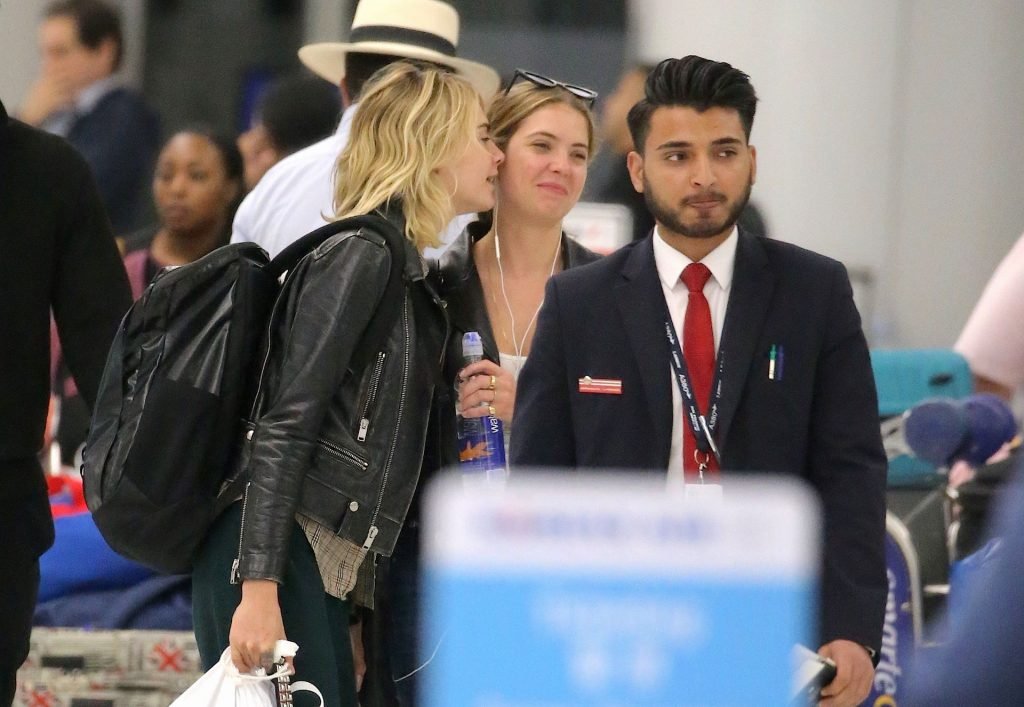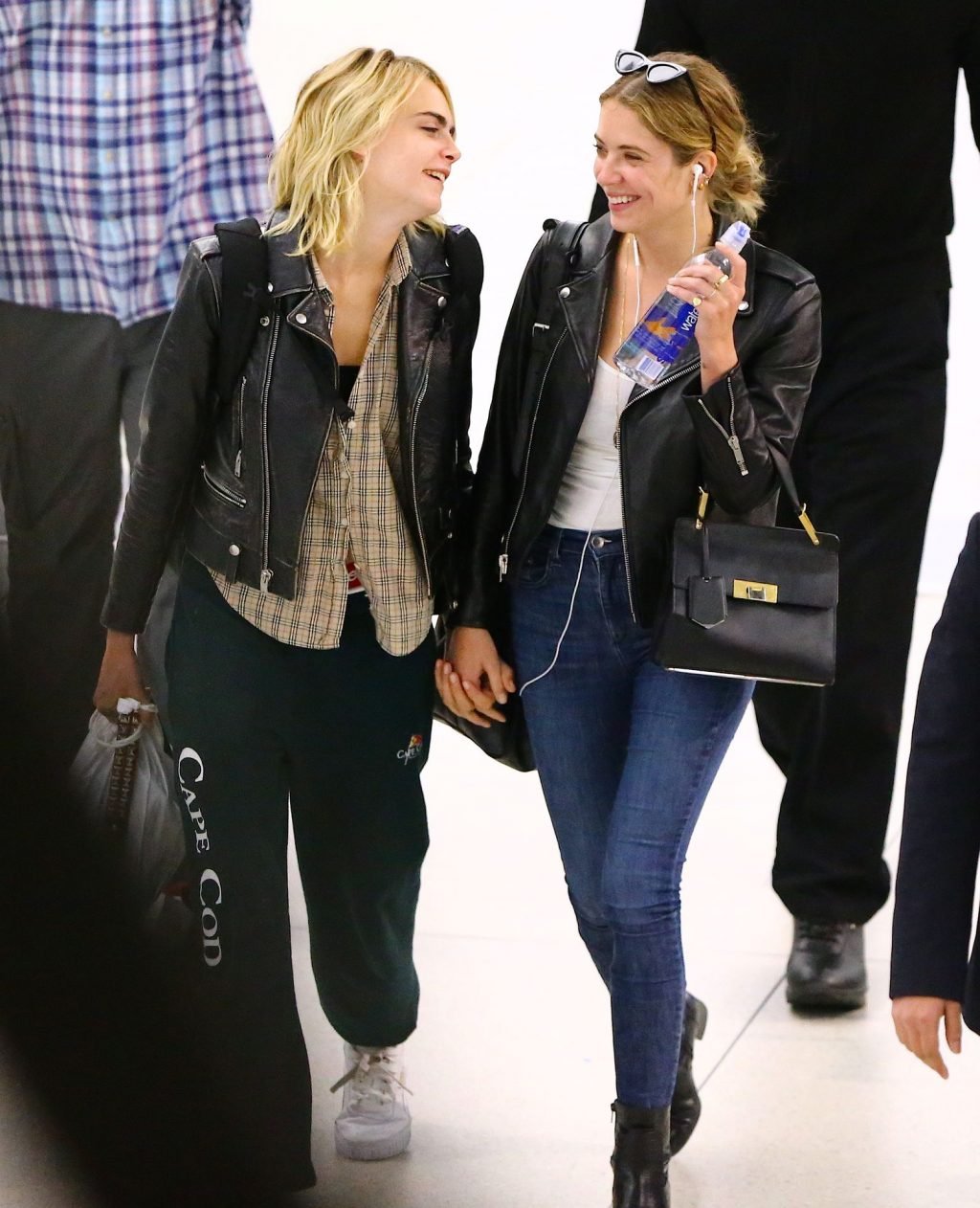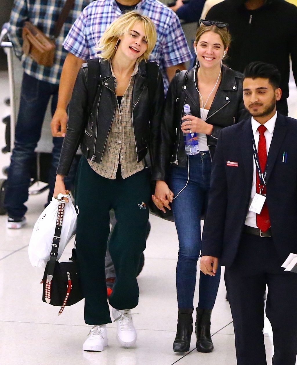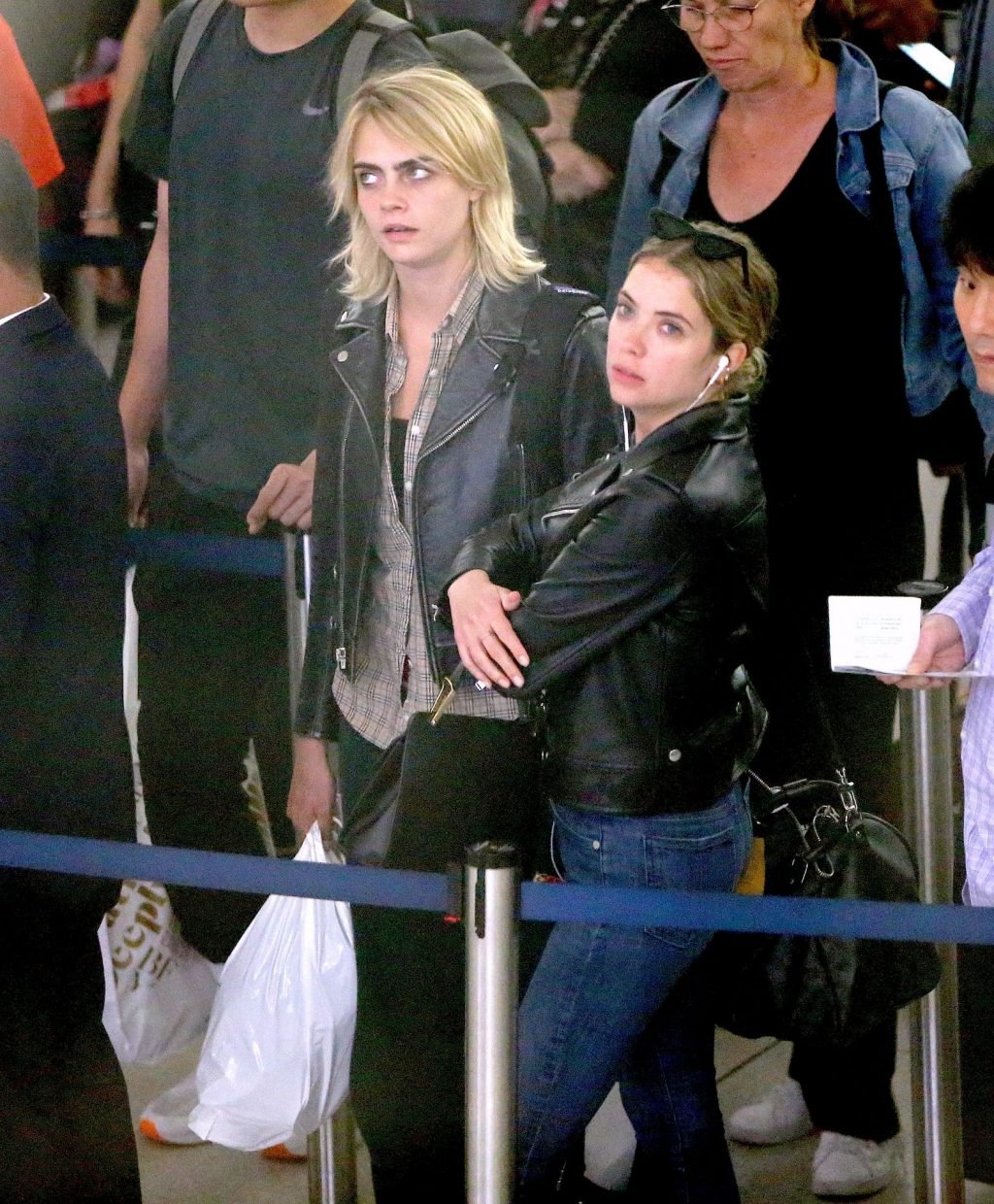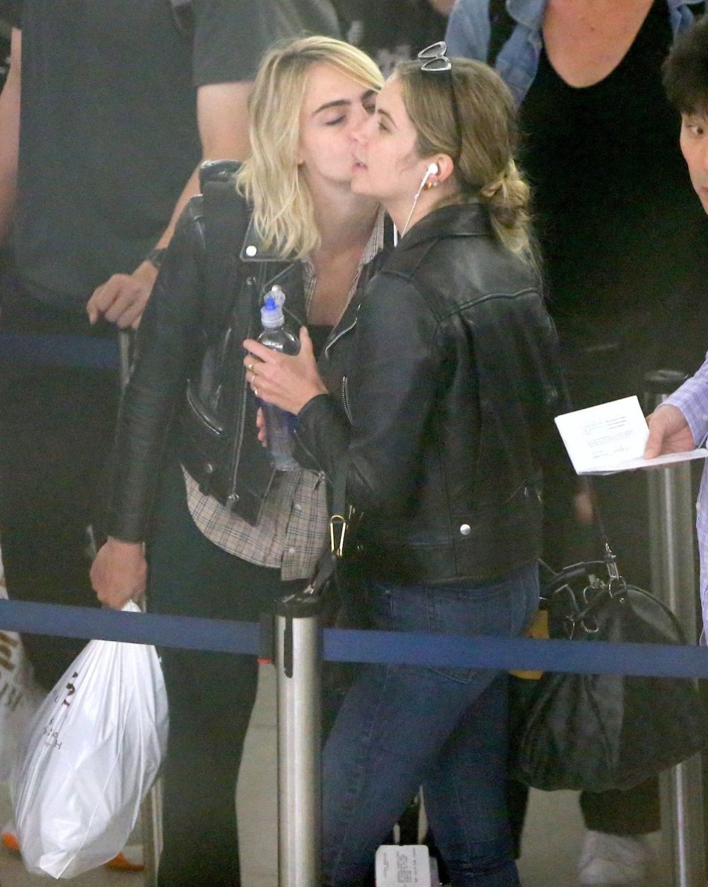 Confira novas fotos de paparazzi do famoso casal lésbico. Cara Delevingne e Ashley Benson foram vistas no aeroporto JFK em Nova York se beijando e se abraçando na fila de segurança, 18/06/2019.