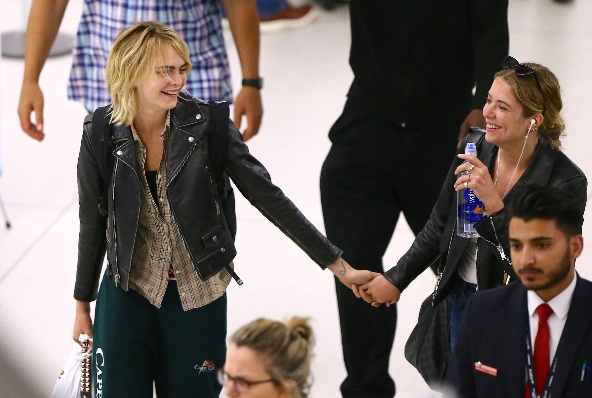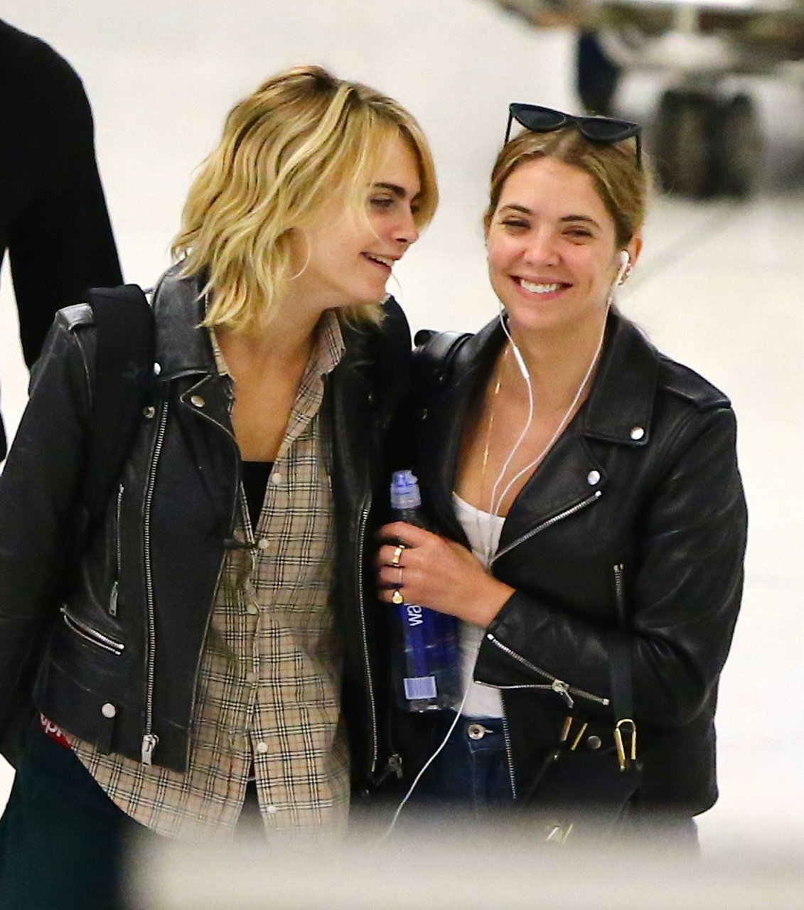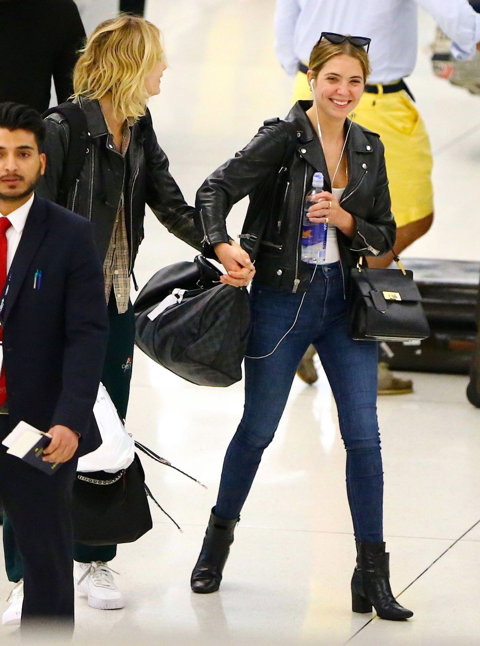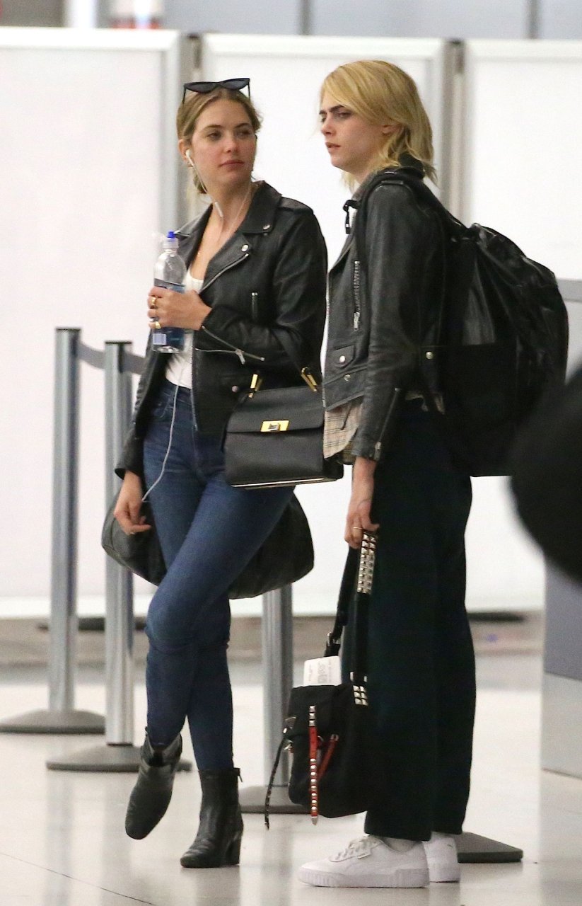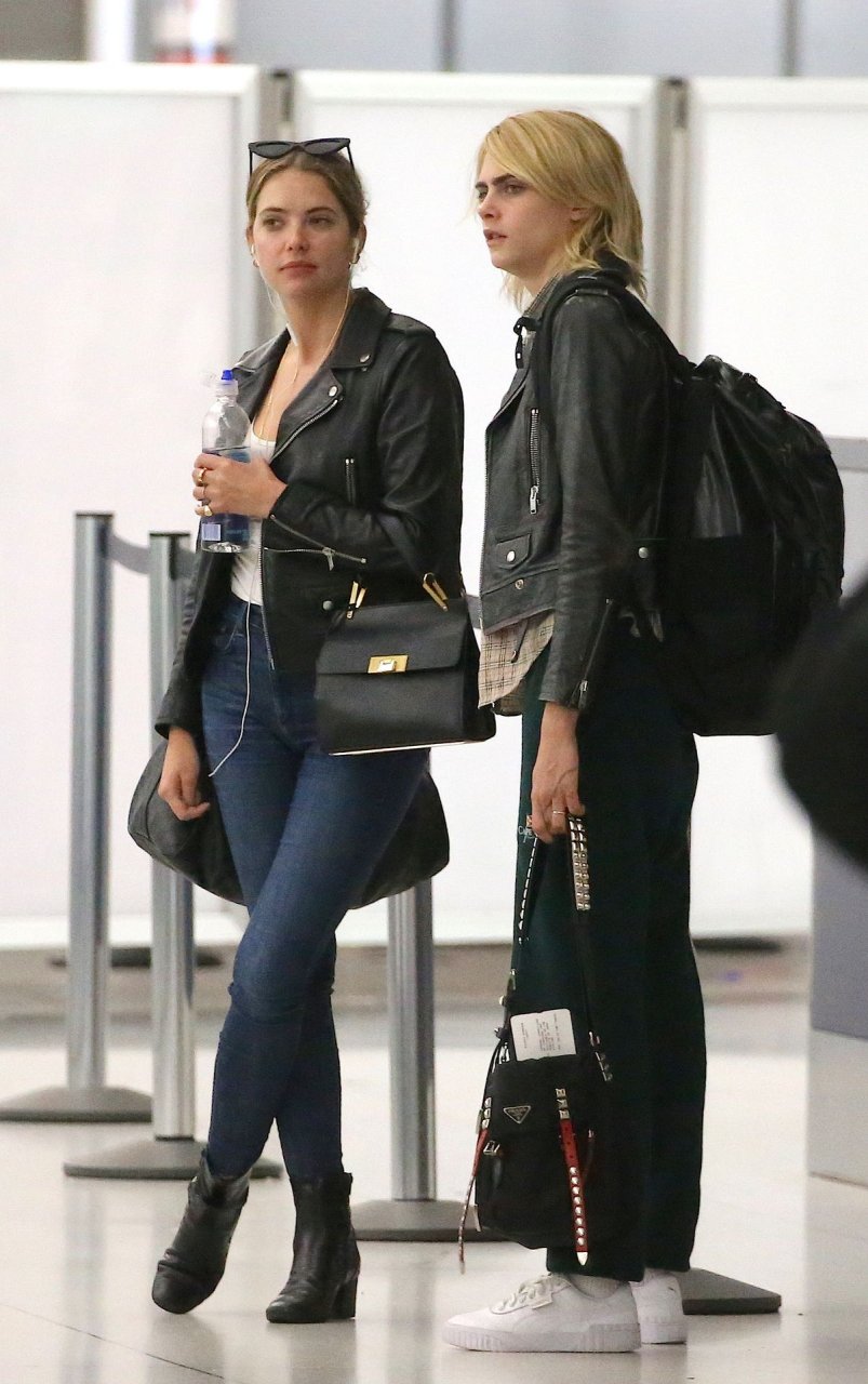Confira novas fotos de paparazzi do famoso casal lésbico. Cara Delevingne e Ashley Benson foram vistas no aeroporto JFK em Nova York se beijando e se abraçando na fila de segurança, 18/06/2019.
