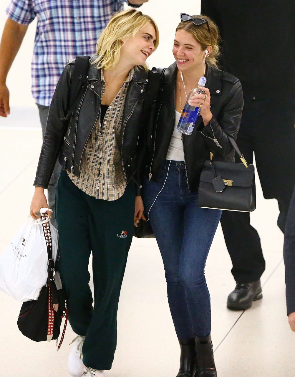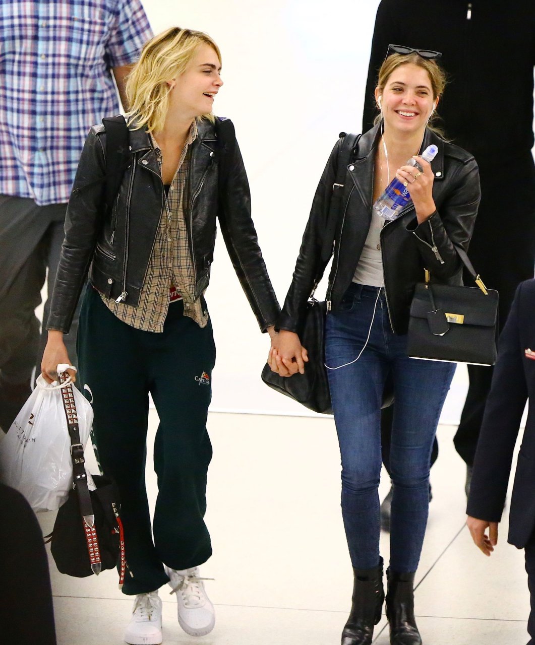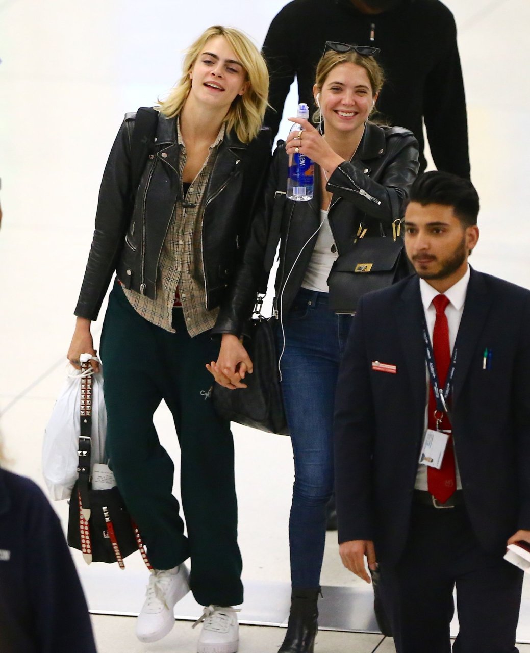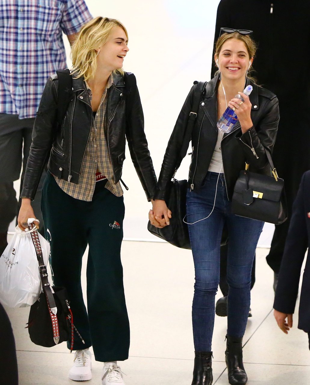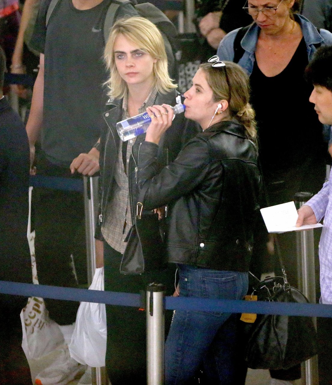 Confira novas fotos de paparazzi do famoso casal lésbico. Cara Delevingne e Ashley Benson foram vistas no aeroporto JFK em Nova York se beijando e se abraçando na fila de segurança, 18/06/2019.