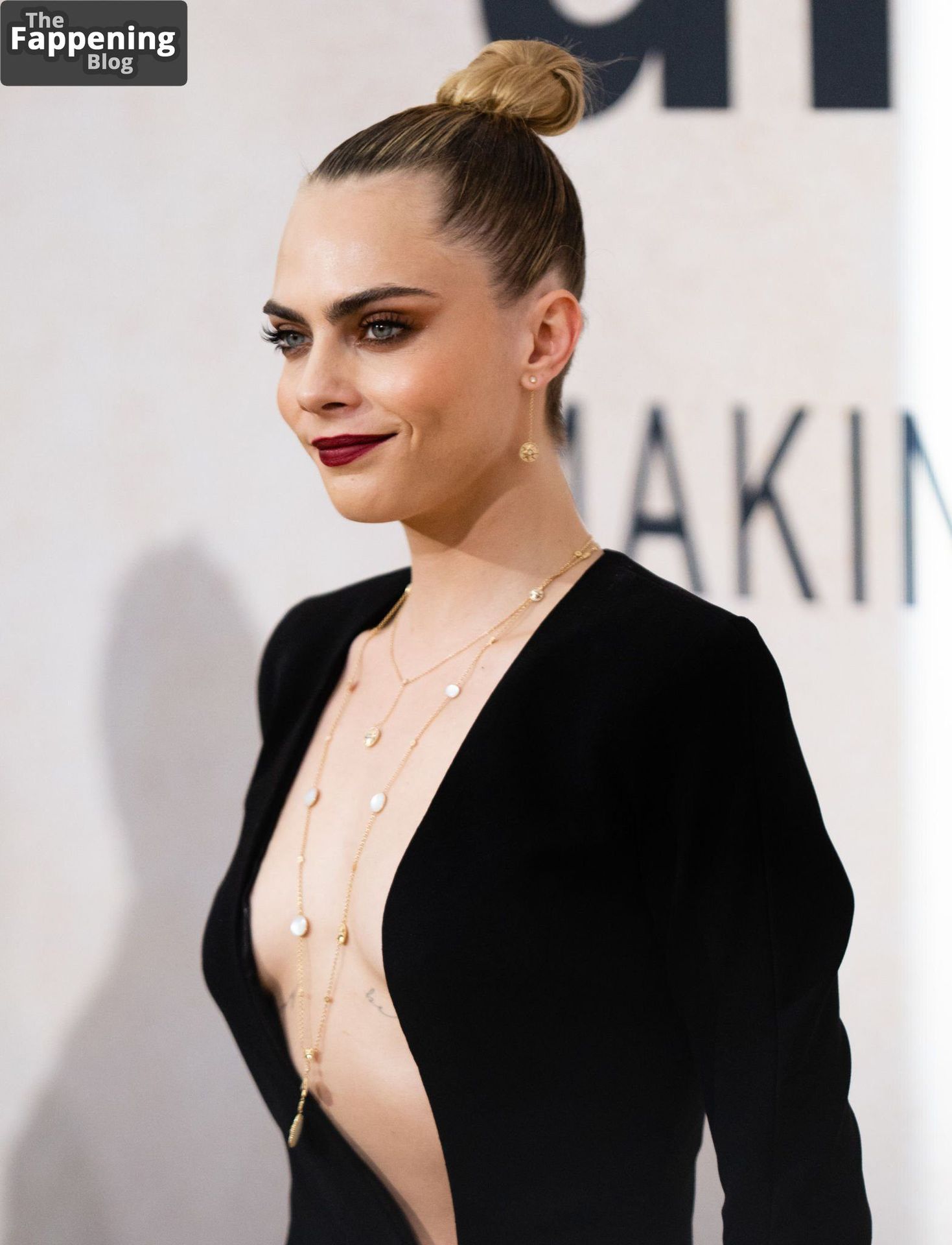 Confira a nova seleção de fotos sensuais de Cara Delevingne de vários eventos mostrando sua figura esbelta e seus belos seios.