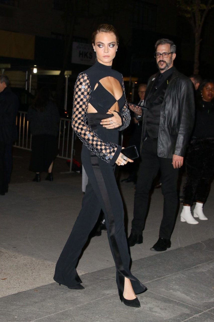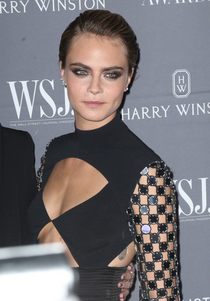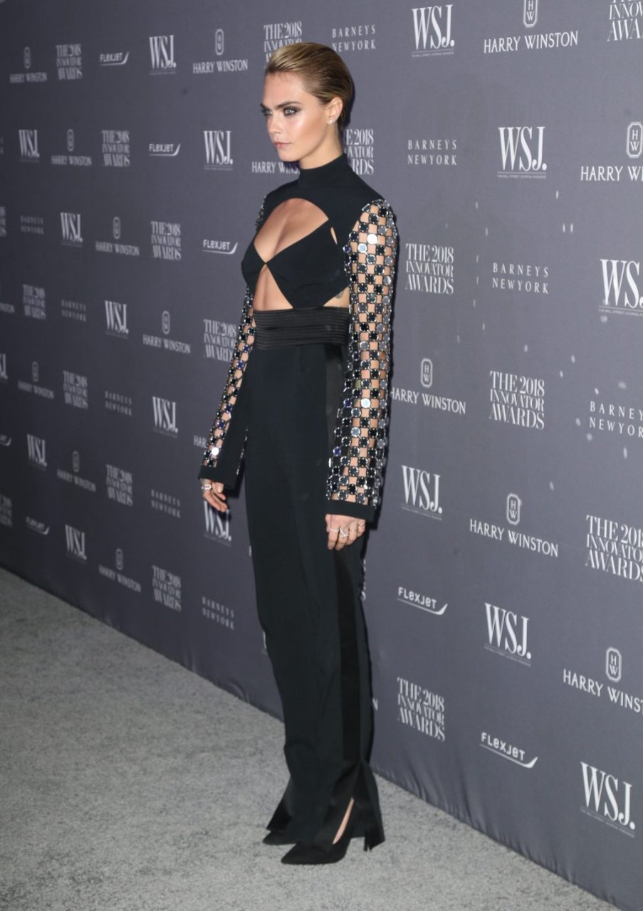 Model/atriz Cara Delevingne participa do WSJ Innovators Awards na cidade de Nova York, 07/11/2018. A beleza londrina de 26 anos brilhou em um conjunto preto sem costas.