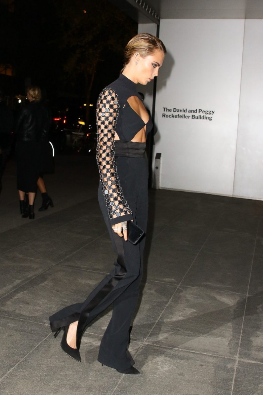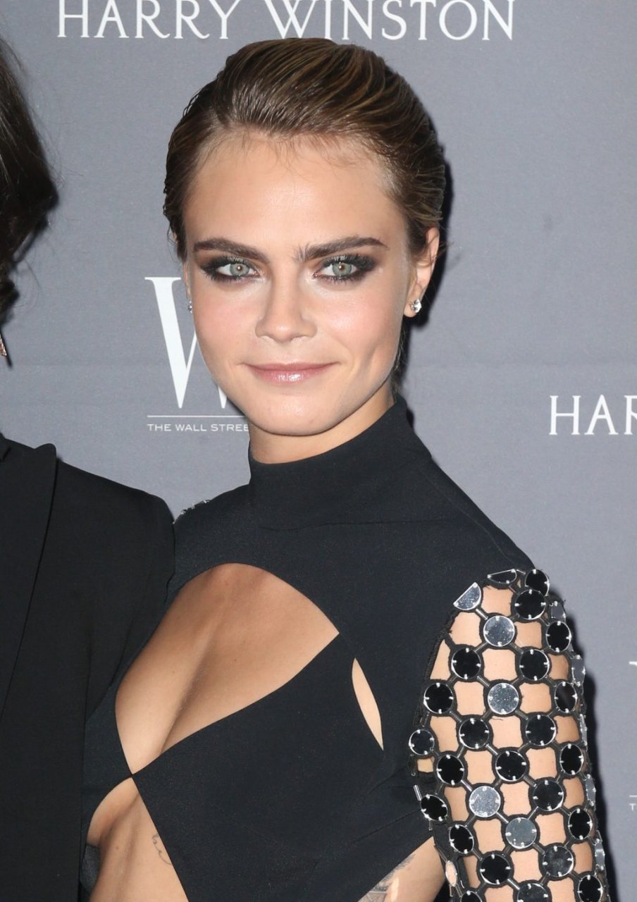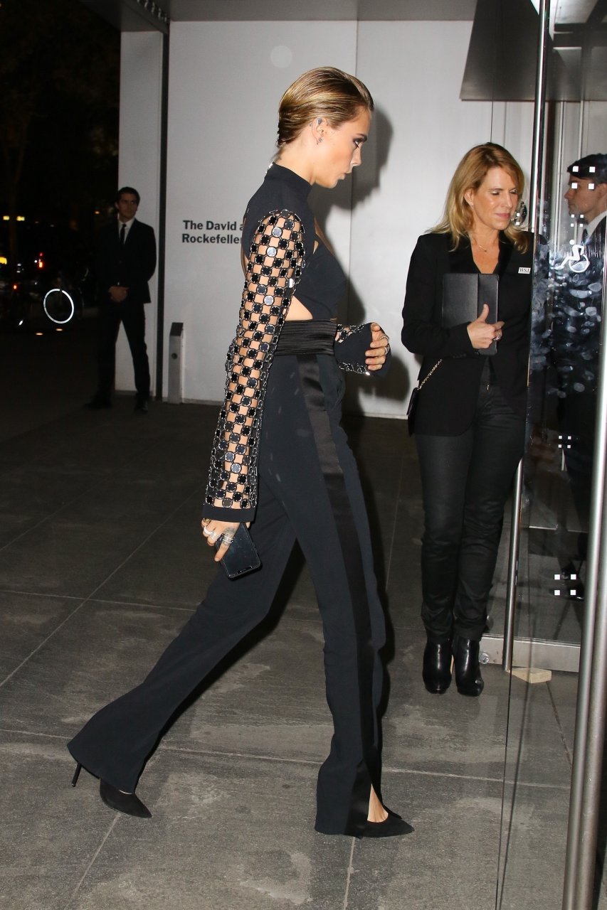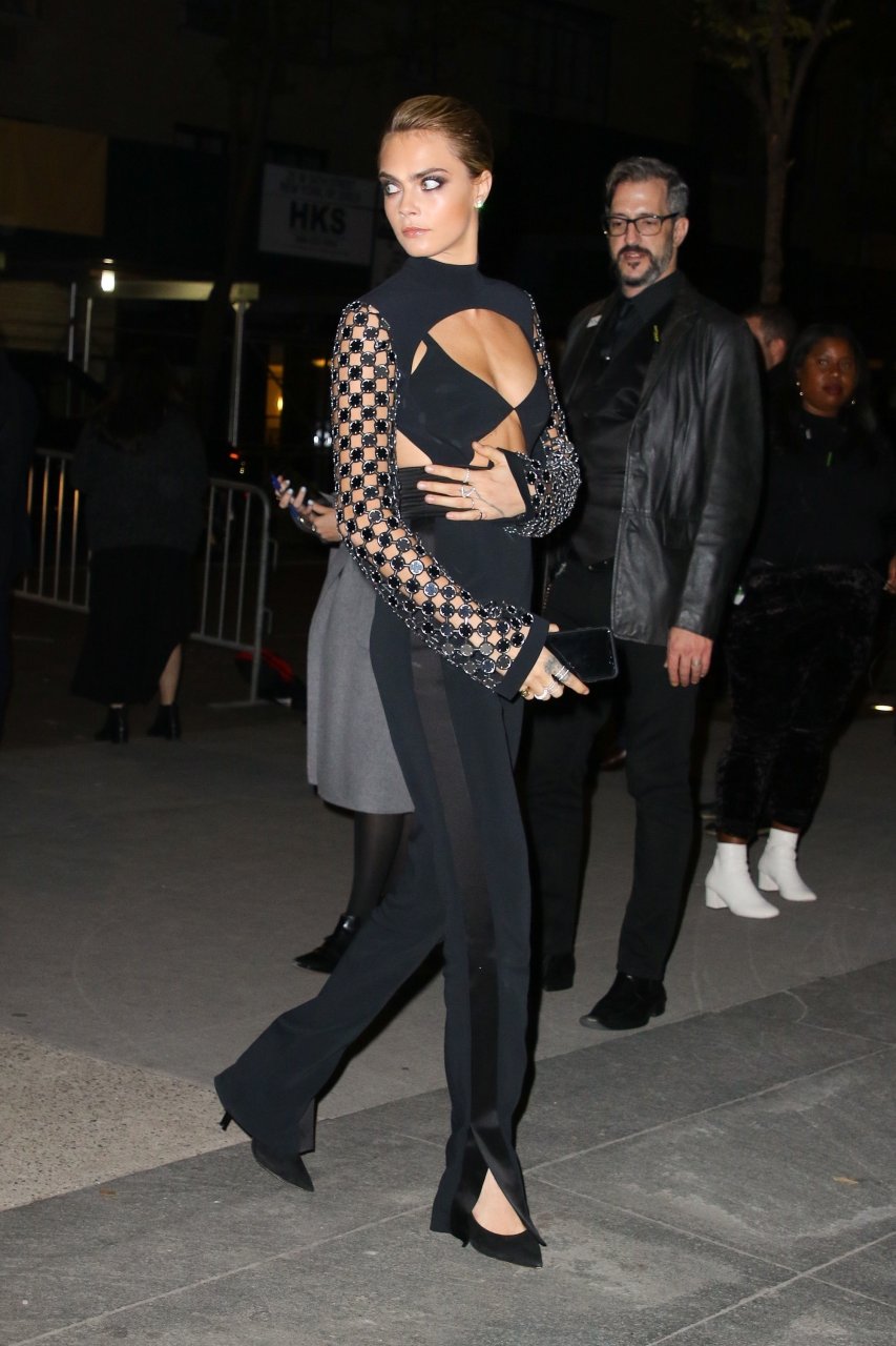 Model/atriz Cara Delevingne participa do WSJ Innovators Awards na cidade de Nova York, 07/11/2018. A beleza londrina de 26 anos brilhou em um conjunto preto sem costas.