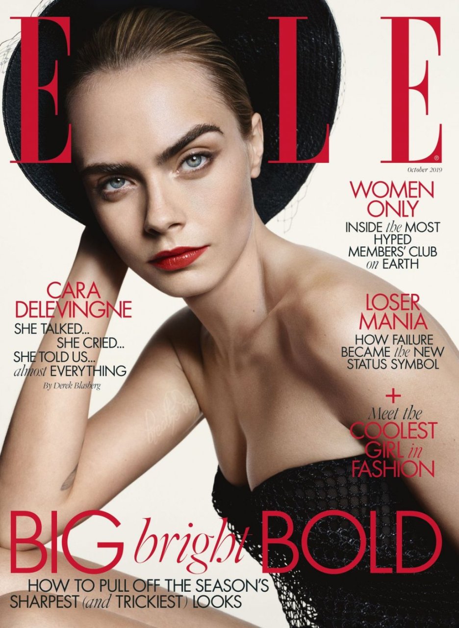 Confira as fotos levemente nuas e sexy de Cara Delevingne para a edição de outubro de 2019 da ELLE UK. Embora Cara tenha mostrado seus seios aqui, ela cobriu suas melhores partes nesta revista.