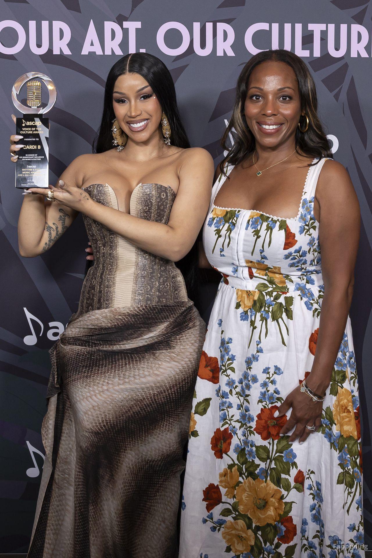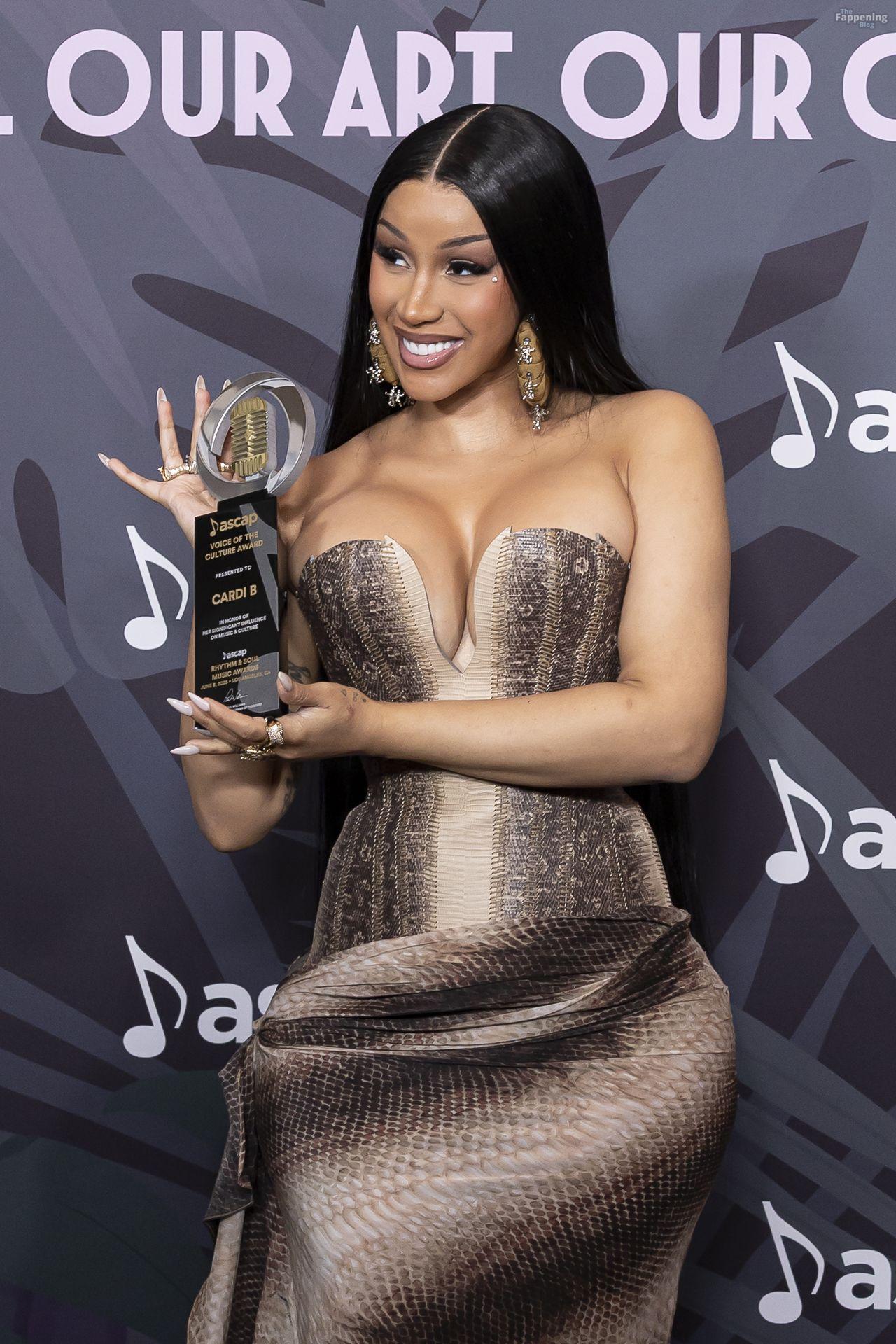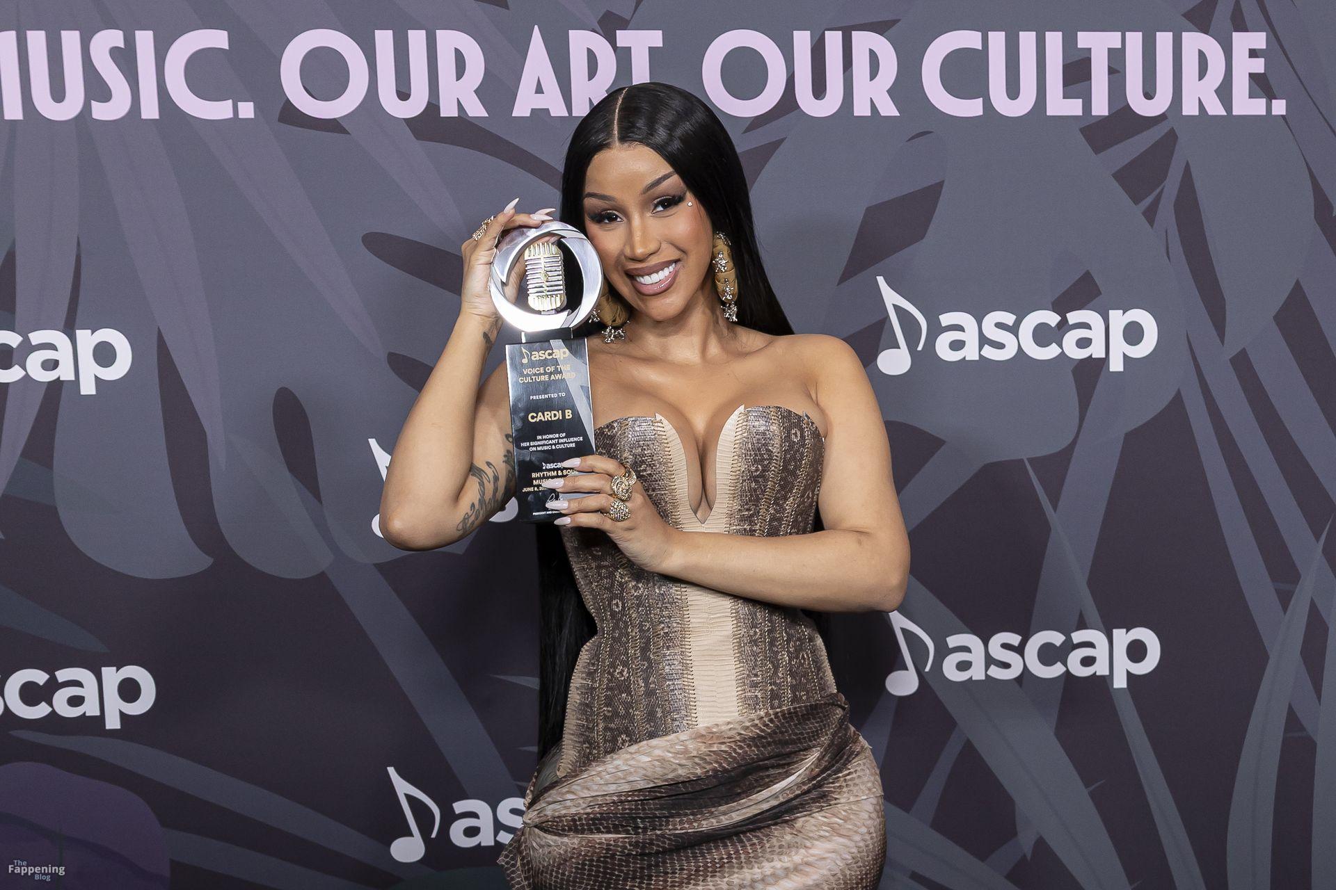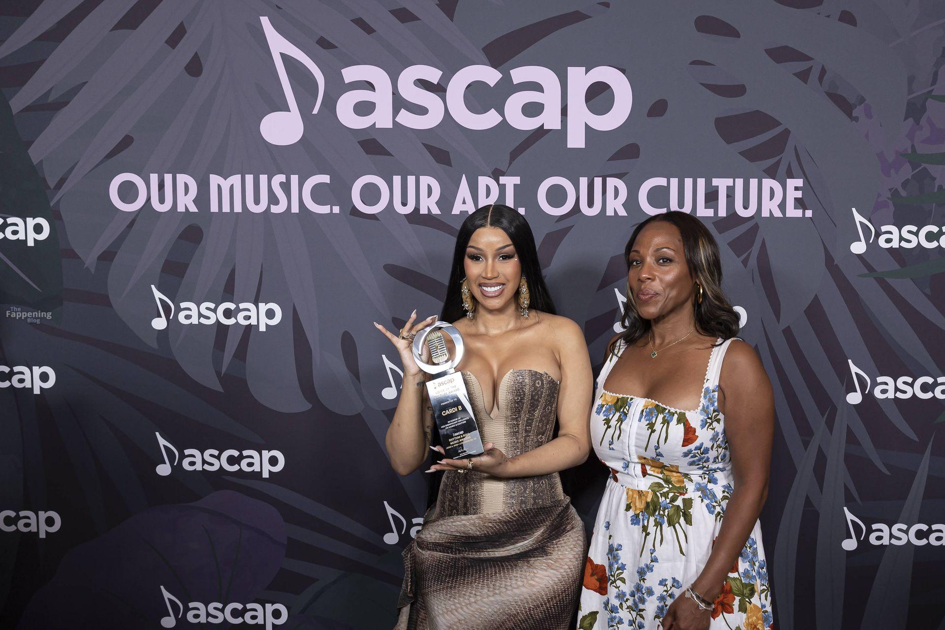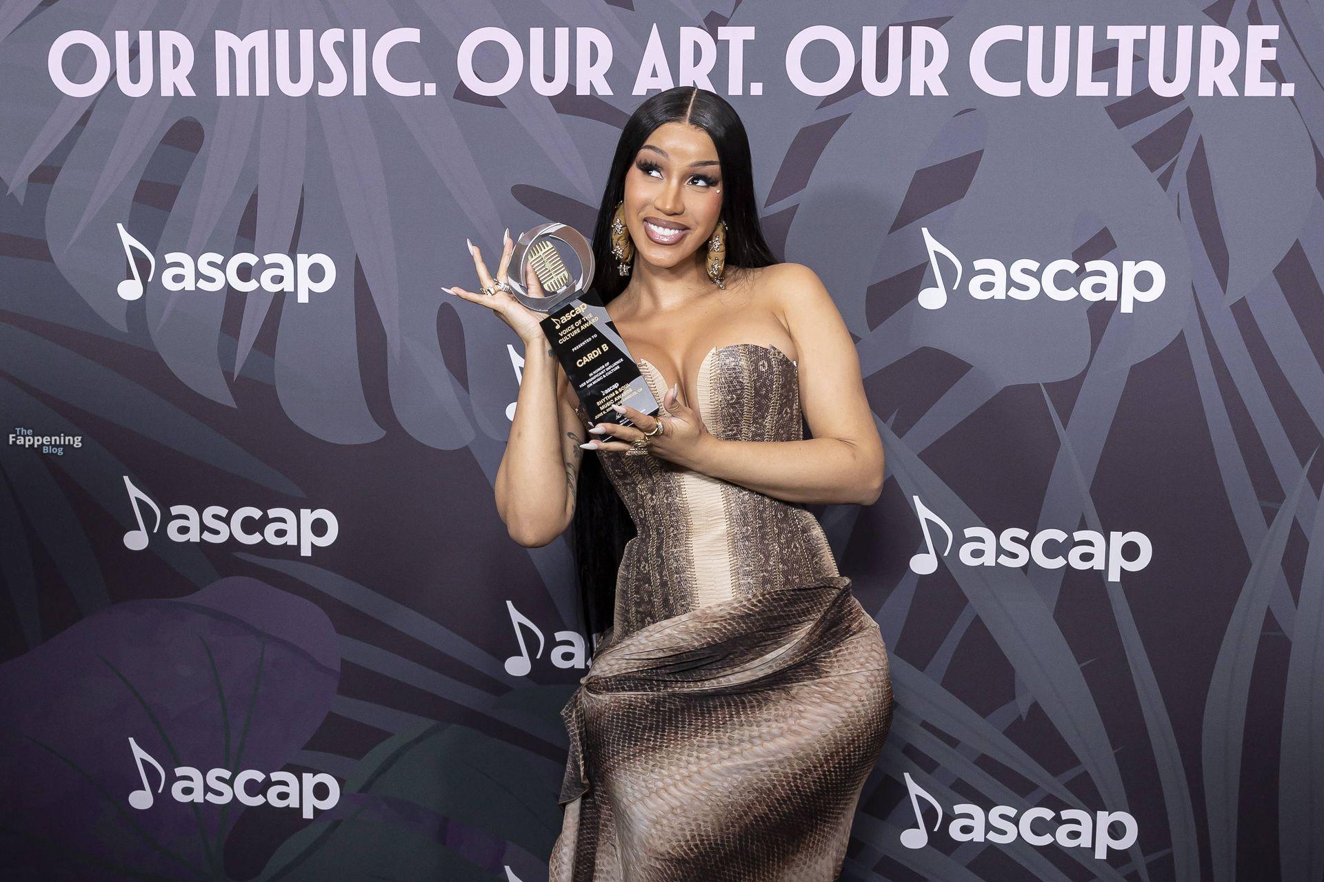 Cardi B chega ao tapete vermelho do prêmio ASCAP com seu prêmio Vozes da Cultura nas mãos no Four Seasons Hotel Los Angeles em Beverly Hills.