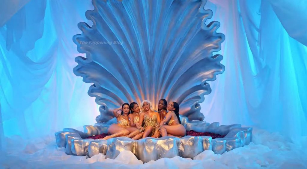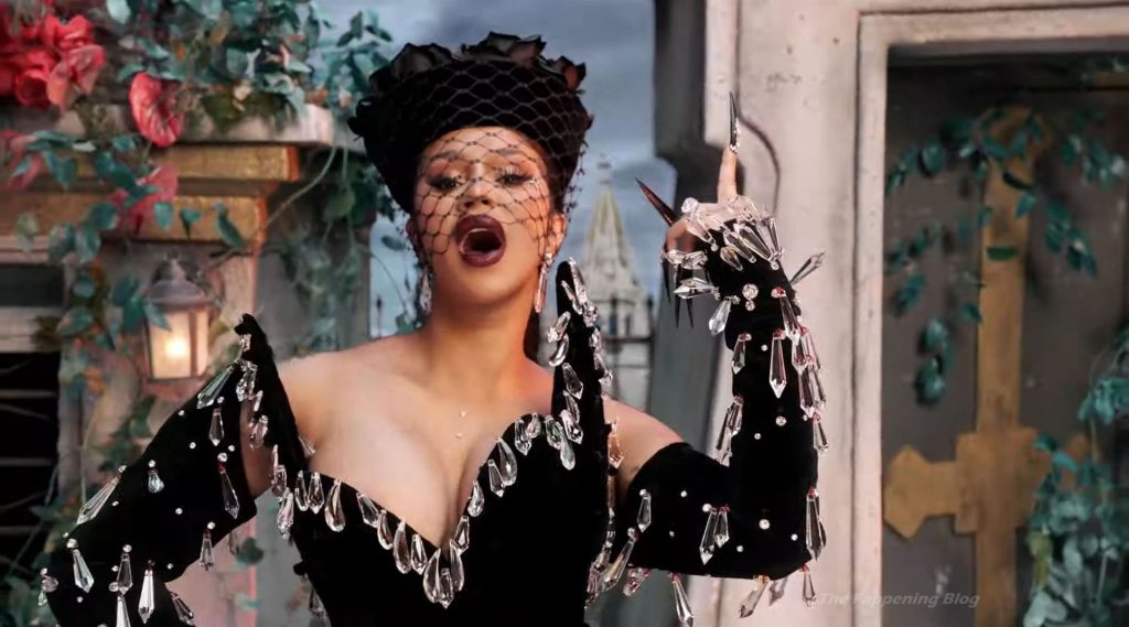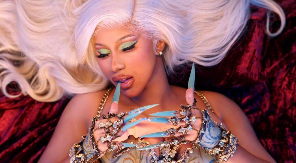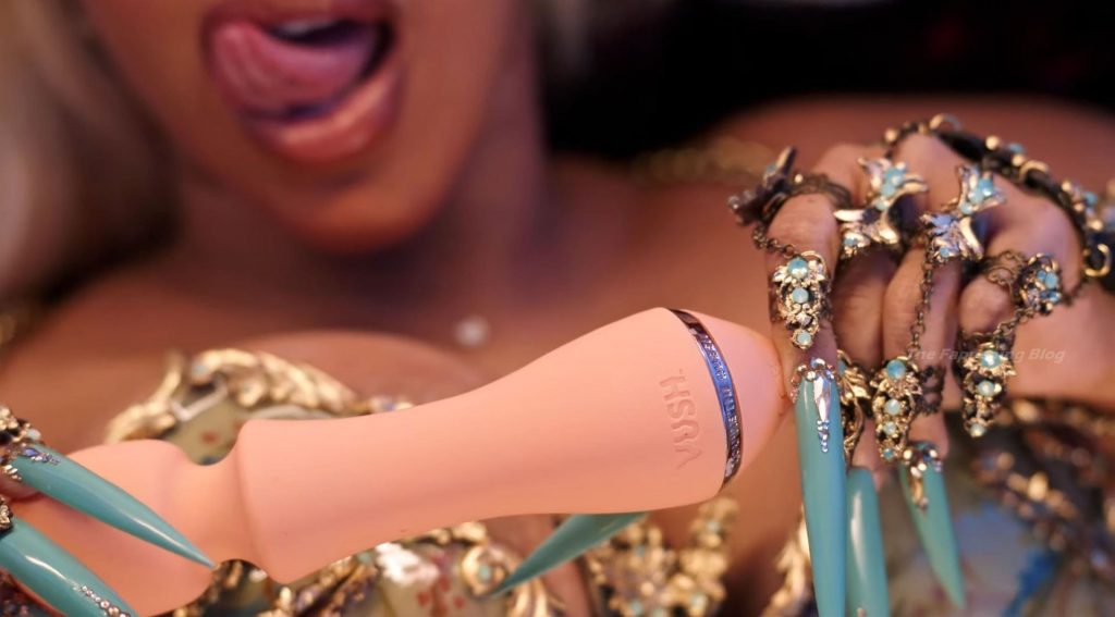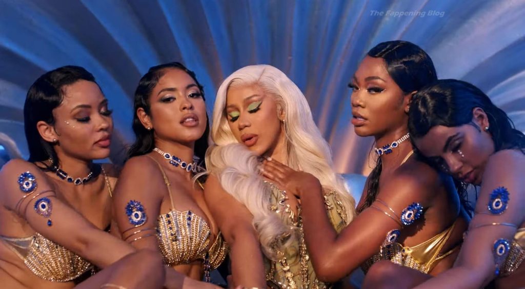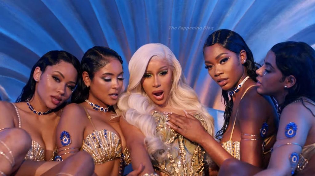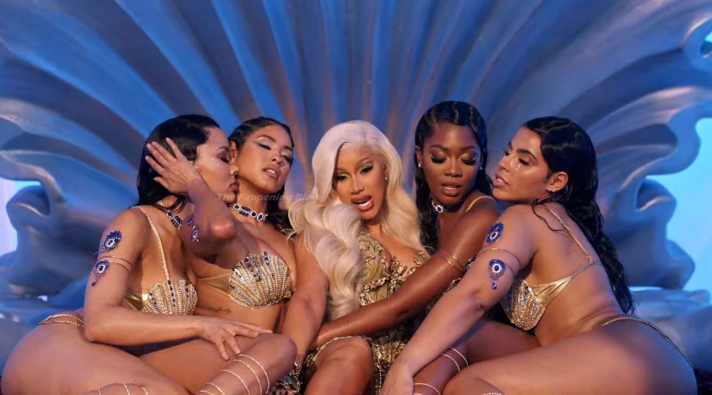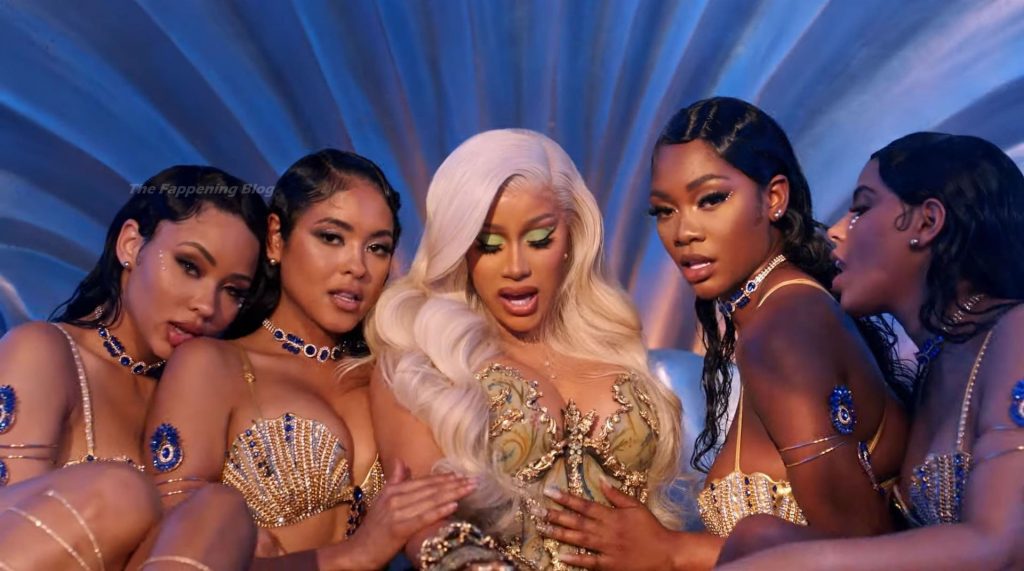 Em um momento, Cardi aparece fantasmagórica como o troféu cravejado no capô de um Bentley. Em outra cena, ela tira um vibrador em um ménage à trois perolado só de garotas dentro da boca de uma ostra. No estilo provocativo característico de Cardi, há também momentos verdadeiramente incríveis e WTF, como quando cabeças de boneca Barbie começam a cantar dentro do seu cabelo.