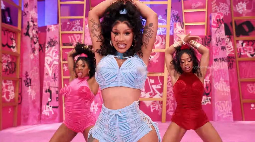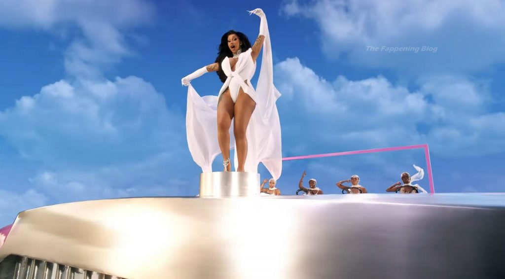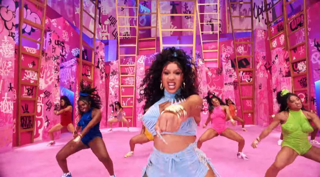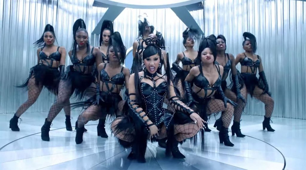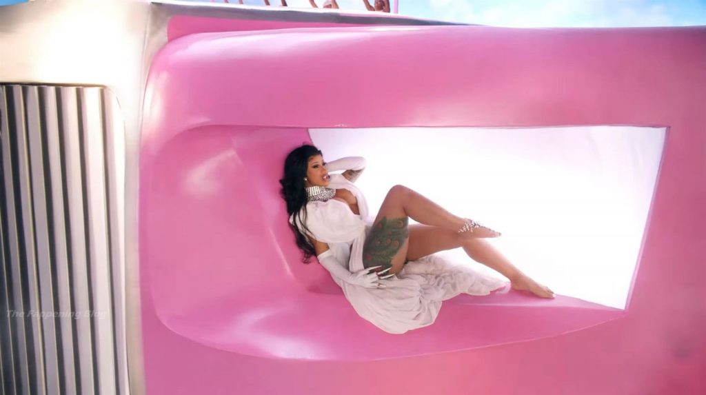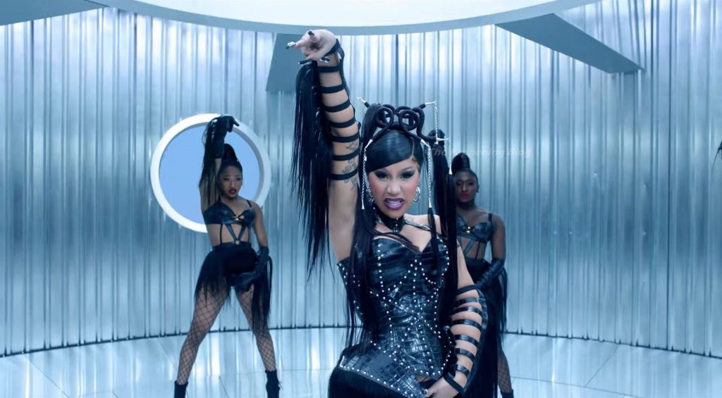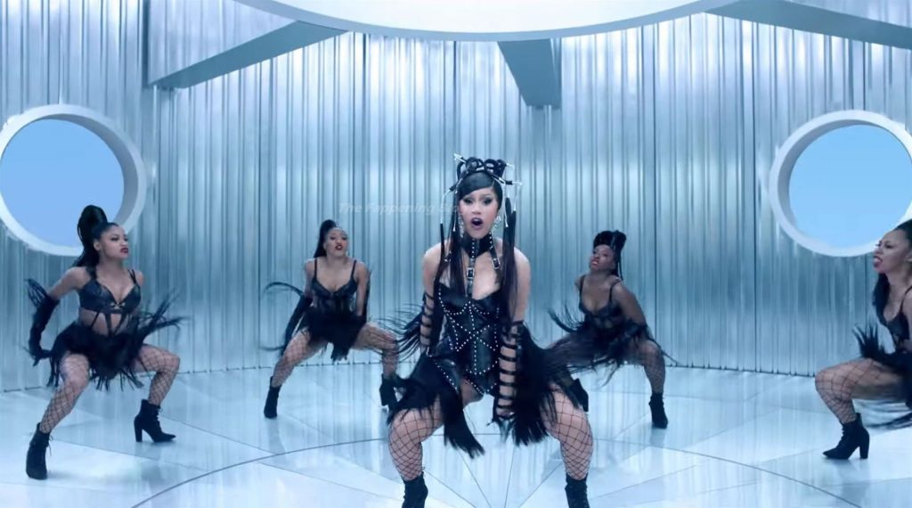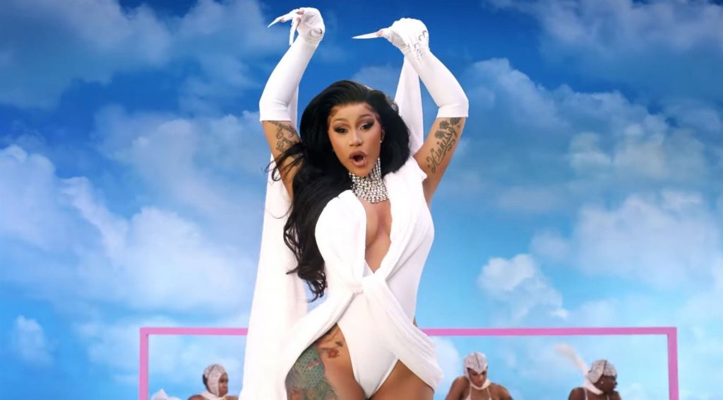 No vídeo, Cardi também presta uma homenagem sexy aos ícones de estilo que vieram antes dela, desde Marilyn Monroe até Madonna. No início do clipe, a rapper de 28 anos posa no capô de um carro de luxo, vestindo um vestido branco decotado estilo halter que lembra a inesquecível cena da grade do metrô de Monroe em O Pecado Mora ao Lado.