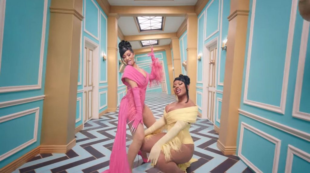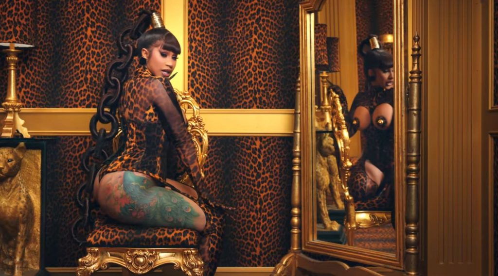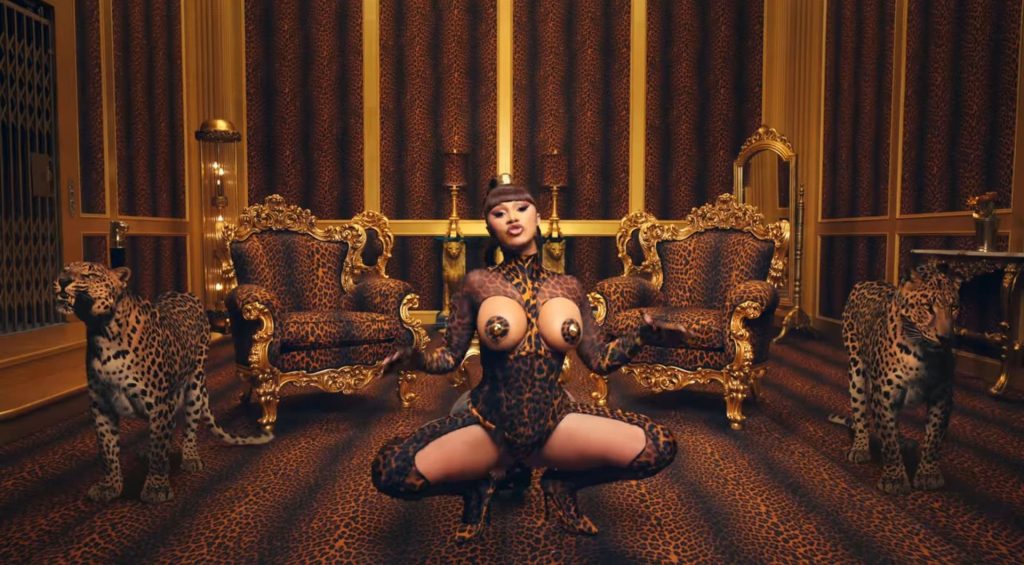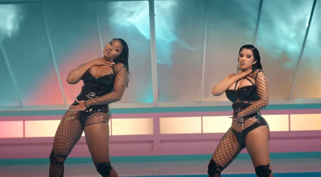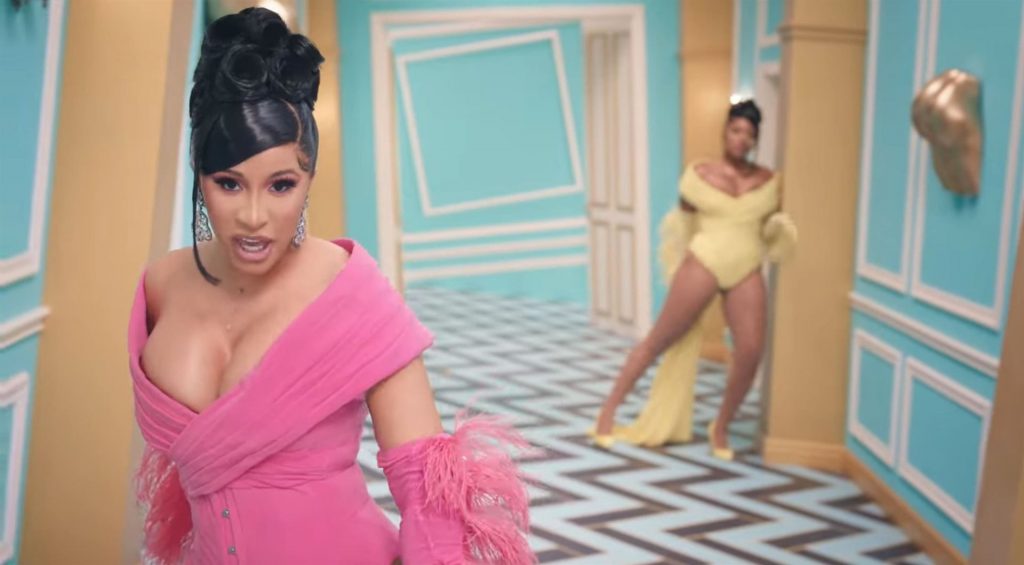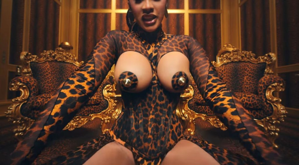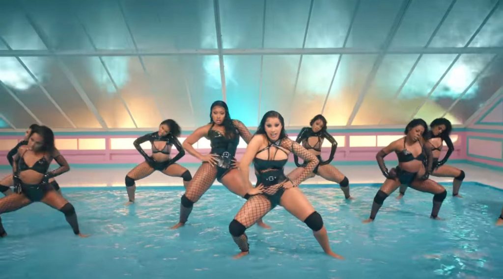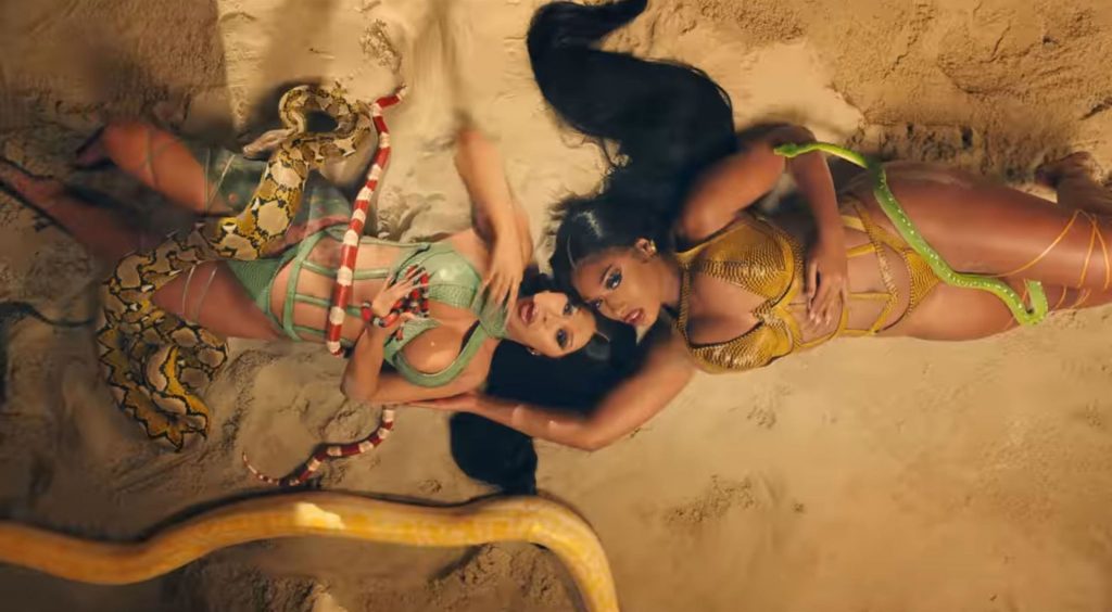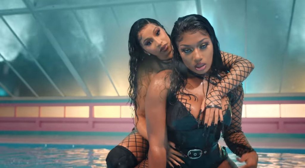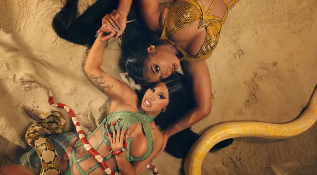 Cardi, 27, e Megan, 25, deixaram os fãs em êxtase com o lançamento do videoclipe no qual elas impressionaram com vários looks quase inexistentes. O vídeo mostra a dupla se divertindo juntas em uma piscina, além de se contorcendo em um tanque de areia junto com várias cobras. Cardi também exibiu seus atributos em um look de estampa de leopardo que incluía protetores de mamilo com tachas, enquanto Megan rebolava em um collant de estampa de zebra quase transparente.