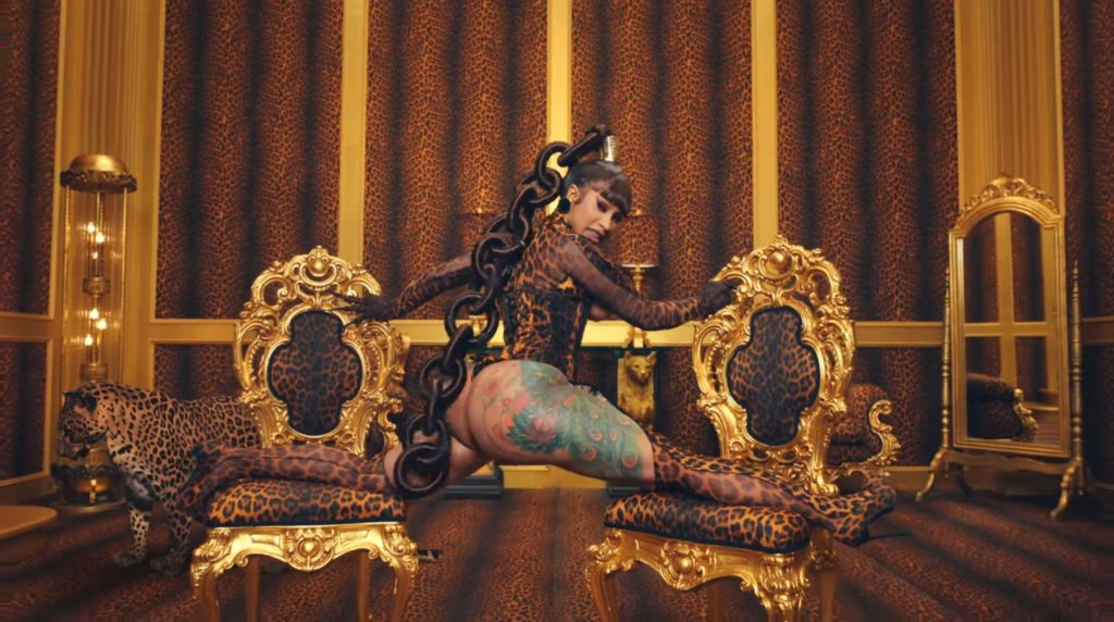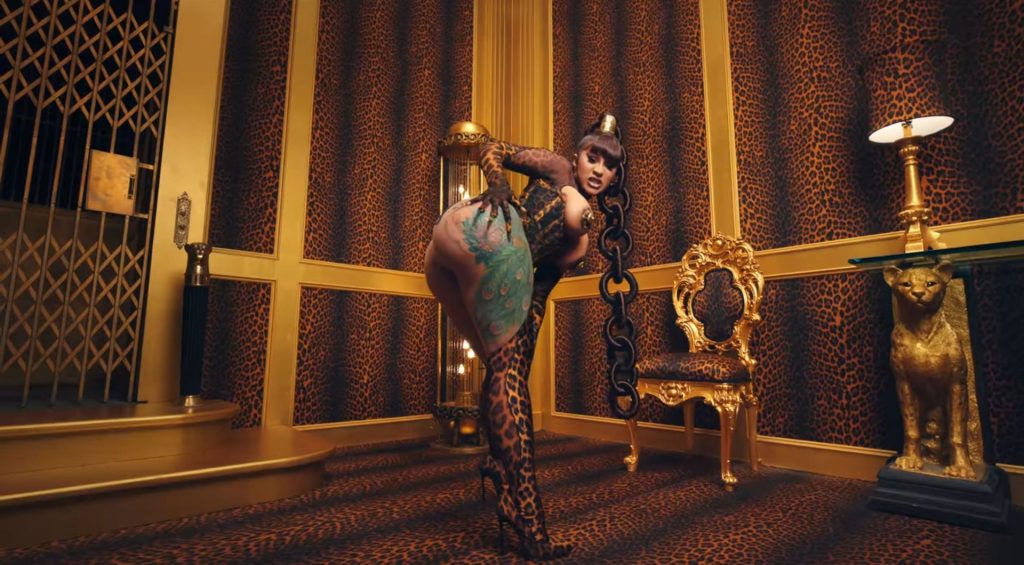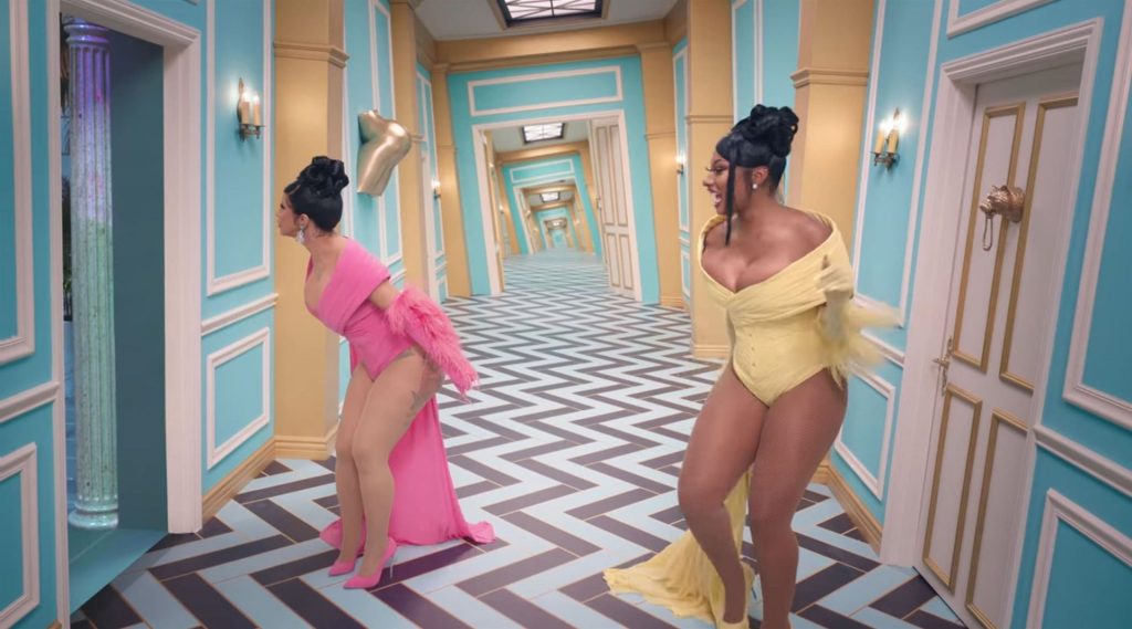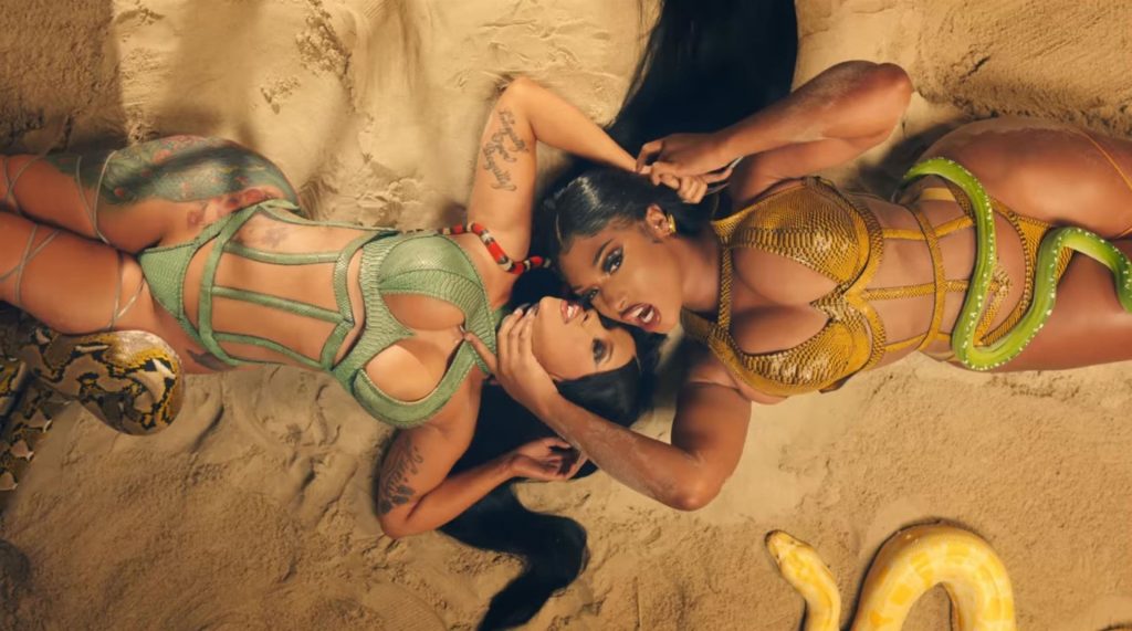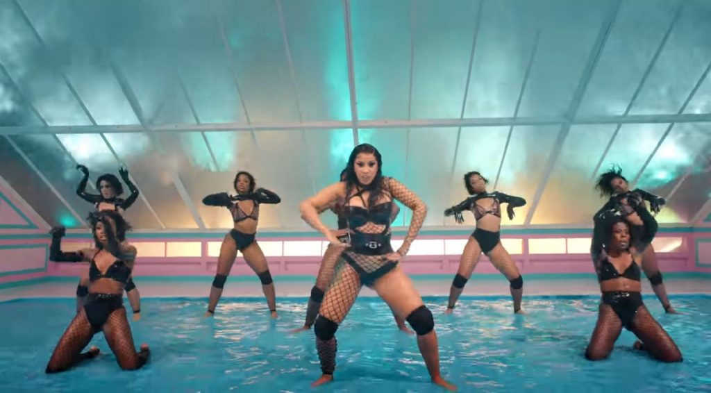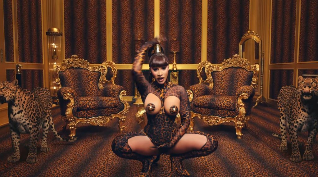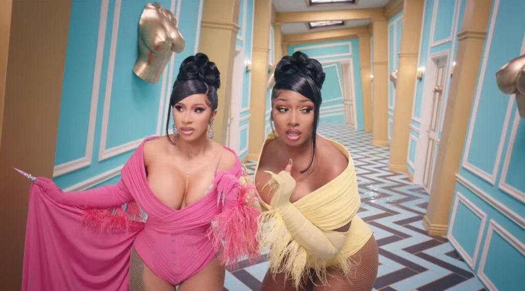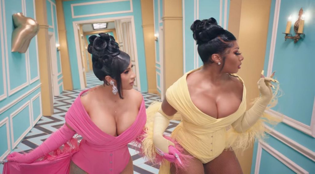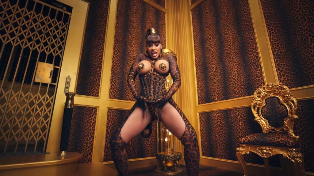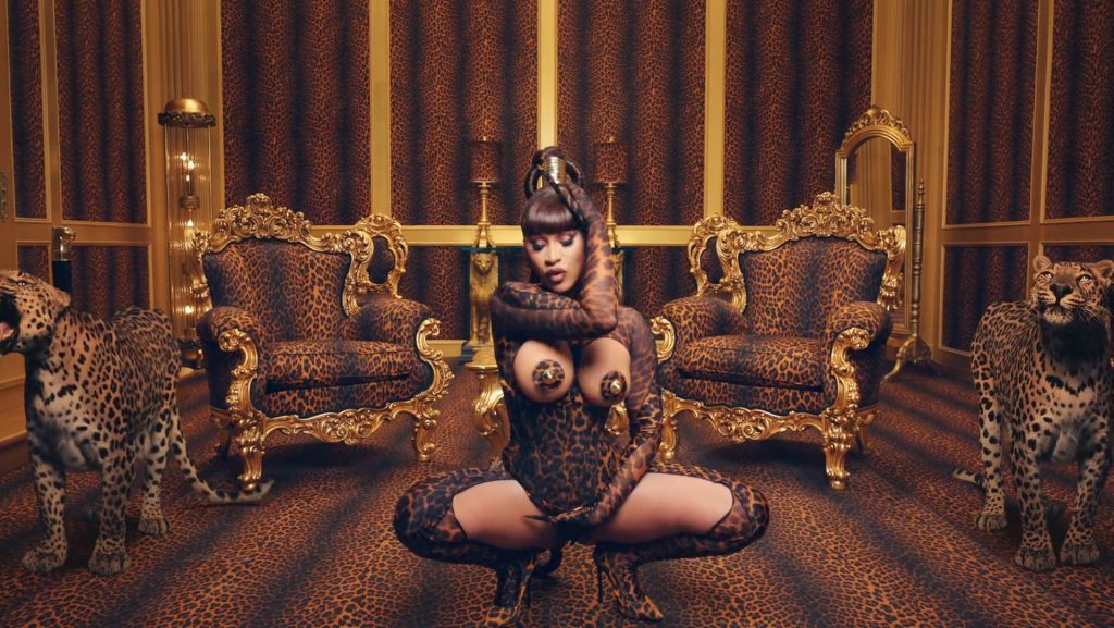 Cardi, 27, e Megan, 25, deixaram os fãs em êxtase com o lançamento do videoclipe no qual elas impressionaram com vários looks quase inexistentes. O vídeo mostra a dupla se divertindo juntas em uma piscina, além de se contorcendo em um tanque de areia junto com várias cobras. Cardi também exibiu seus atributos em um look de estampa de leopardo que incluía protetores de mamilo com tachas, enquanto Megan rebolava em um collant de estampa de zebra quase transparente.