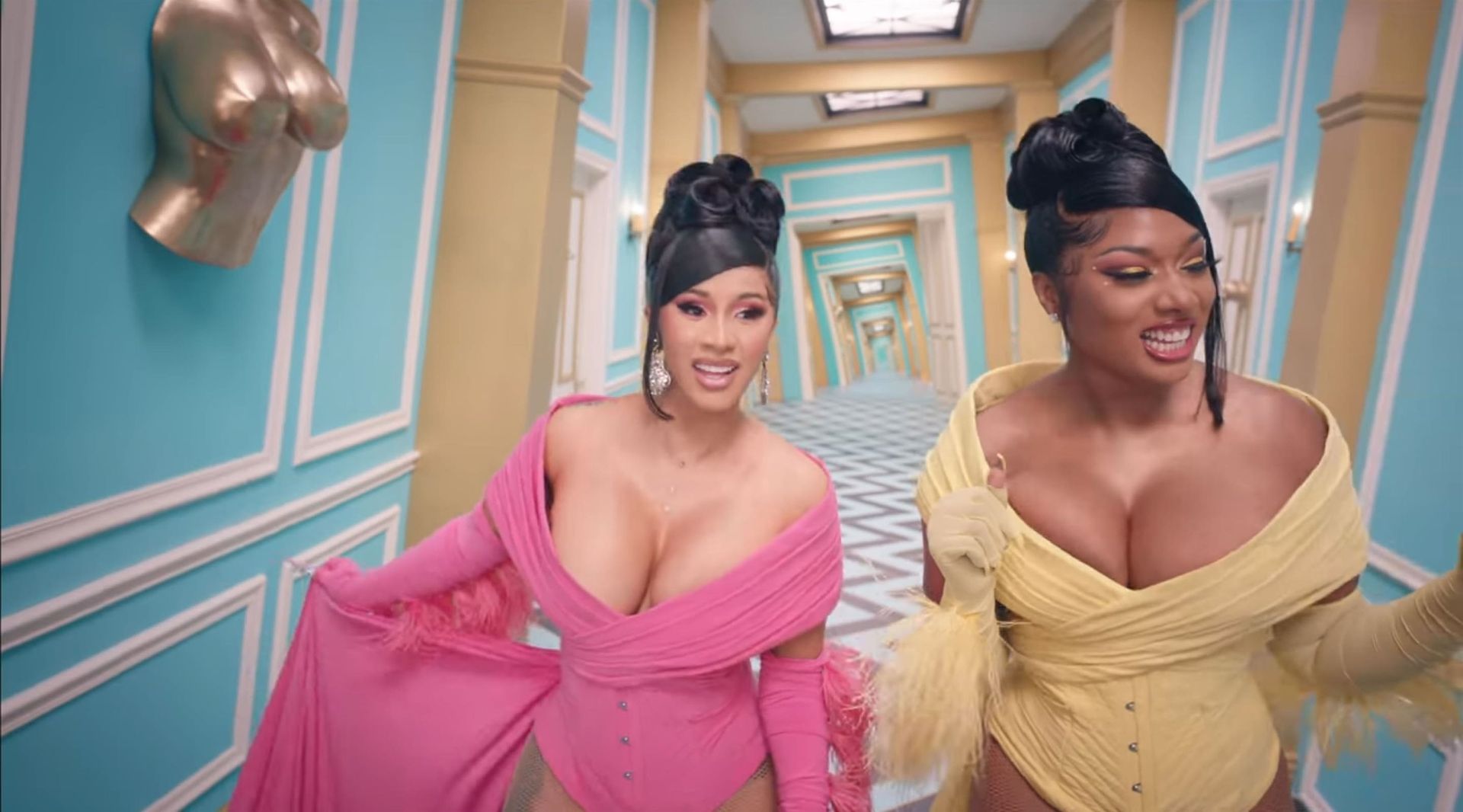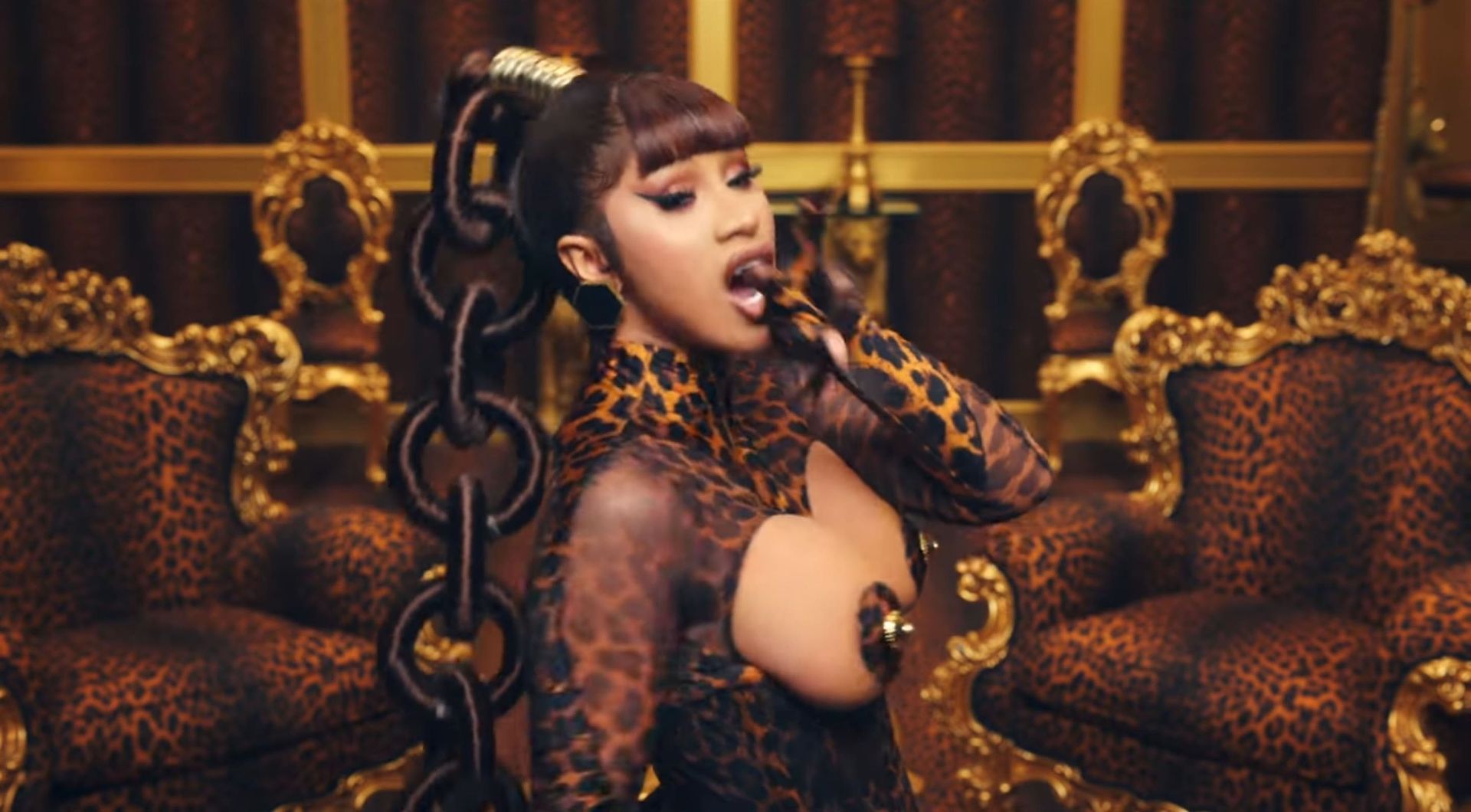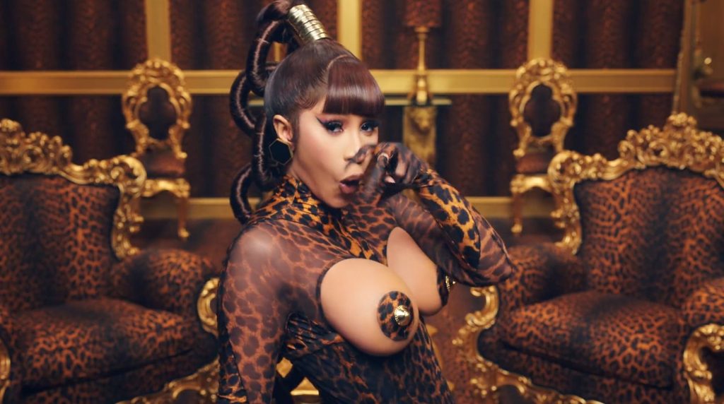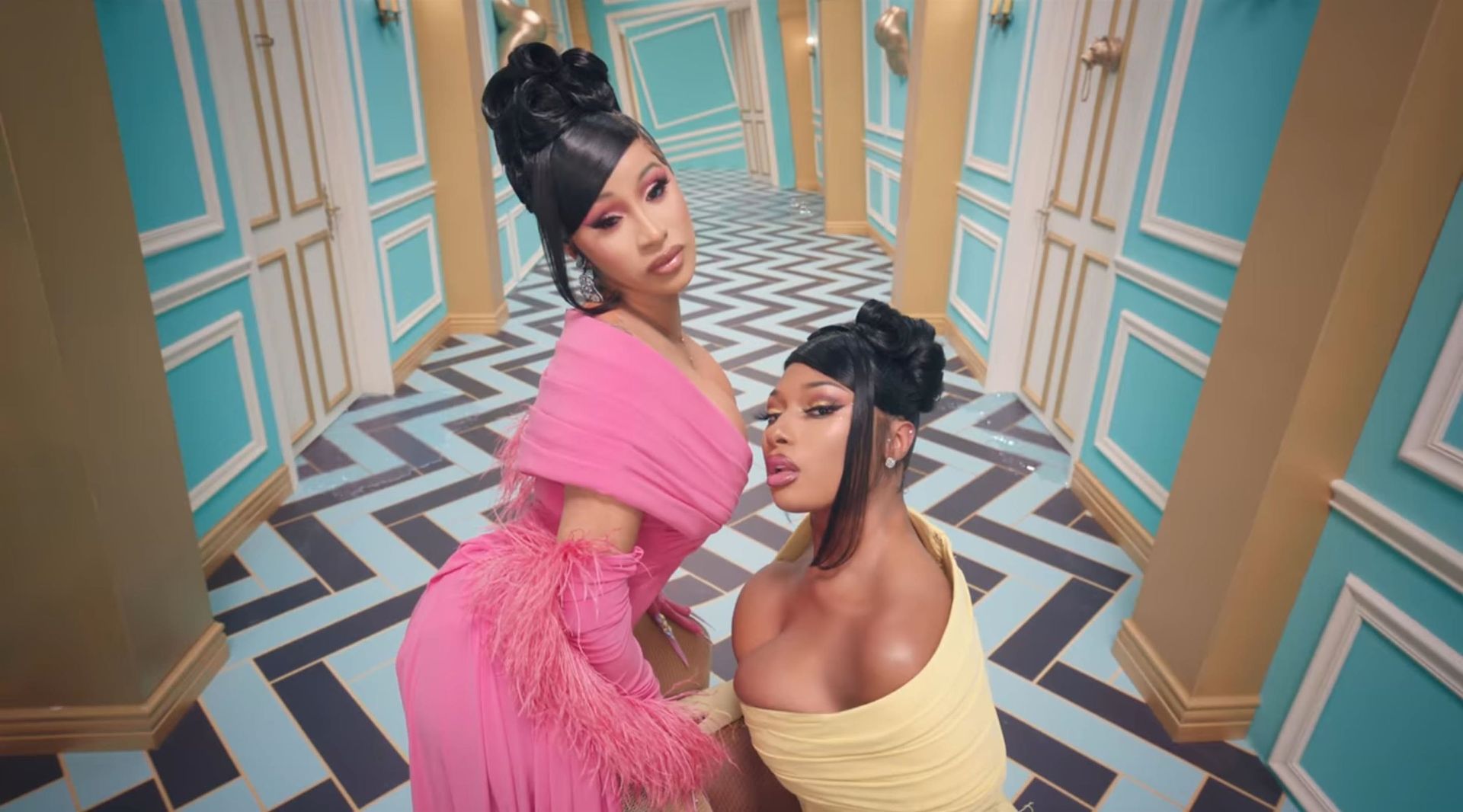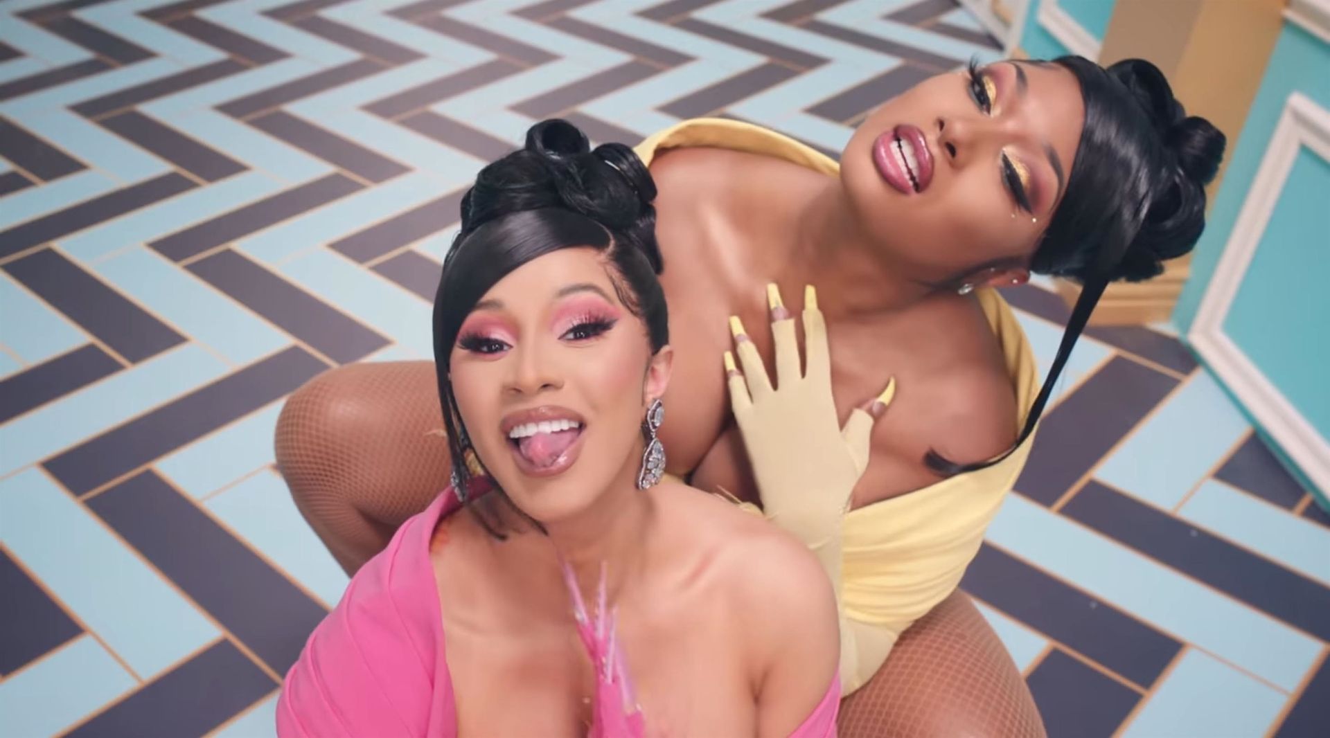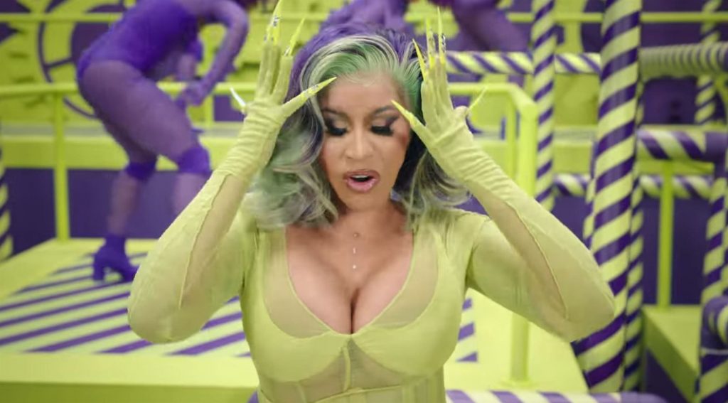 Cardi, 27, e Megan, 25, deixaram os fãs em êxtase com o lançamento do videoclipe no qual elas impressionaram com vários looks quase inexistentes. O vídeo mostra a dupla se divertindo juntas em uma piscina, além de se contorcendo em um tanque de areia junto com várias cobras. Cardi também exibiu seus atributos em um look de estampa de leopardo que incluía protetores de mamilo com tachas, enquanto Megan rebolava em um collant de estampa de zebra quase transparente.