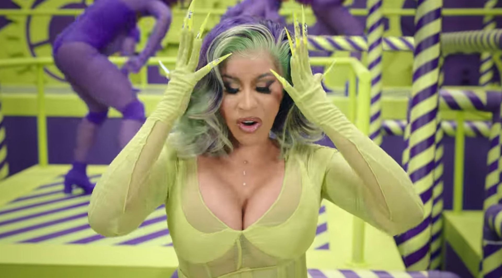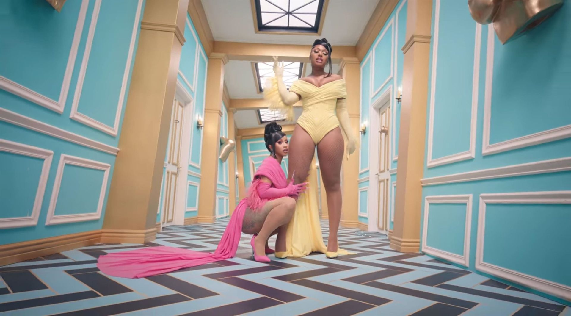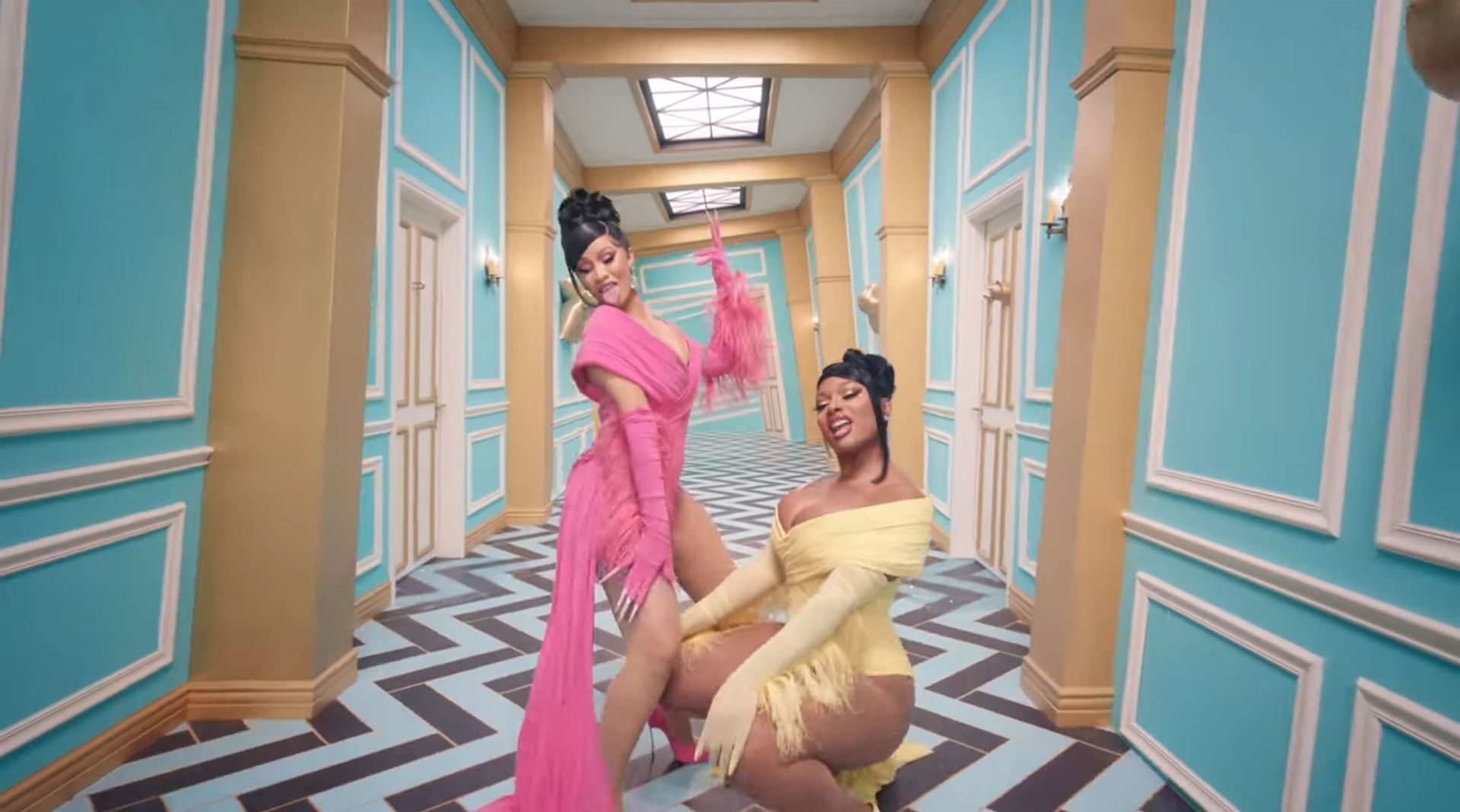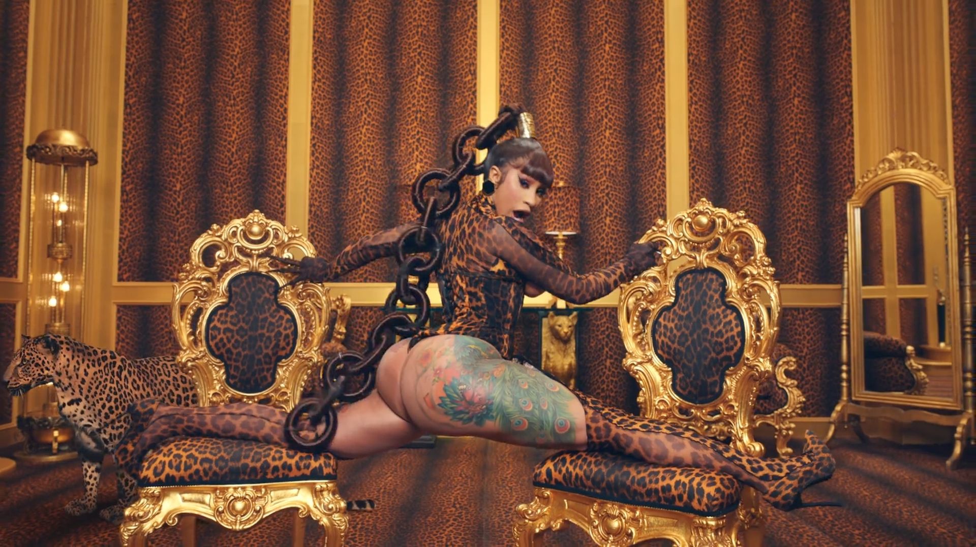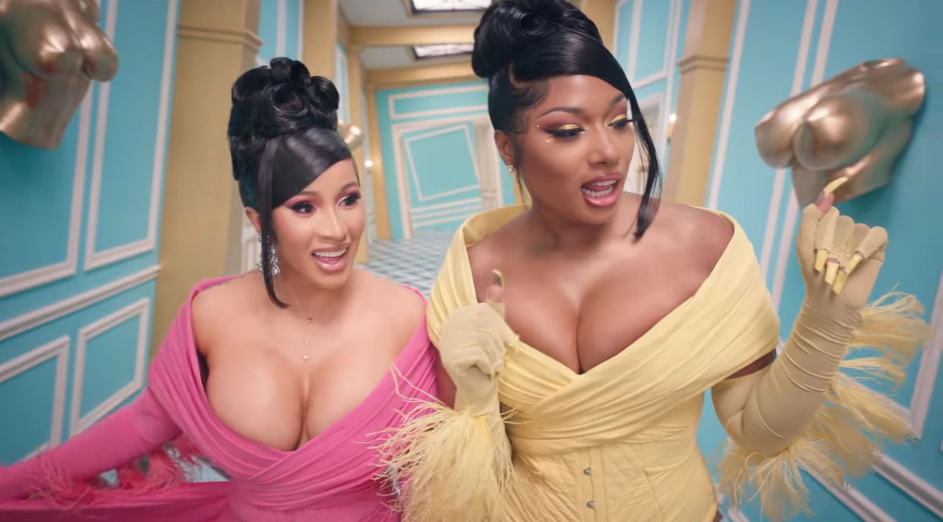 Cardi, 27, e Megan, 25, deixaram os fãs em êxtase com o lançamento do videoclipe no qual elas impressionaram com vários looks quase inexistentes. O vídeo mostra a dupla se divertindo juntas em uma piscina, além de se contorcendo em um tanque de areia junto com várias cobras. Cardi também exibiu seus atributos em um look de estampa de leopardo que incluía protetores de mamilo com tachas, enquanto Megan rebolava em um collant de estampa de zebra quase transparente.