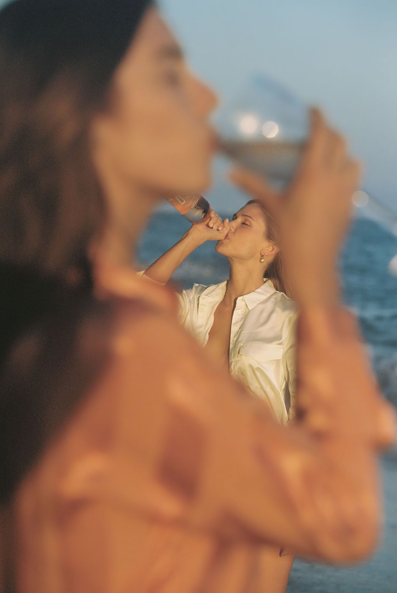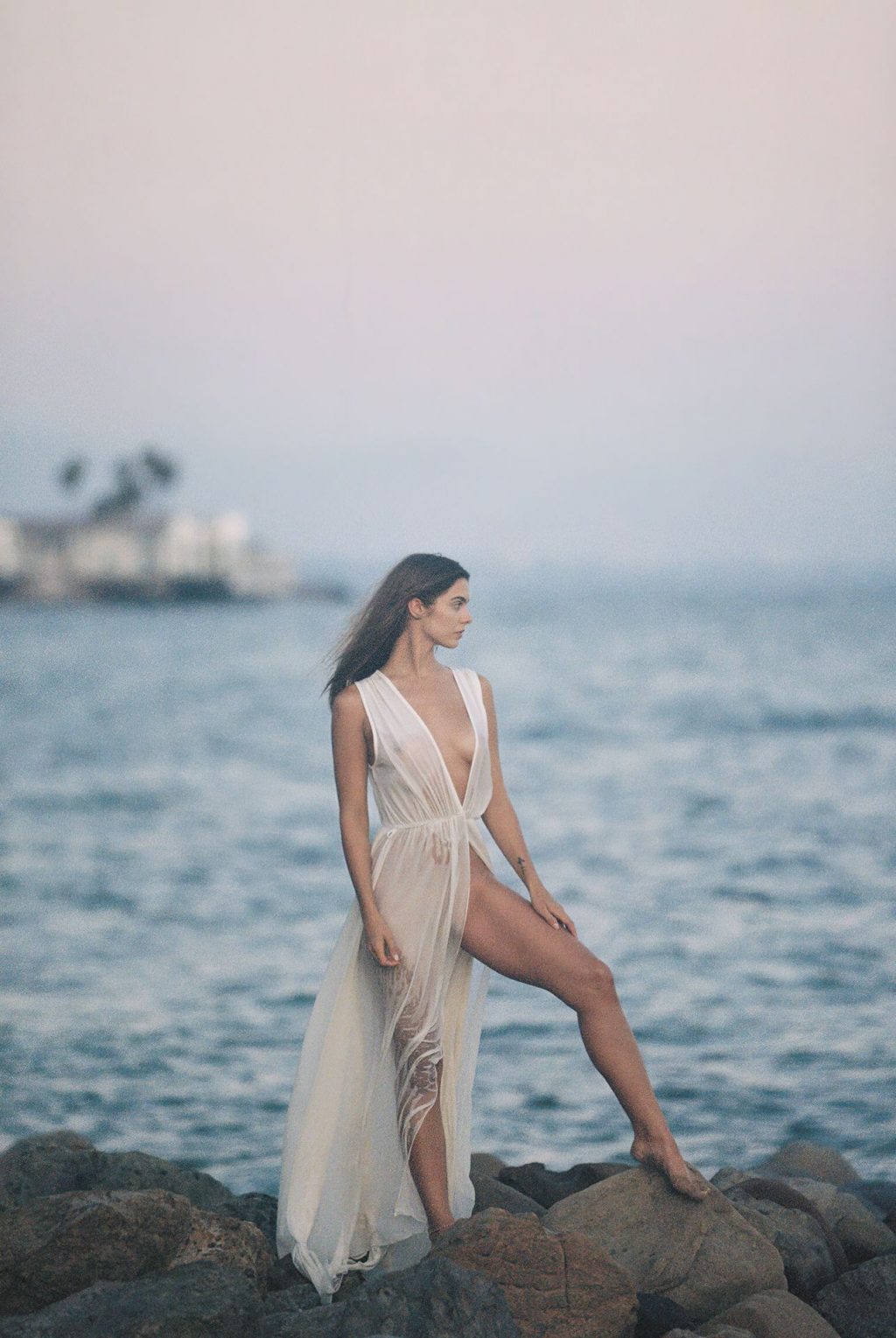 Duas belas esbeltas Carmella Rose e Scarlett Leithold posam quase nuas em um ensaio fotográfico que celebra a liberdade, feito por Sam Dameshek na praia e no hotel em Malibu (2020).