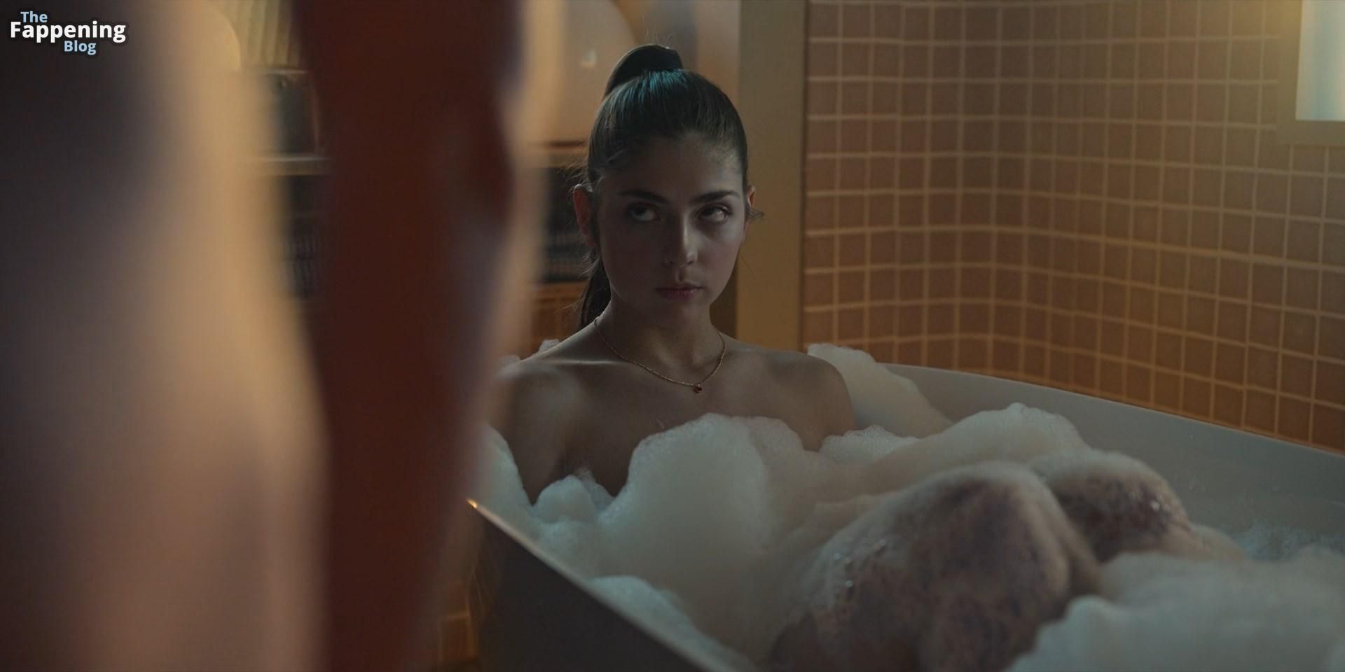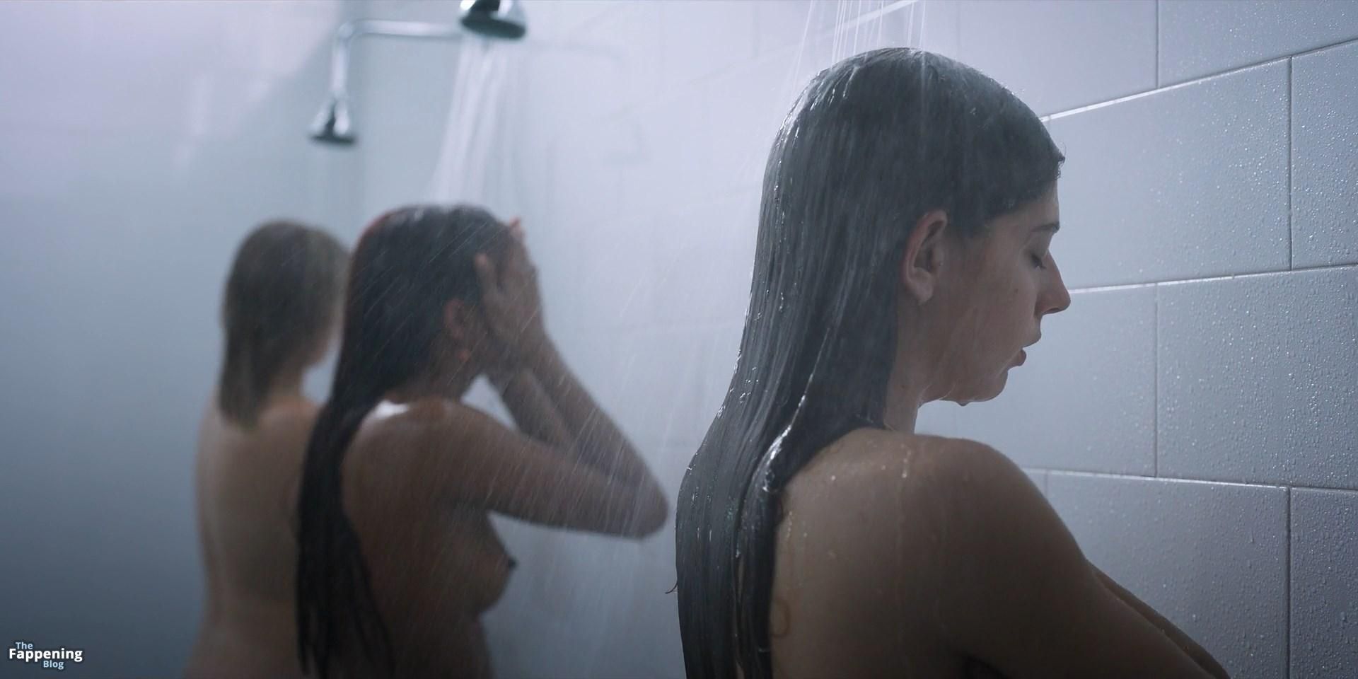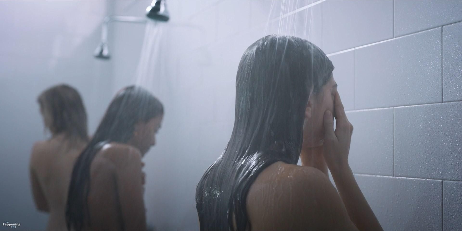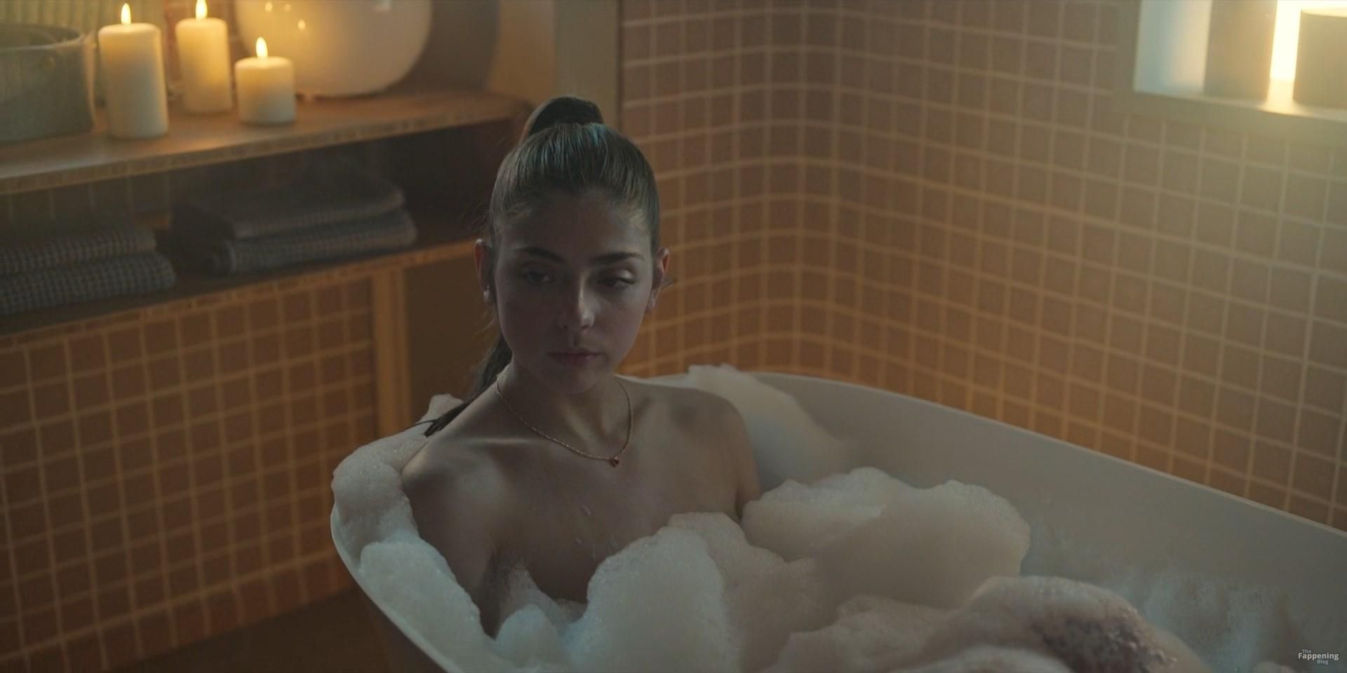 Entendo como olhar para fotos fixas poderia fazer você pensar isso, mas nos vídeos da cena, é uma tomada panorâmica do rosto dela até o peito. E há cenas de banho nuas de trás em Elite.