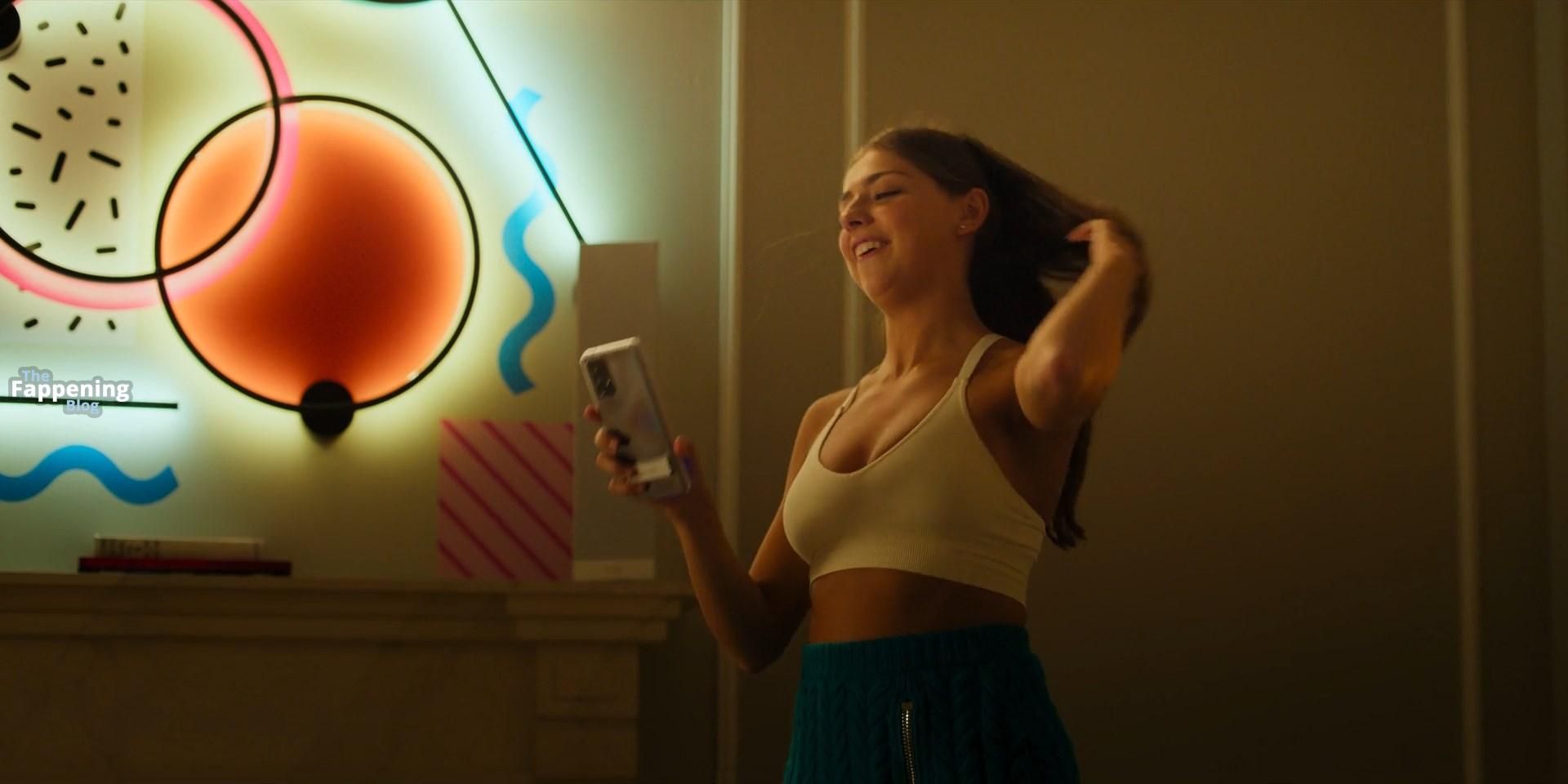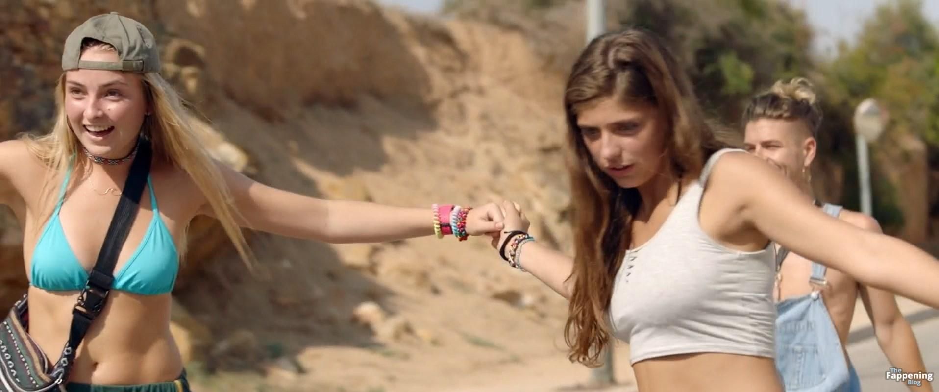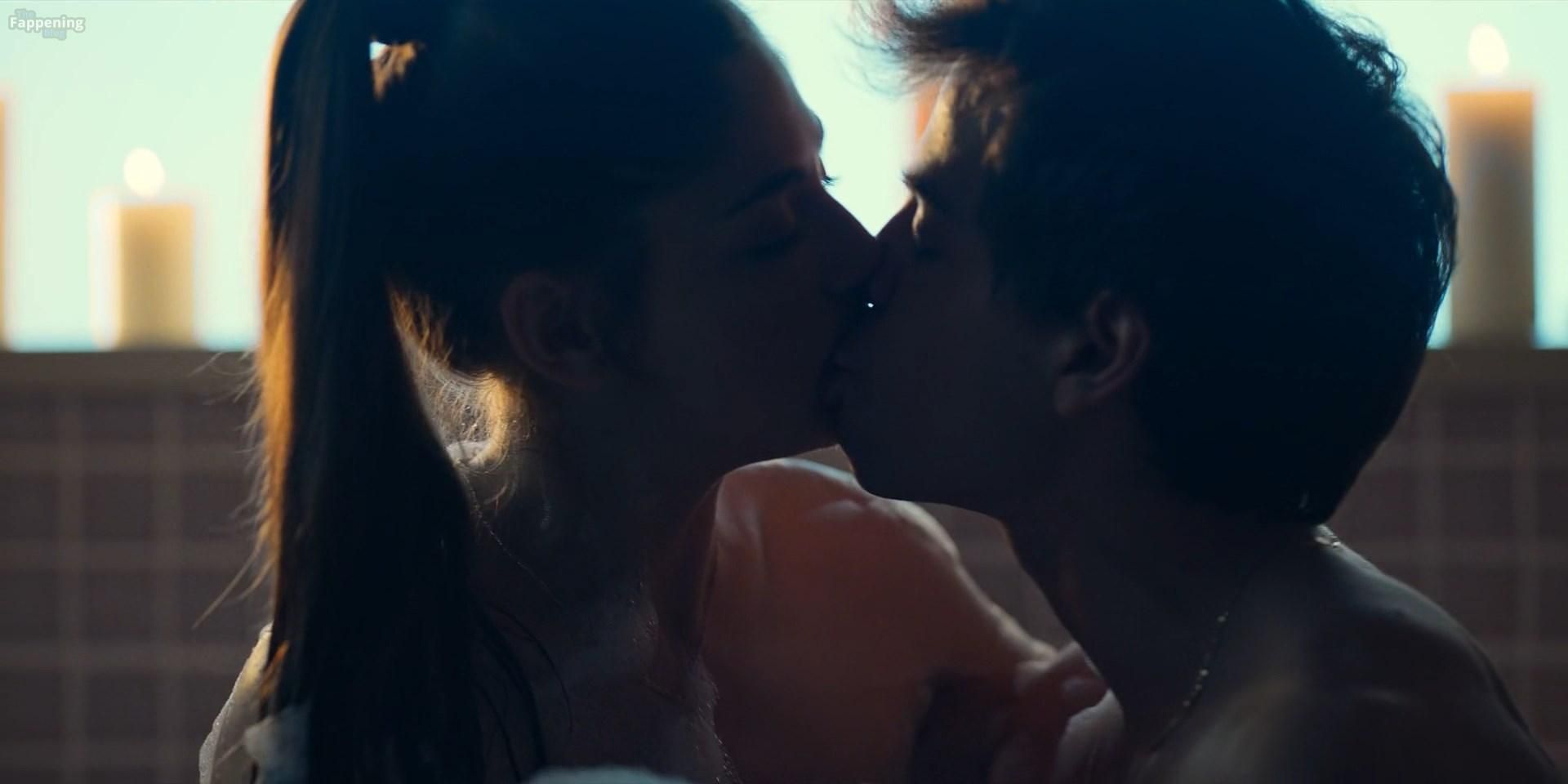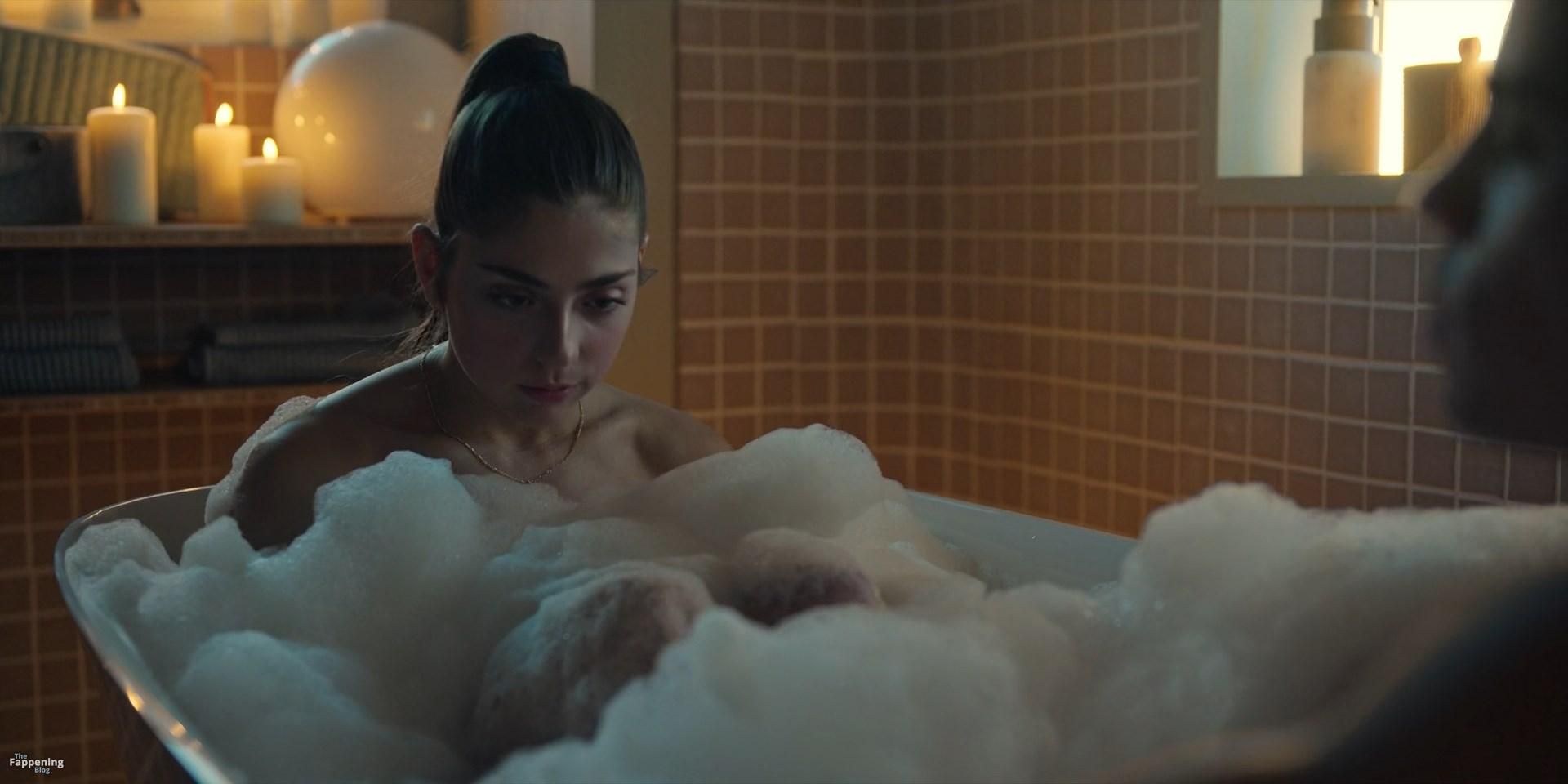 Entendo como olhar para fotos fixas poderia fazer você pensar isso, mas nos vídeos da cena, é uma tomada panorâmica do rosto dela até o peito. E há cenas de banho nuas de trás em Elite.