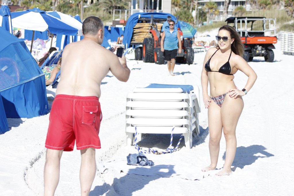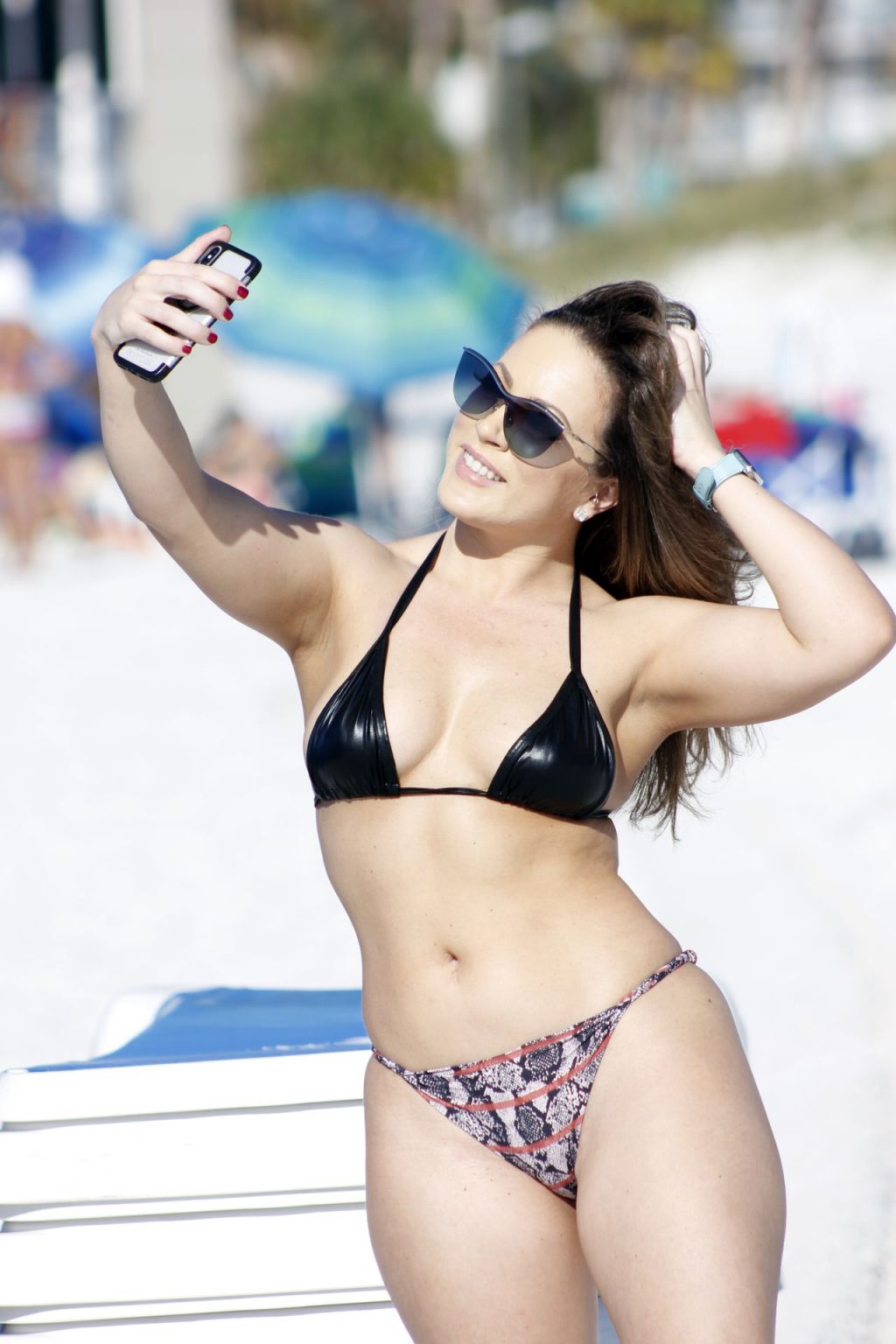 A premiada estrela de filmes adultos Carmen Valentina chamou atenção enquanto passava um dia na praia com seu biquíni minúsculo de duas peças, 31/10/2019. A estrela em forma e curvilínea foi notada por vários fãs que queriam fotos dela.