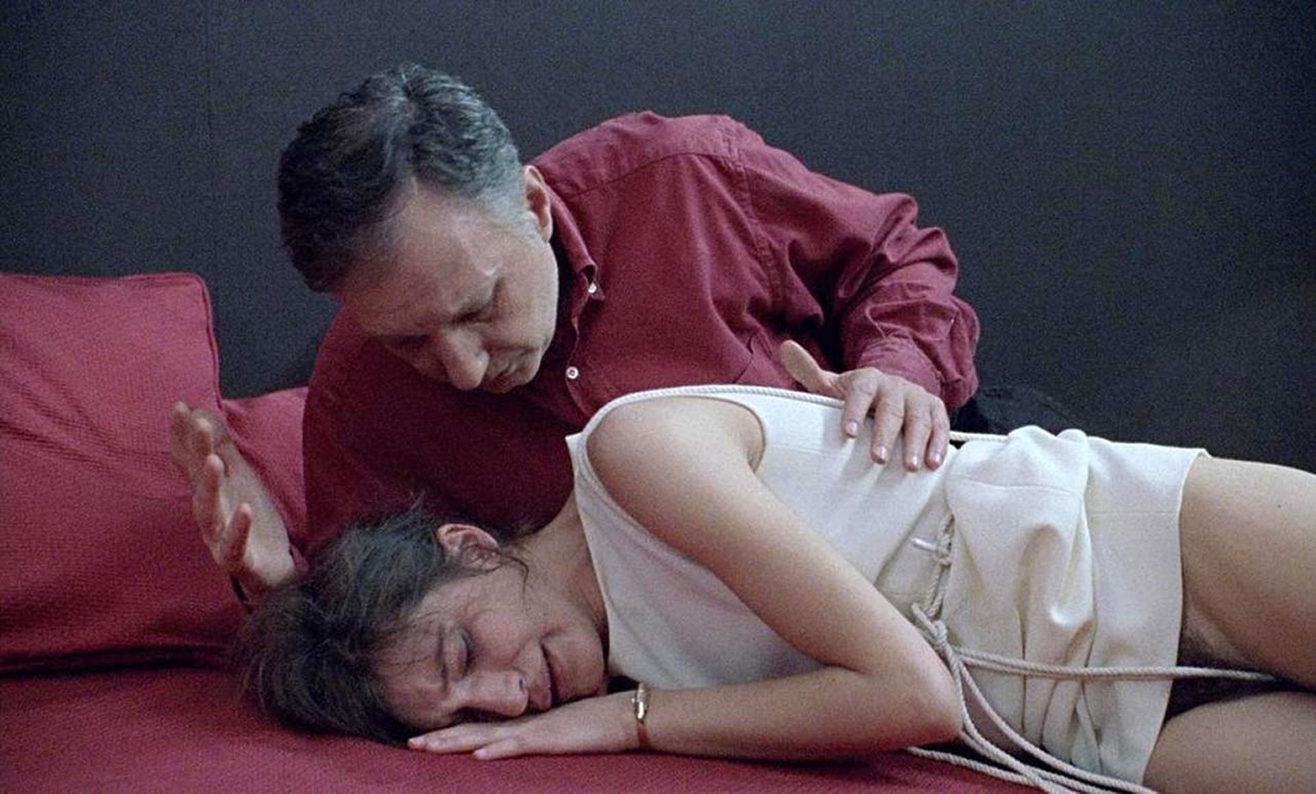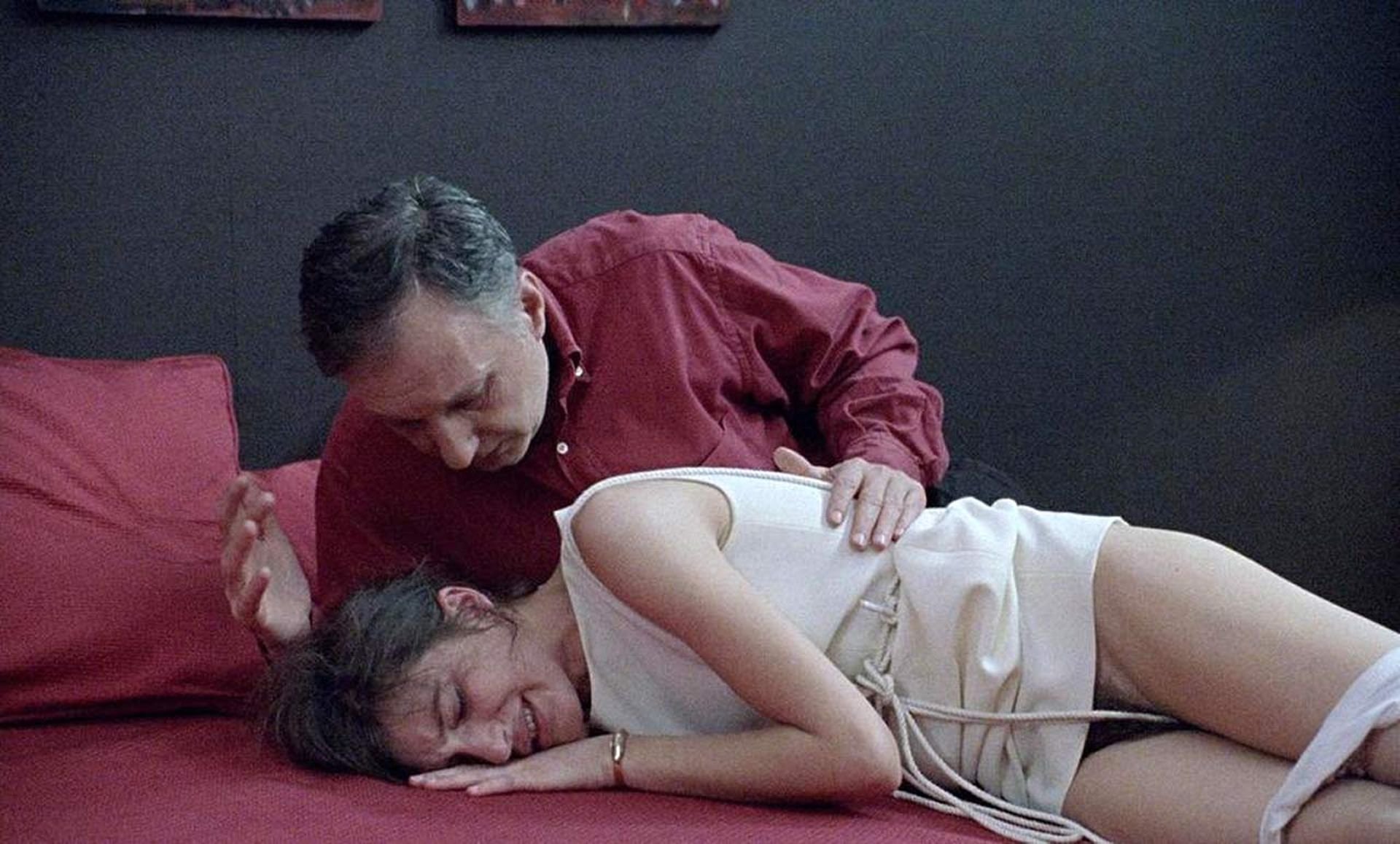 Assista à cena curta nua antiga, mas quente, de Caroline Ducey em “Romance” (1999). Nela, Ducey é vista nos braços de um homem idoso, que a carrega para a cama. A garota está chorando, mas isso não impede o homem de forçá-la e sussurrar algo em seu ouvido. Você pode ver o jardim escuro e emaranhado de Caroline Ducey!