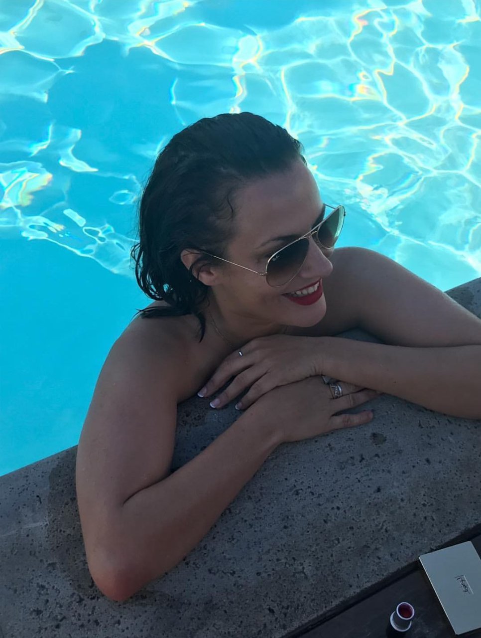 Aqui estão duas fotos topless (cobertas) de Caroline Flack do Instagram, 14/11/2017. Caroline Flack é uma apresentadora de TV e rádio inglesa, modelo. Idade: 38 anos.