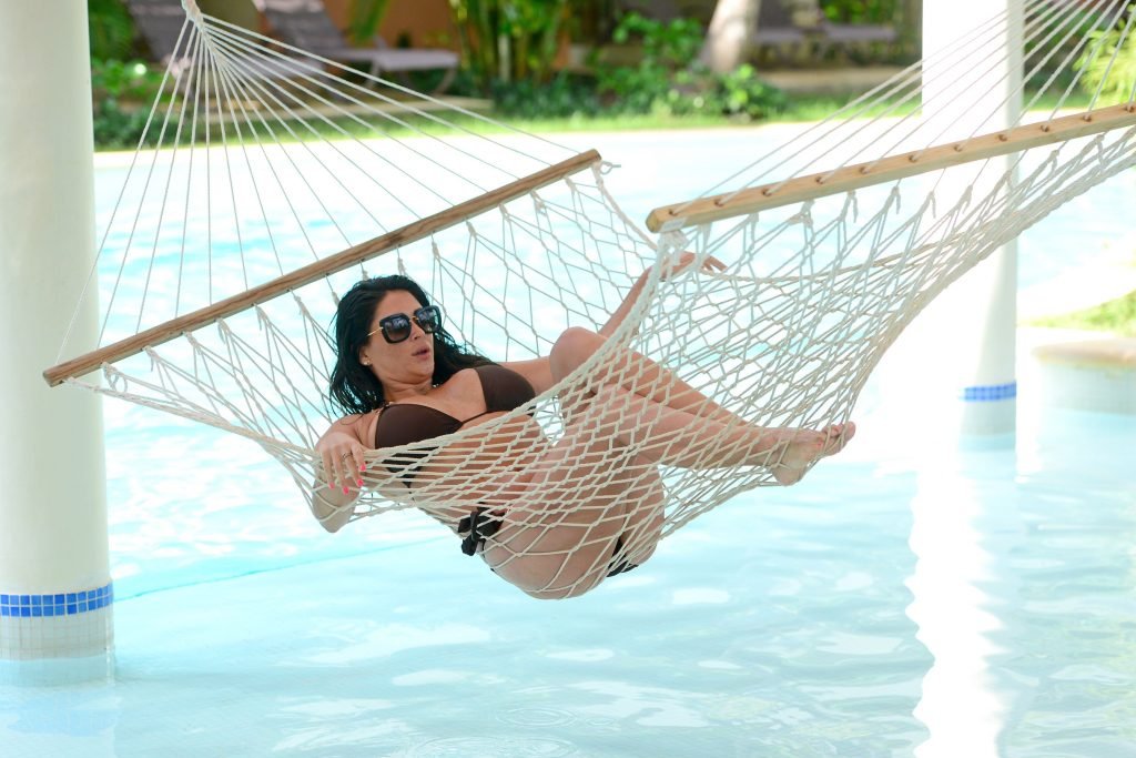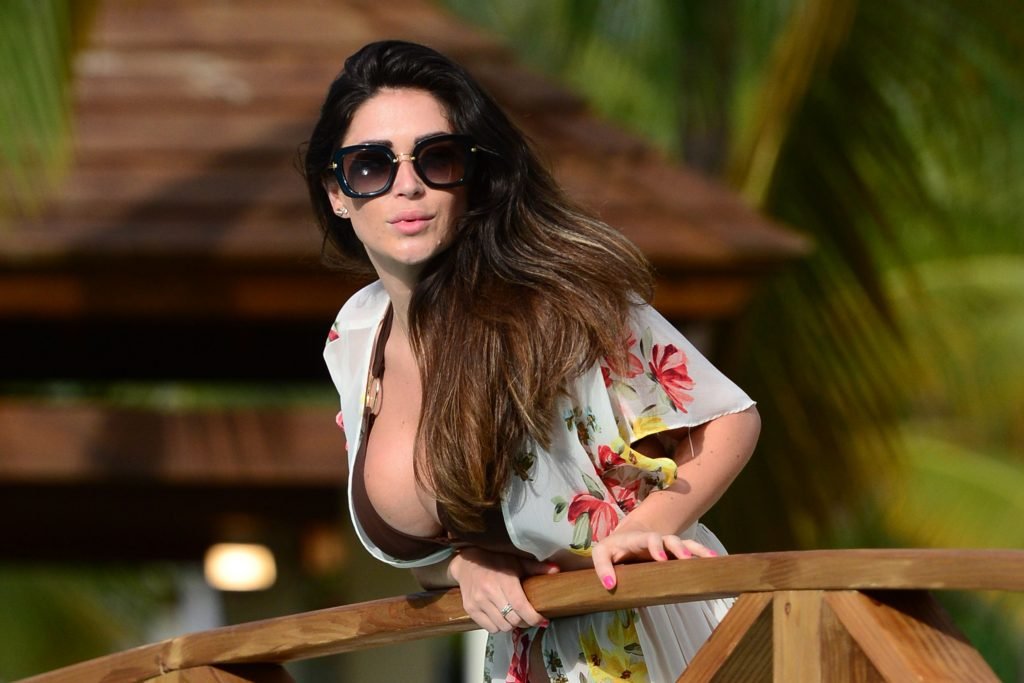 Casey Batchelor, de seios fartos, usa um biquíni preto durante férias na República Dominicana, 15/04/2017. Casey Batchelor é uma modelo & atriz (Bonded by Blood 2, 2017) de Essex. Idade – 32 anos (nascida em 2 de outubro de 1984).