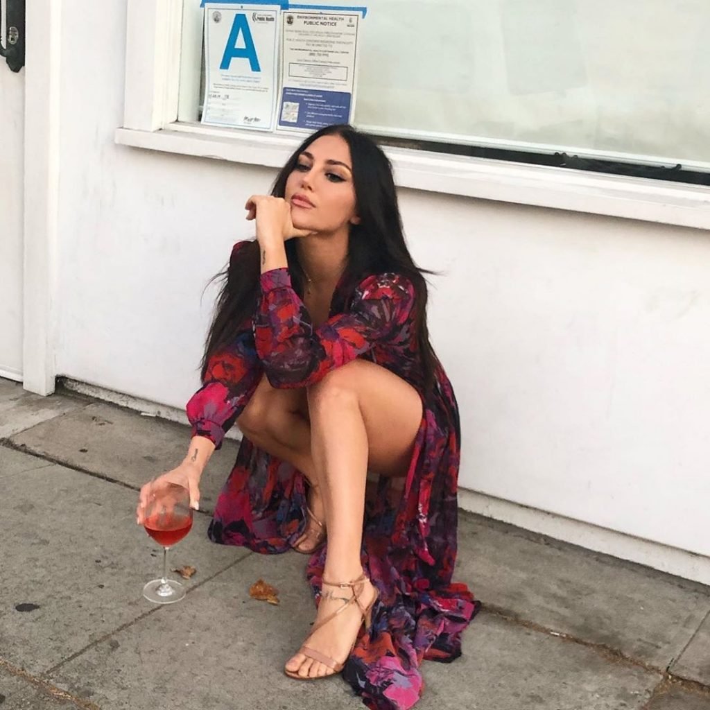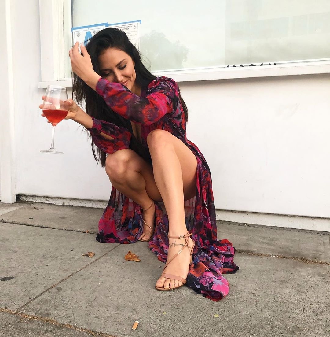 Atriz/cantora/dançarina Cassandra ‘Cassie’ Scerbo foi fotografada com vinho mostrando suas pernas e roupa íntima sexy – Instagram, 30/07/2019.