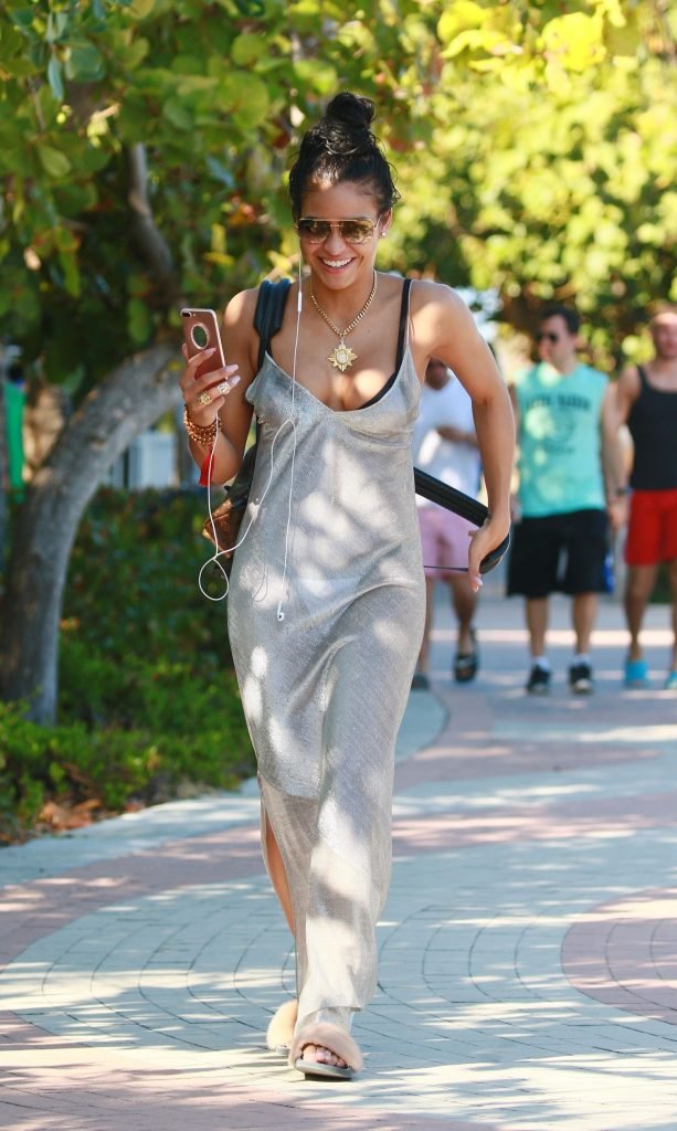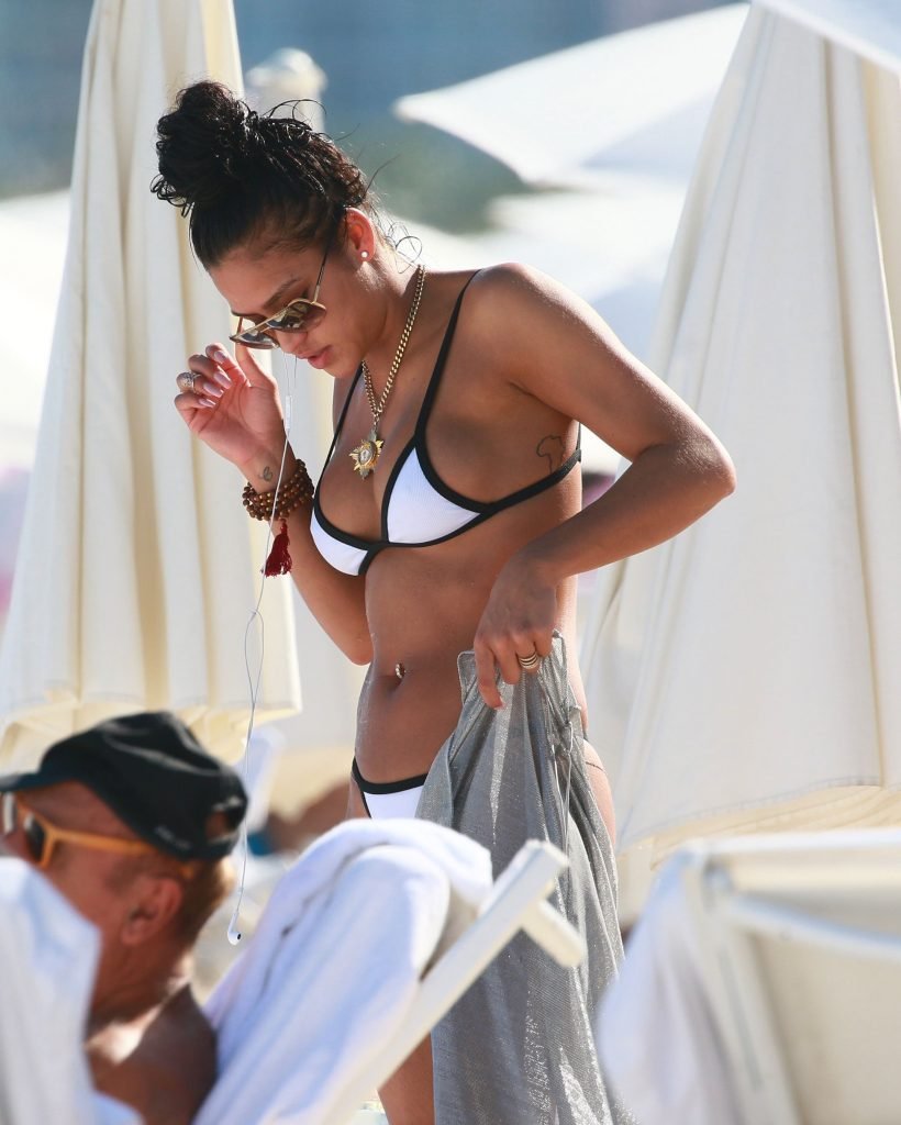 A cantora Cassie Ventura exibe seu corpo sexy em um biquíni preto e branco na praia em Miami, 27/02/2017.