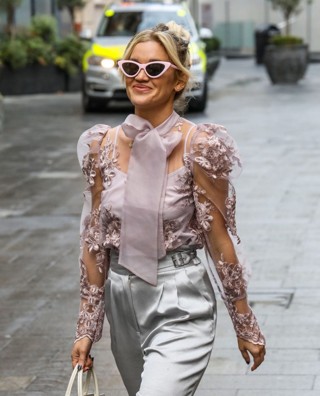 “Heart Breakfast” apresentadora Amanda Holden e a correspondente de Showbiz Ashley Roberts celebram o relaxamento das restrições do lockdown ao vivo no Heart Breakfast enquanto visitam o cinema Odeon na Leicester Square, Londres, 17/05/2021.