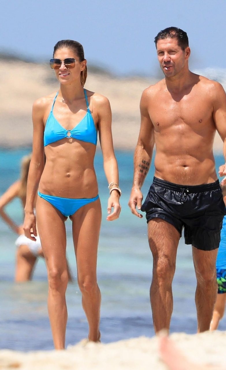 Diego Pablo Simeone e Carla Pereyra aproveitam um mergulho nas águas do Mar Mediterrâneo em Ibiza, 07/02/2023.