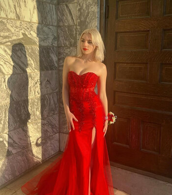 Model Chloe Moss fica selvagem, posando nua em um banco de rua, mostrando suas partes cor-de-rosa. A deslumbrante de 20 anos veste um vestido vermelho, mal cobrindo com apenas uma pequena calcinha por baixo. Ela está toda sorridente, levantando o vestido para mostrar a parte de baixo.