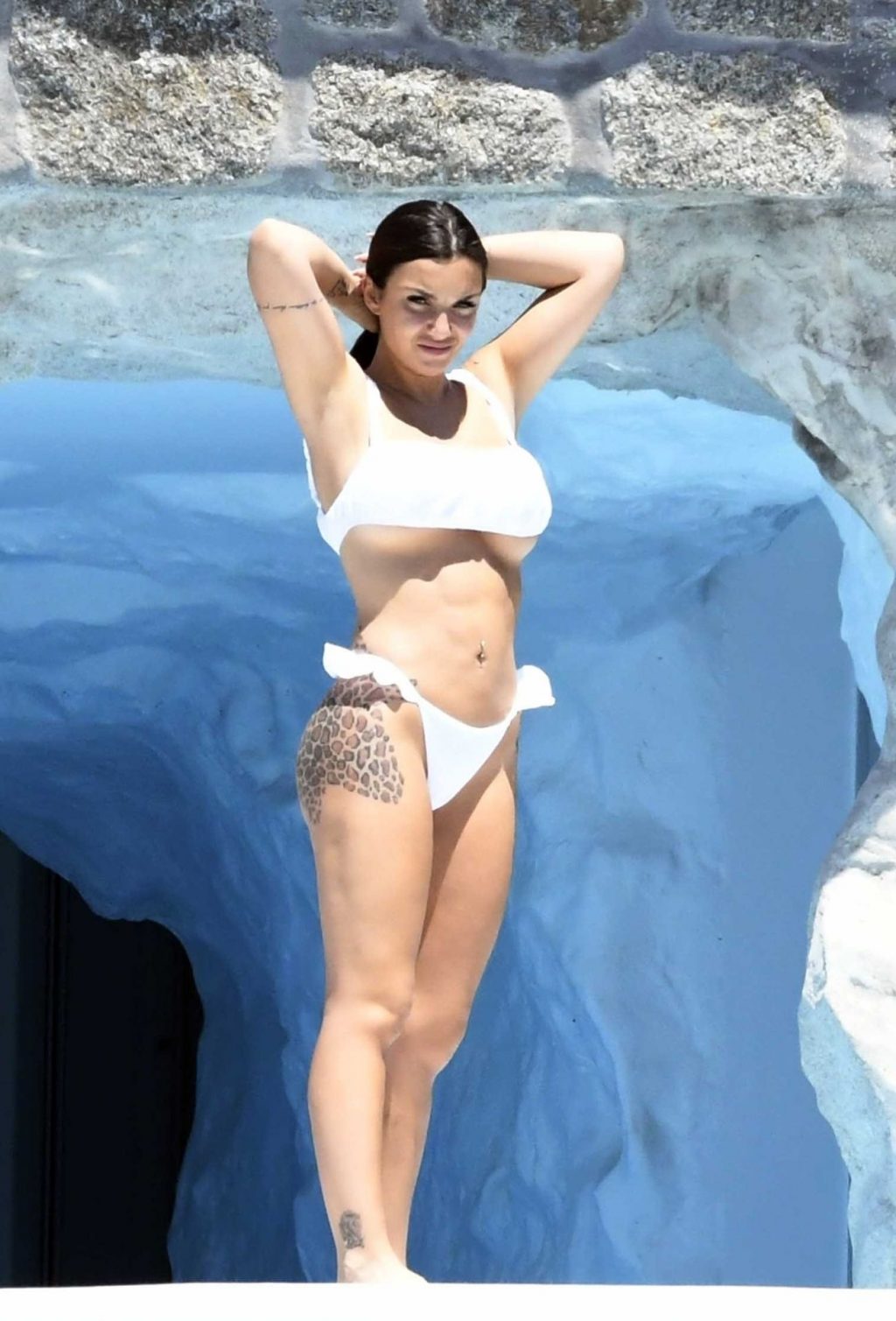 A esposa do DJ Afrojack, Elettra Lamborghini, e sua amiga Ludovica Pagani tiraram alguns dias de folga para férias femininas e fizeram sua própria sessão de fotos à beira da piscina sob o sol, 15/06/2021. Duas beldades concorrentes posando de biquíni sexy, esquentando o verão em Mykonos.