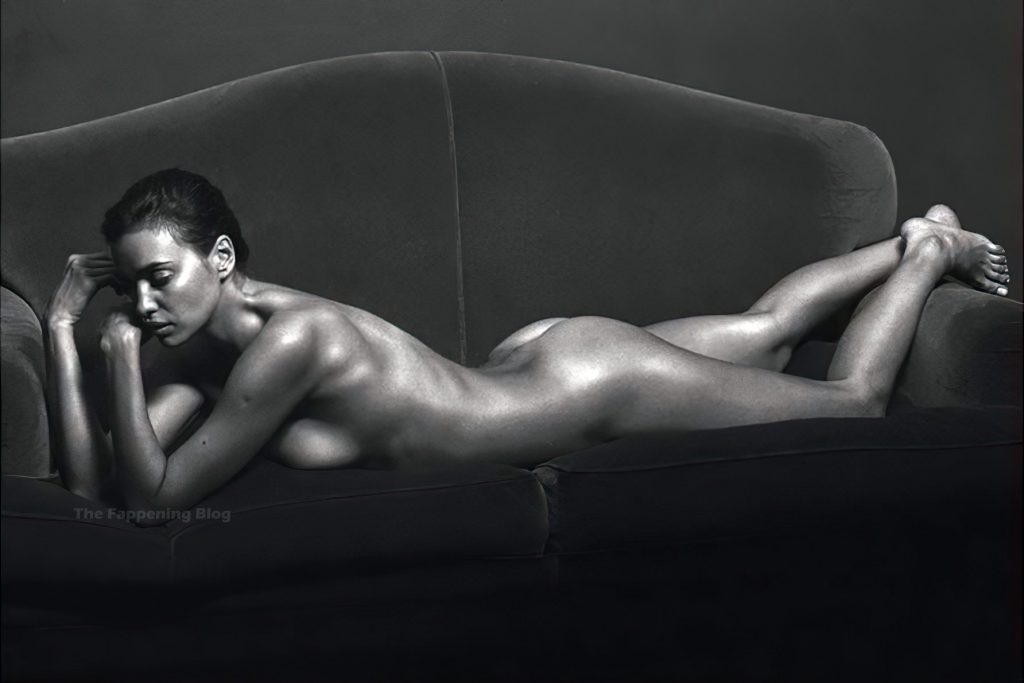 A modelo russa Irina Shayk posa completamente nua, deitada em um sofá e mostrando seu bumbum e sideboob em um ensaio fotográfico de Mario Sorrenti para seu livro (2020).