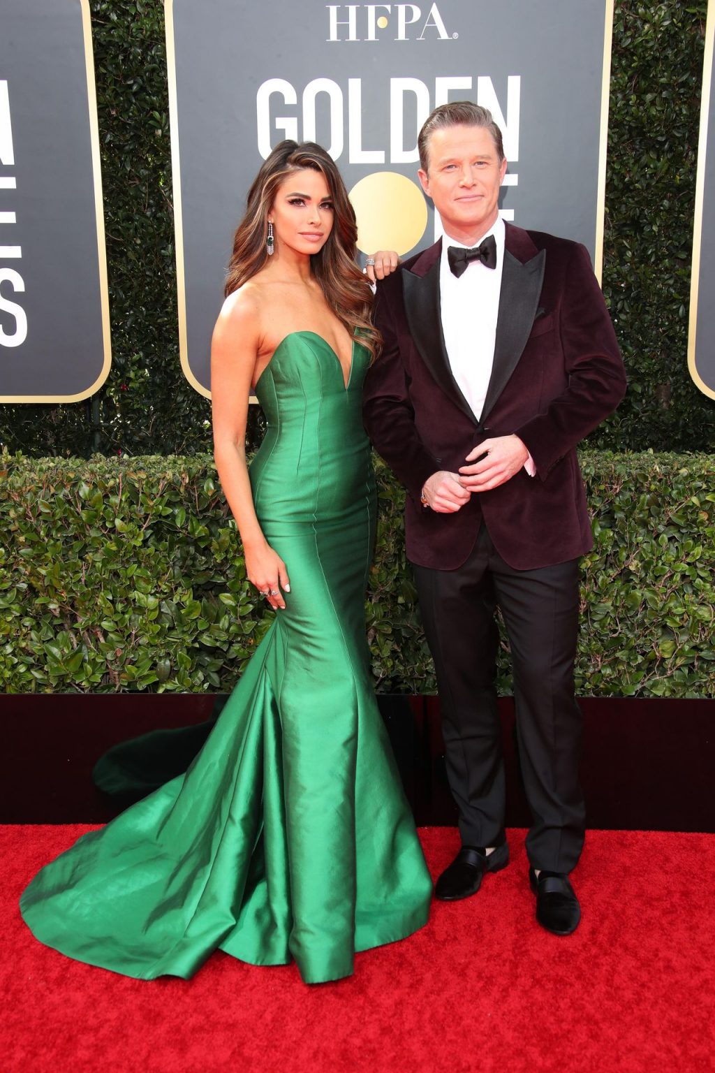 A repórter de notícias da TV americana Jennifer Lahmers e Billy Bush chegam ao tapete vermelho durante a 77ª Cerimônia Anual do Globo de Ouro no The Beverly Hilton Hotel, 01/05/2020.