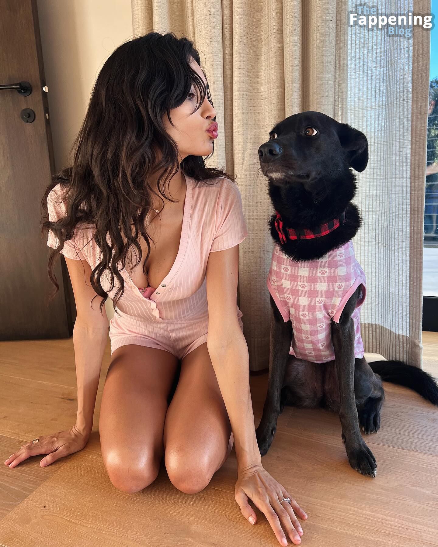 Mesmo assim, a própria Kelly estava super sexy descalça em um macacão justo feito em casa. Mas por que ela está beijando o cachorro? Meio estranho, embora seus fãs tenham adorado essas fotos!