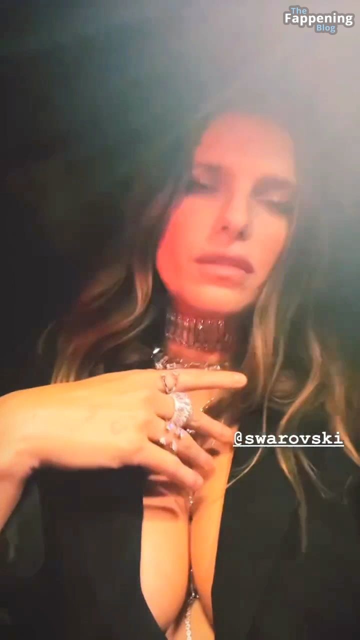 A atriz Lake Bell exibe seu decote no evento Swarovski nos vídeos do Instagram abaixo.