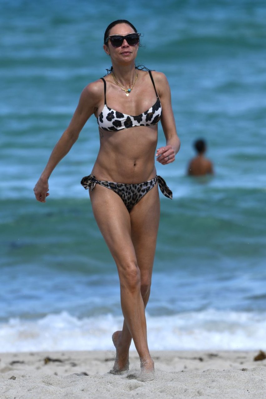 Lilly Becker exibe sua silhueta em um biquíni descombinado enquanto se diverte na Miami Beach, 16/04/2019. A ex-Sra. Boris Becker foi vista se divertindo com amigos e seu filho Amadeus nesta tarde na Miami Beach usando uma calcinha de biquíni com estampa de oncinha e um top de biquíni descombinado.