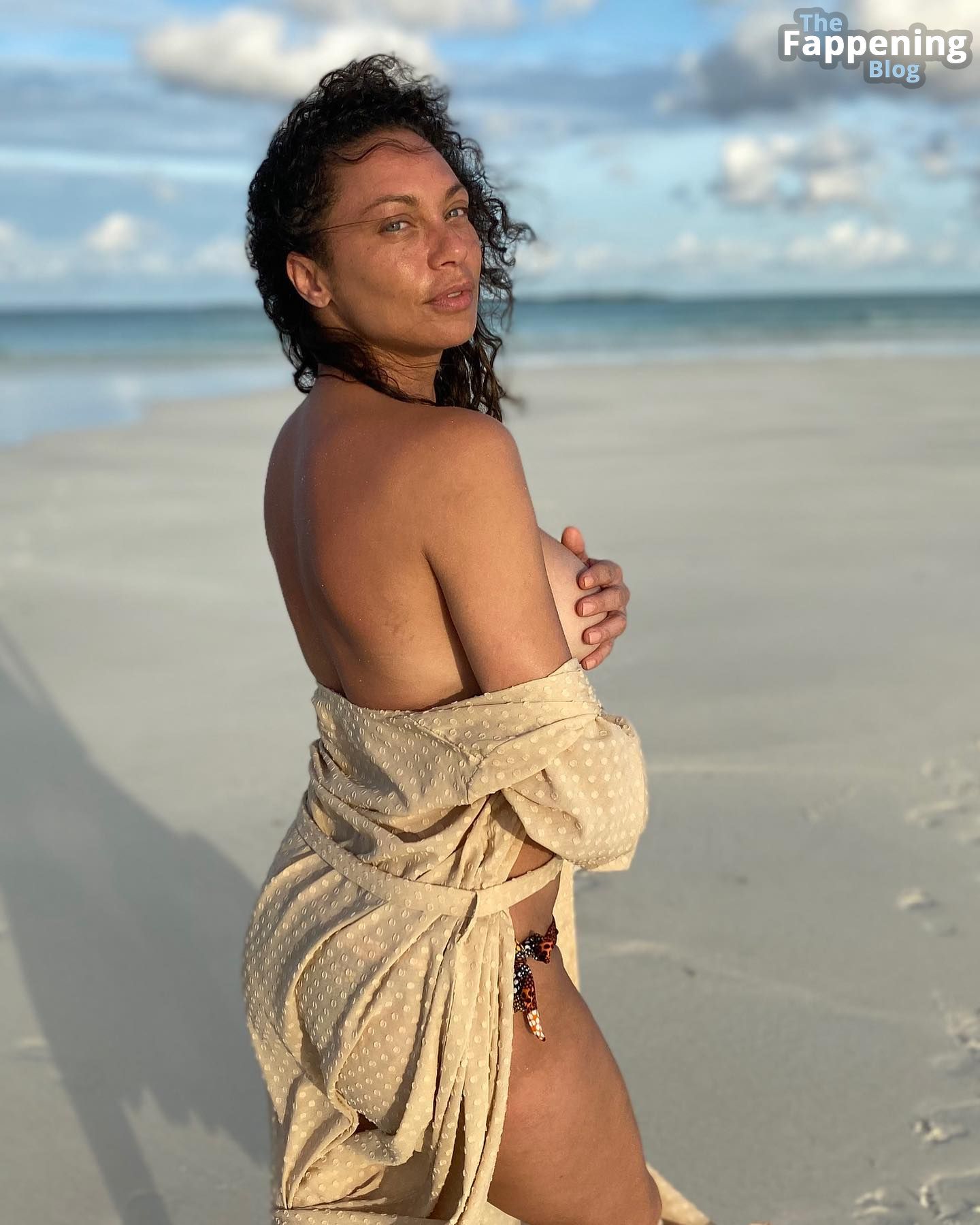 Lilly Becker exibe seus seios nus enquanto aproveita suas férias na praia em Ibiza (2017).