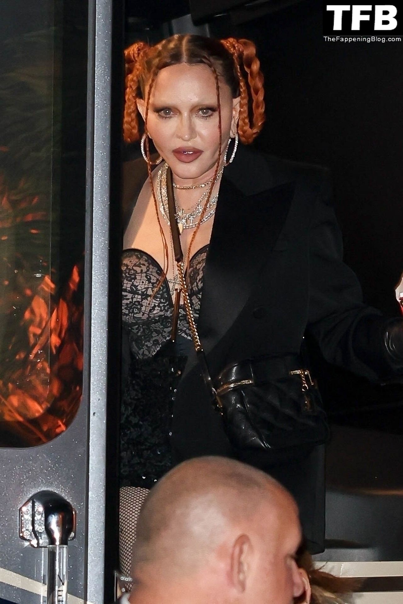 A ícone pop Madonna impressiona ao sair com um conjunto ousado de renda preta e tranças laranja arrojadas para uma noite de festa em South Beach, 01/12/2022.