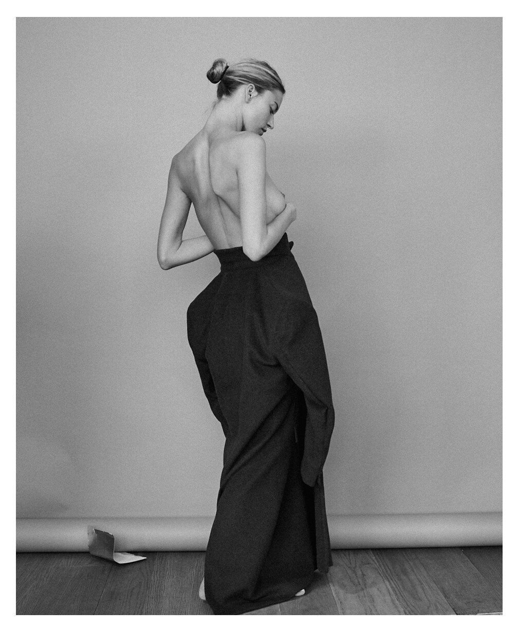 Martha Hunt compartilhou algumas fotos de um ensaio fotográfico por Jason Mcdonald (2020). A modelo cobriu seus seios nus posando topless de jeans.