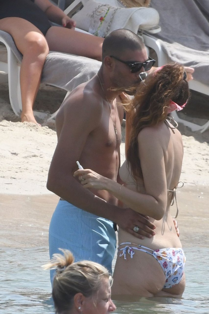 A cantora de Cannes Nina Zilli e o namorado artista Omar Hassan foram vistos de férias na praia em Provence-Alpes-Côte d’Azur, 15/08/2019.