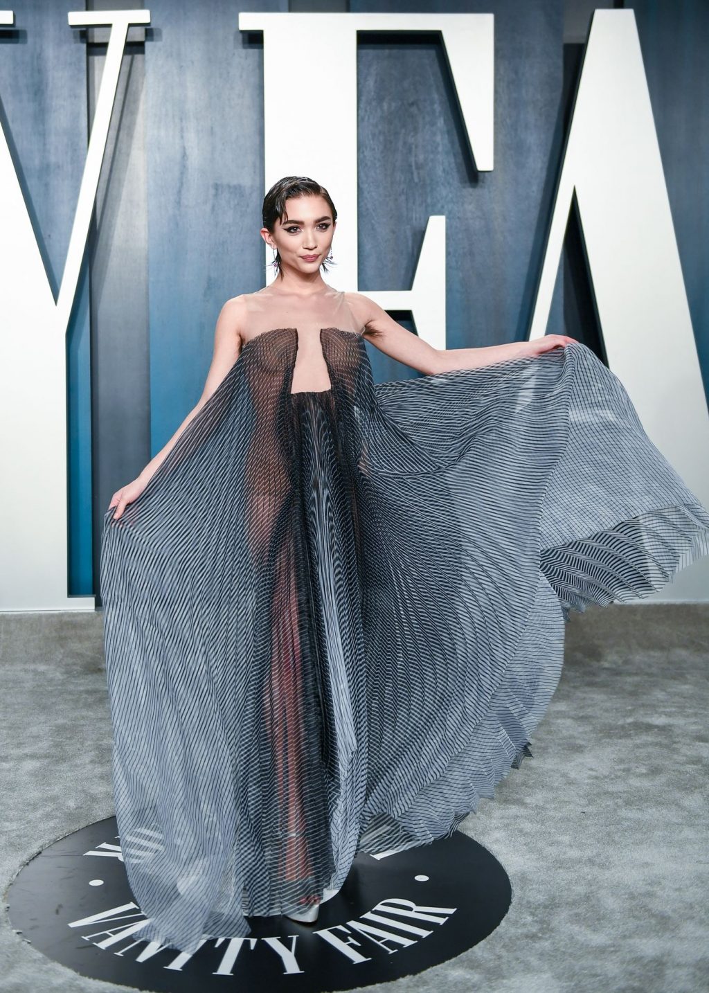 American actress Rowan Blanchard (18) was photographed on the red carpet in a see-through dress at the Vanity Fair Oscar Party in Los Angeles, 02/09/2020.