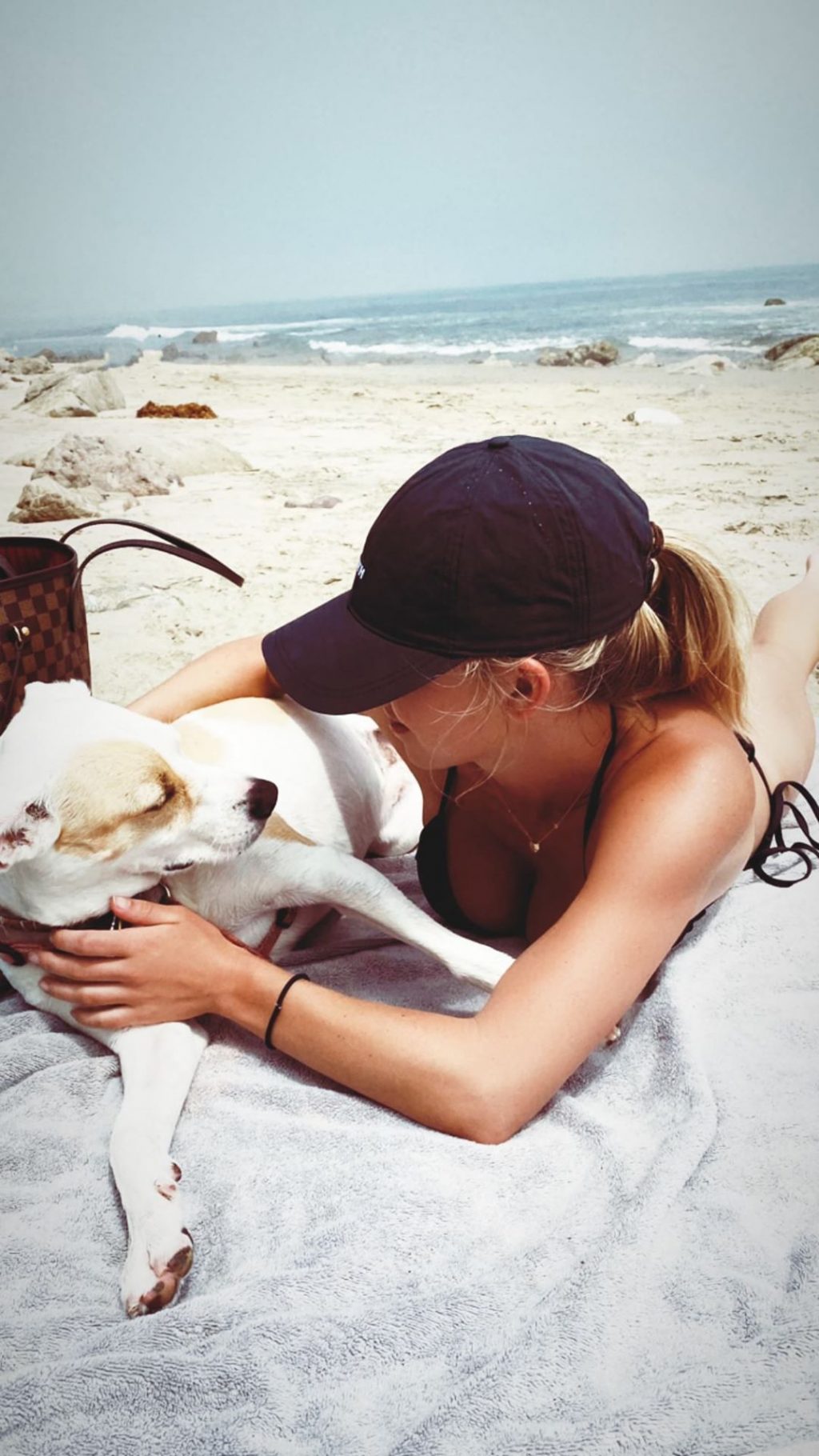 Atriz Sydney Sweeney exibe seu corpo sexy, bumbum grande e seios enquanto aproveita um dia com seu cachorro na praia – Instagram, 26/04/2020.