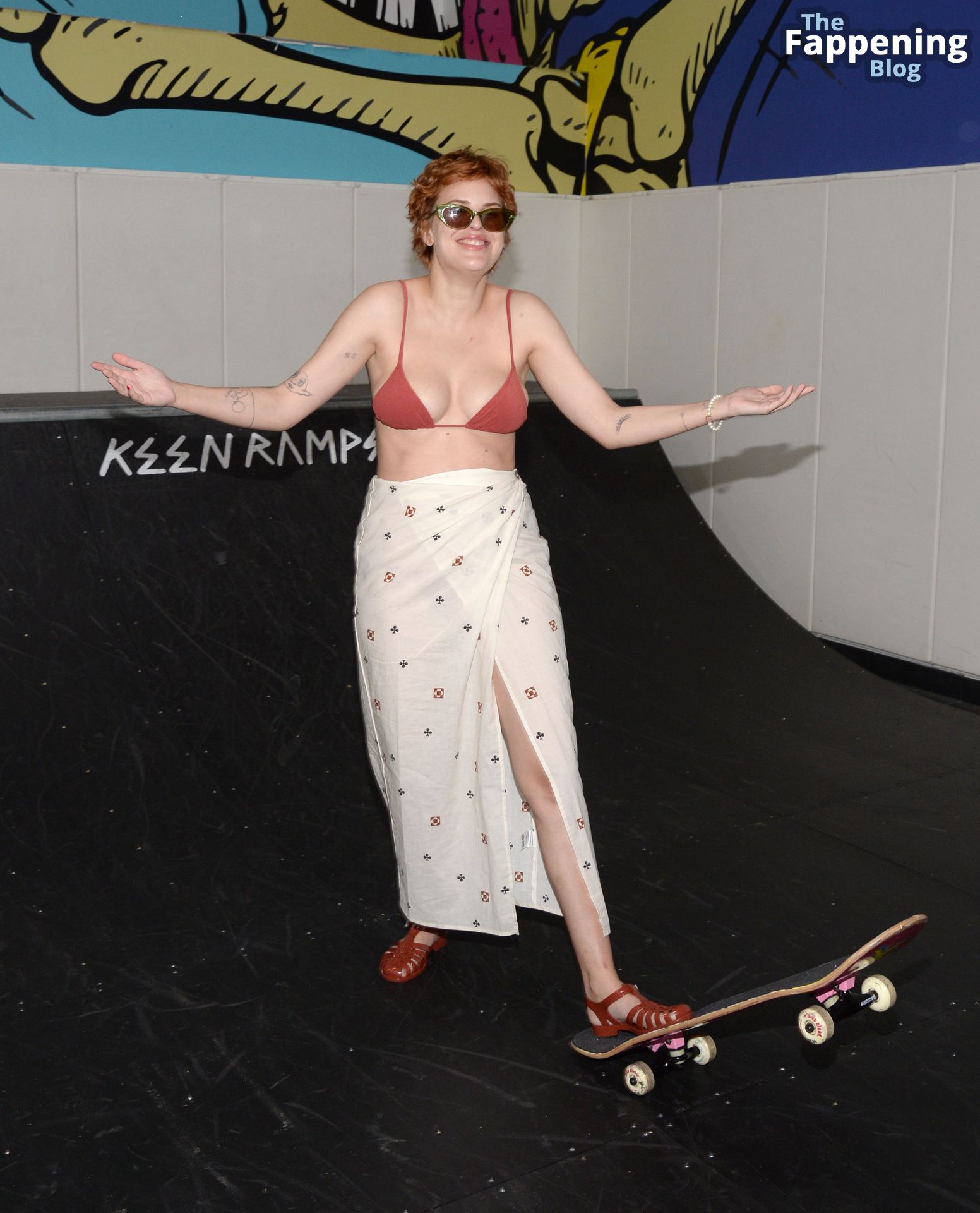 Tallulah Willis é fotografada no evento de patinação Bones Love Milk Shredquarters durante o US Open of Surfing 2023, 04/08/2023. Rumer e Tallulah Willis participam da festa na Califórnia.