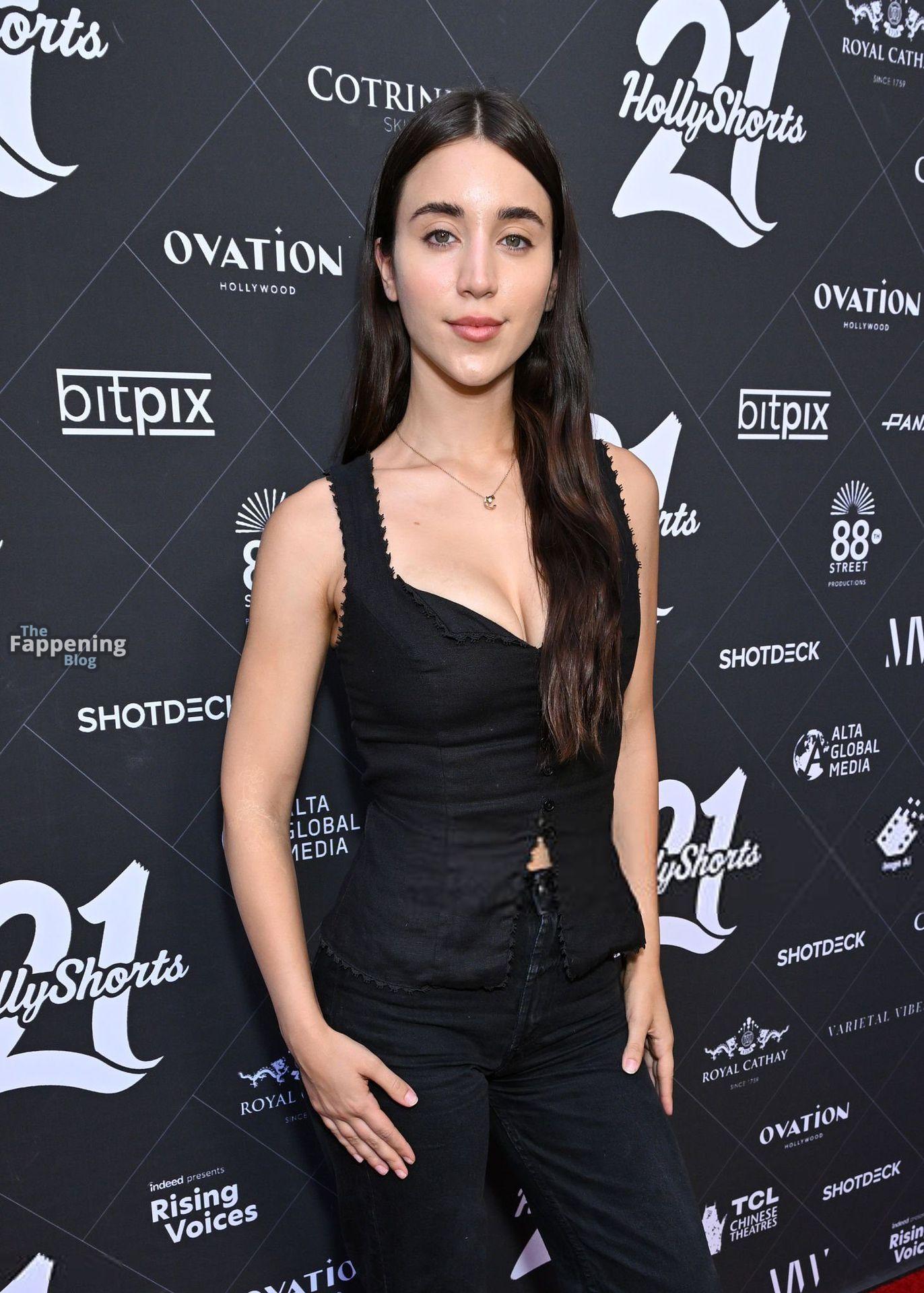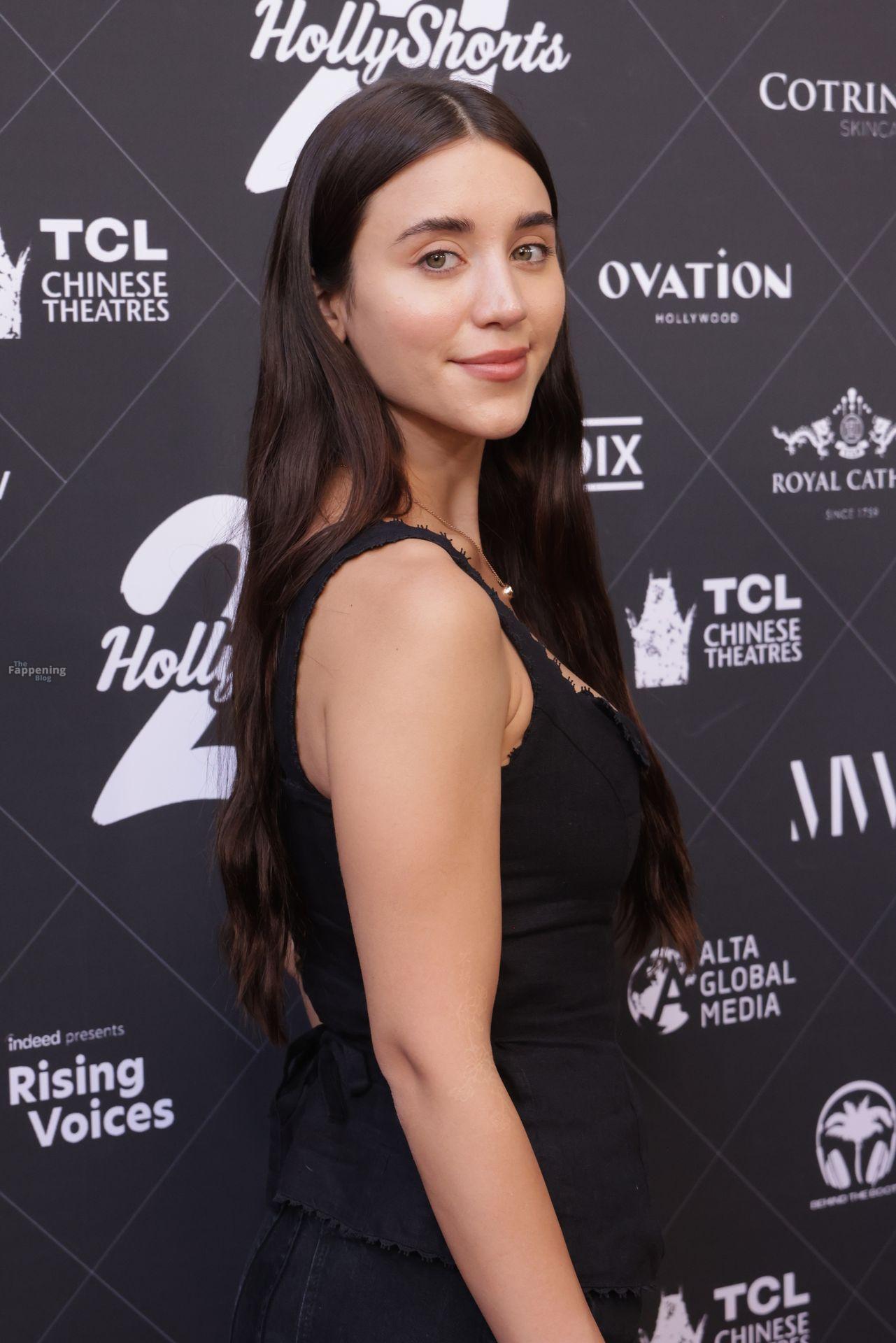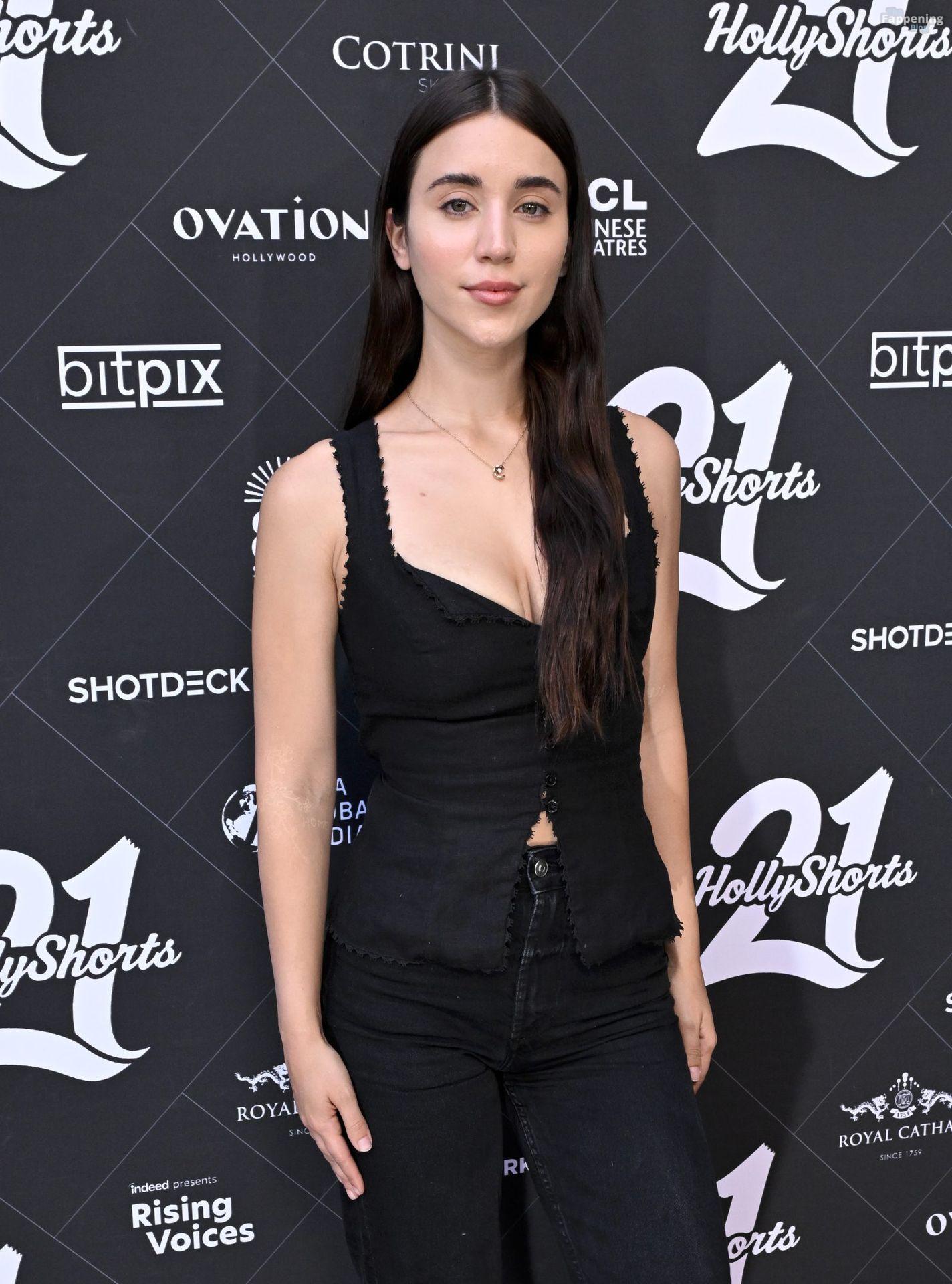 Caylee Cowan estava arrasando com uma blusa preta justa que mostrava sua figura sexy e um decote impressionante. Confira seu look completo no tapete vermelho da Noite de Abertura do 21º Festival Anual de Cinema HollyShorts em Los Angeles, Califórnia.
