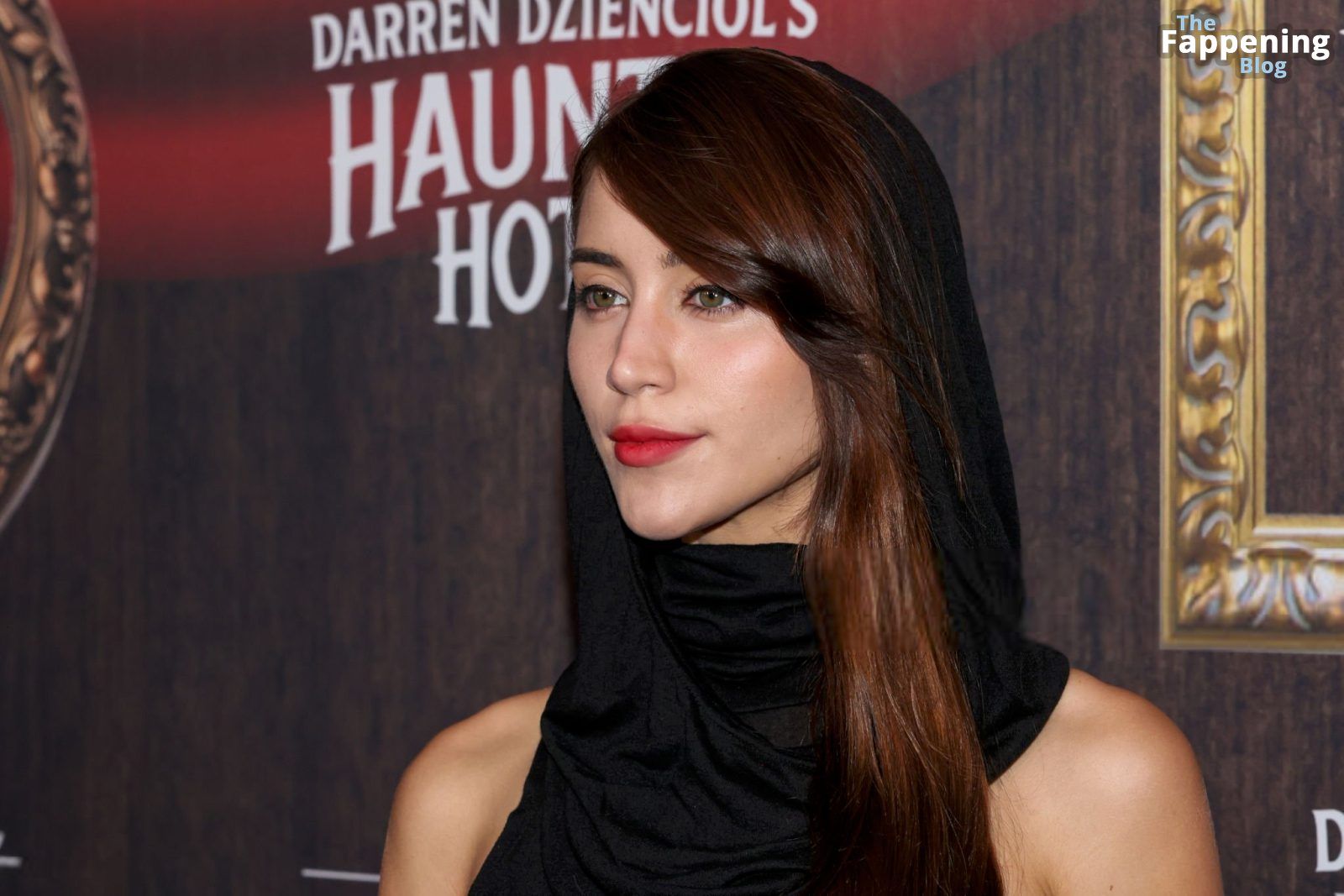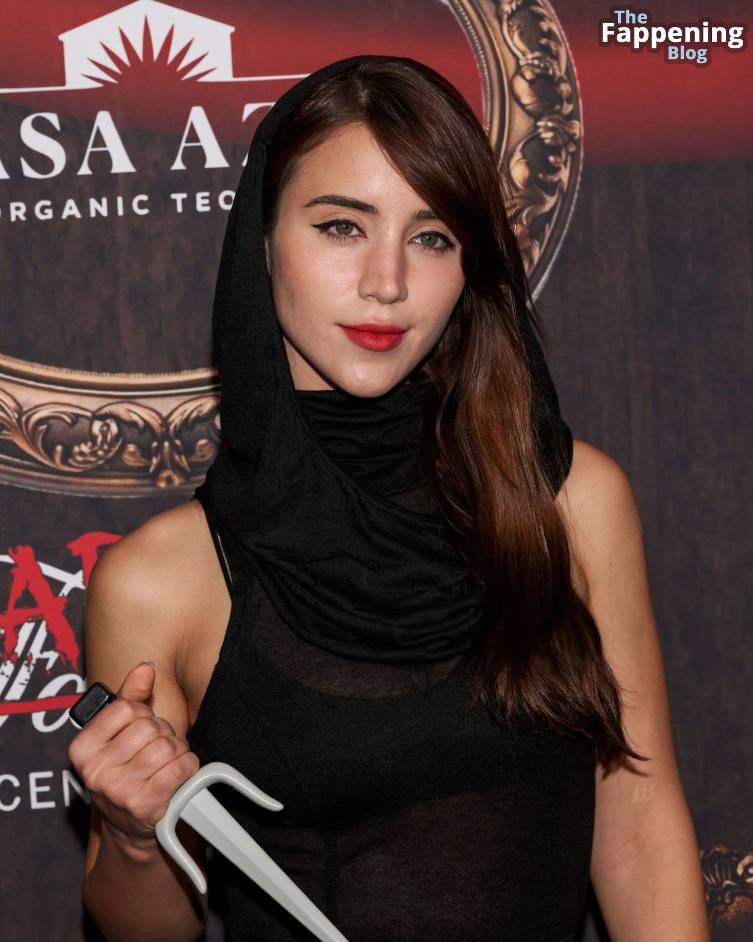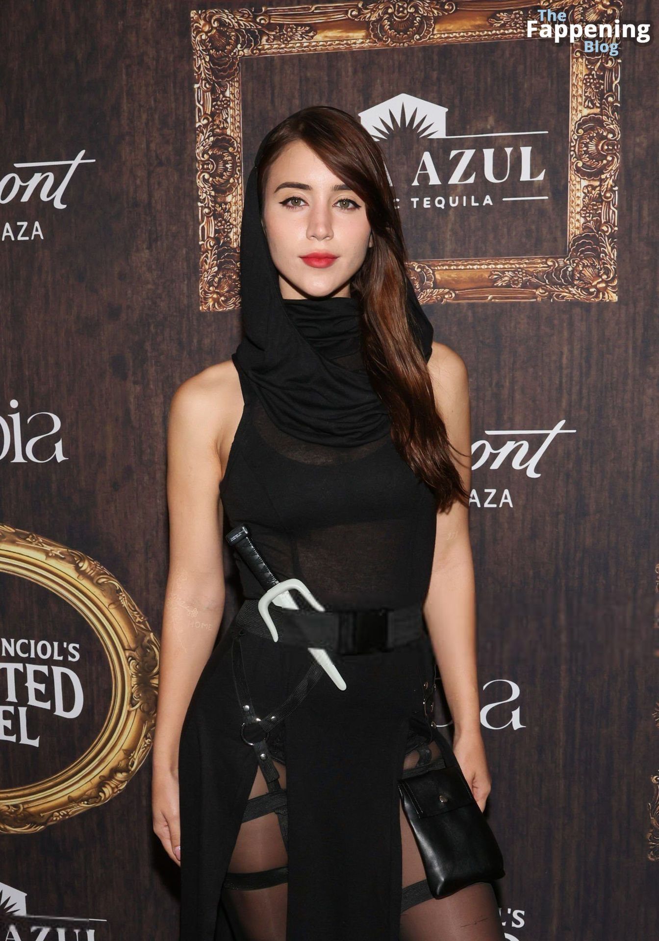 Caylee Cowan é vista usando um vestido transparente sexy com fendas até a coxa, exibindo suas pernas na Festa de Halloween Haunted Hotel em LA.