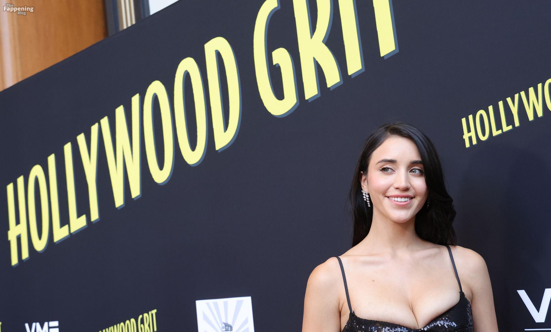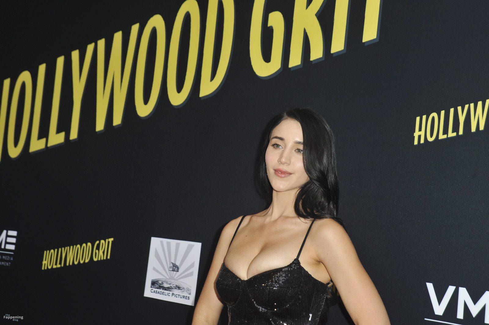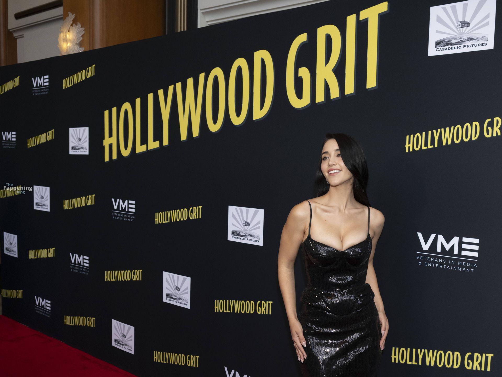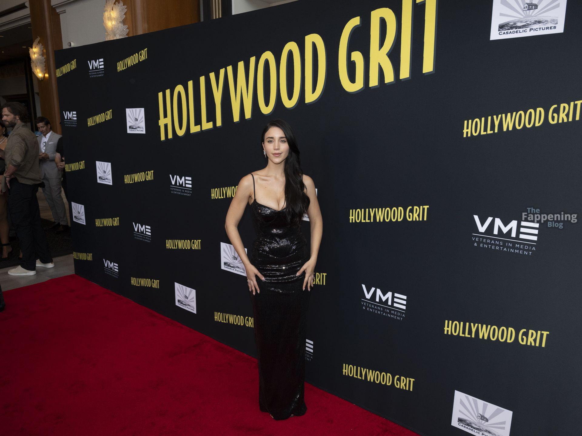 Atriz e modelo Caylee Cowan comparece à premiere de “Hollywood Grit”, arrasando com um vestido preto de paetês que destacava seu decote.